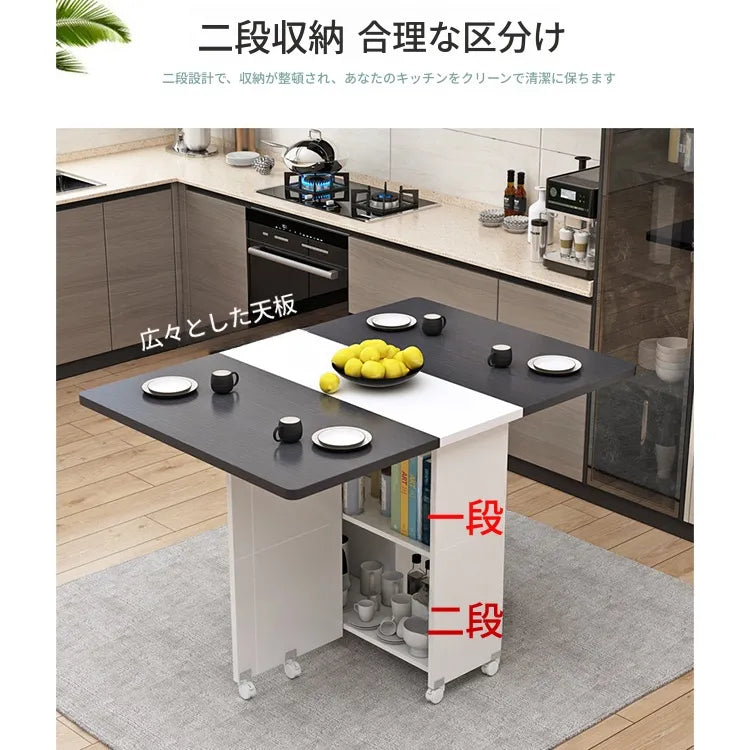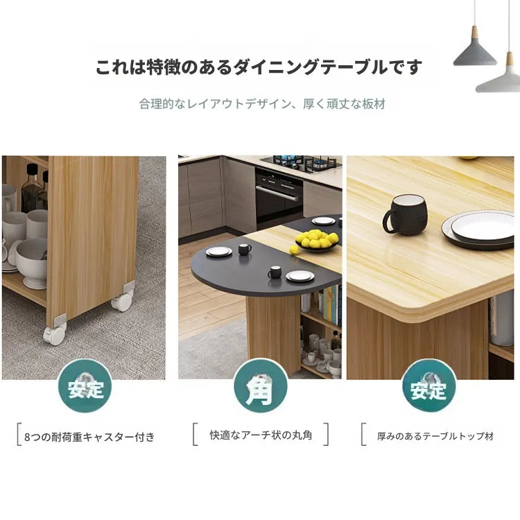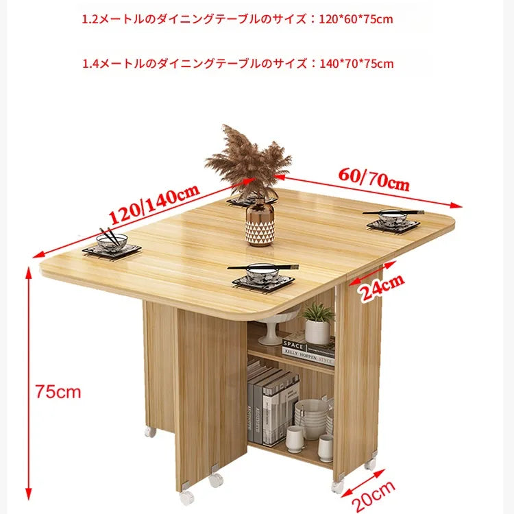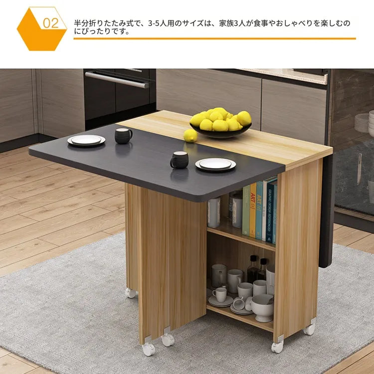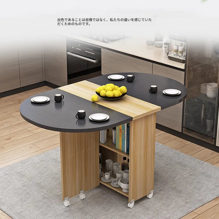 簡易ラウンド折りたたみダイニングテーブルキャスター付き可動長方形シンプルhzyl-3476