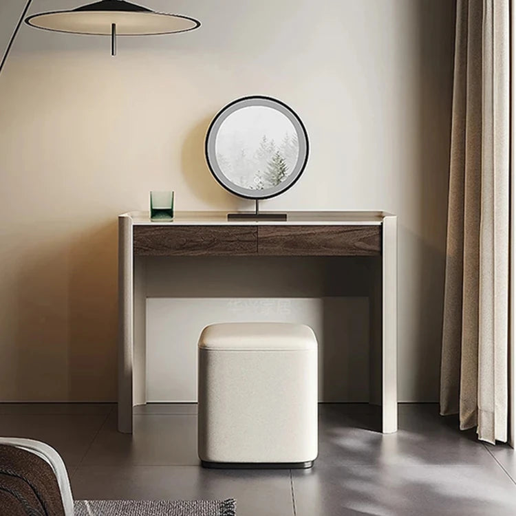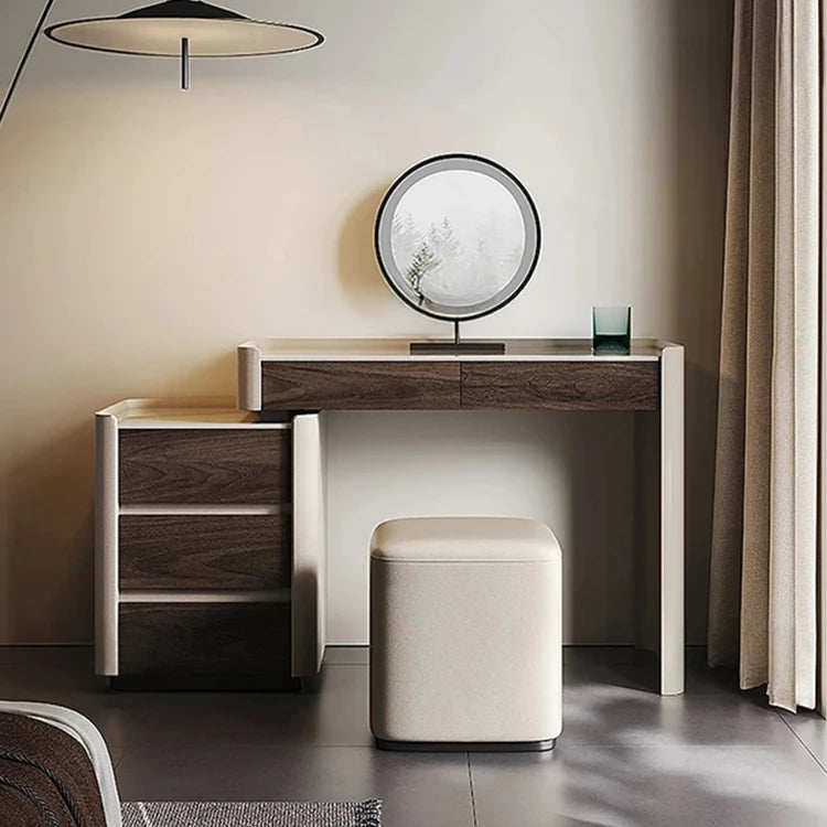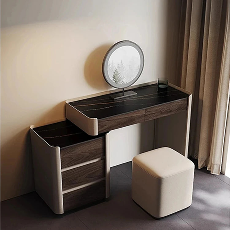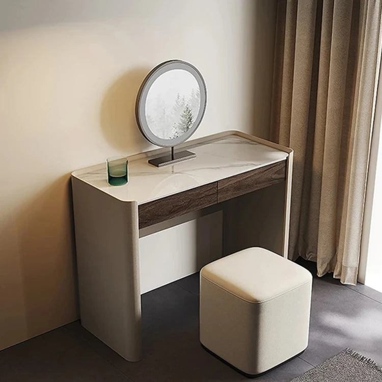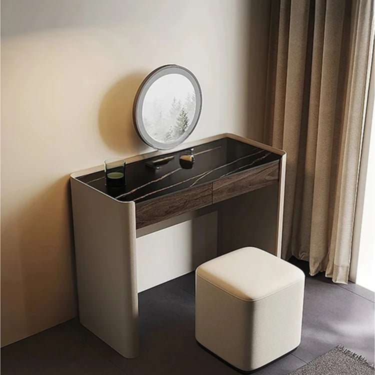 洗練されたデザインの化粧台 - 多層板・セラミック・合成皮革製のモダンスタイル 収納付きコンソールテーブル fhx-4575