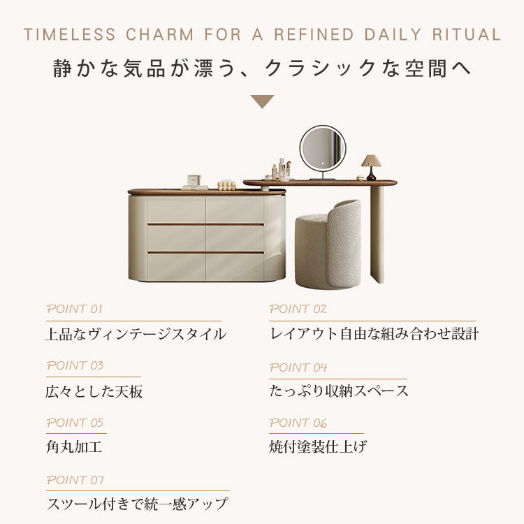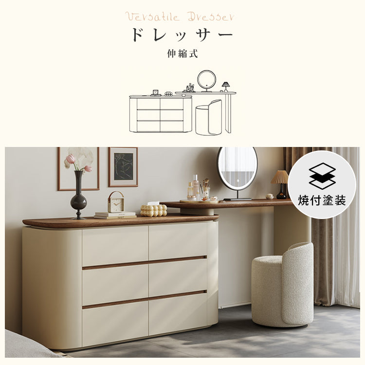 ウォールナット無垢材 ドレッサー&チェスト一体型 寝室用 シンプルモダンデザイン hjl-5671