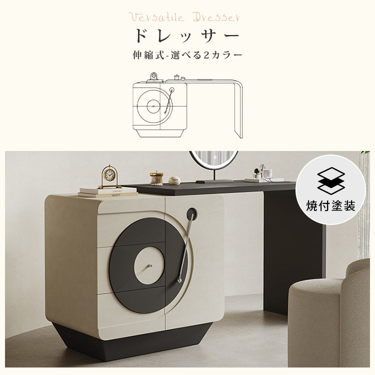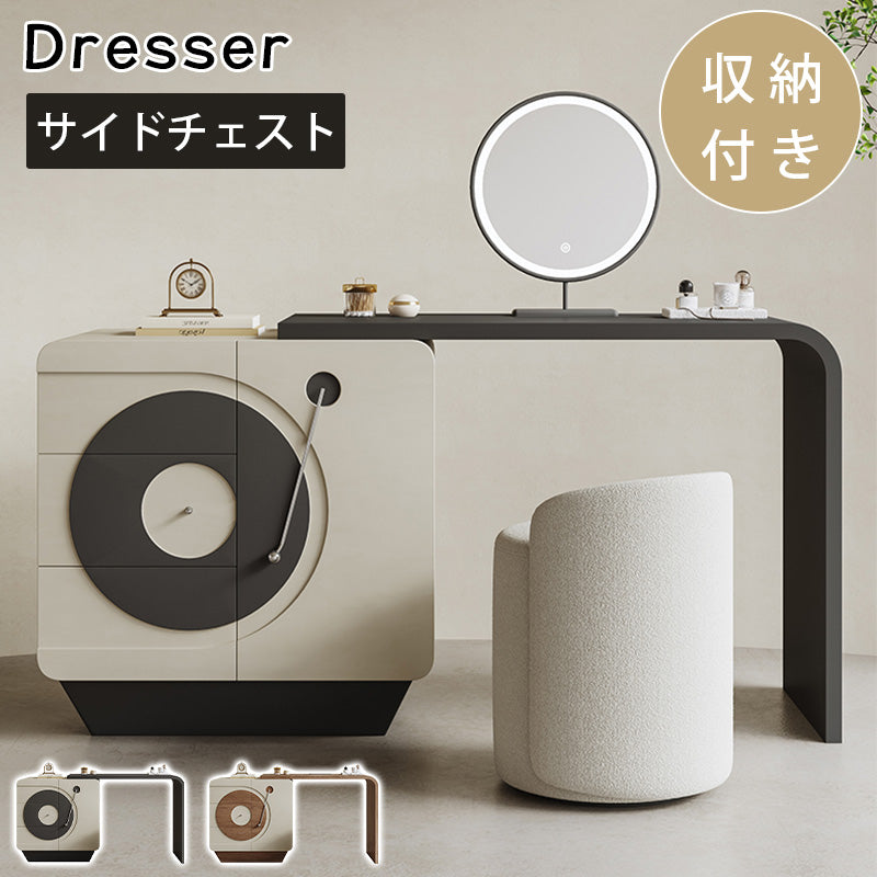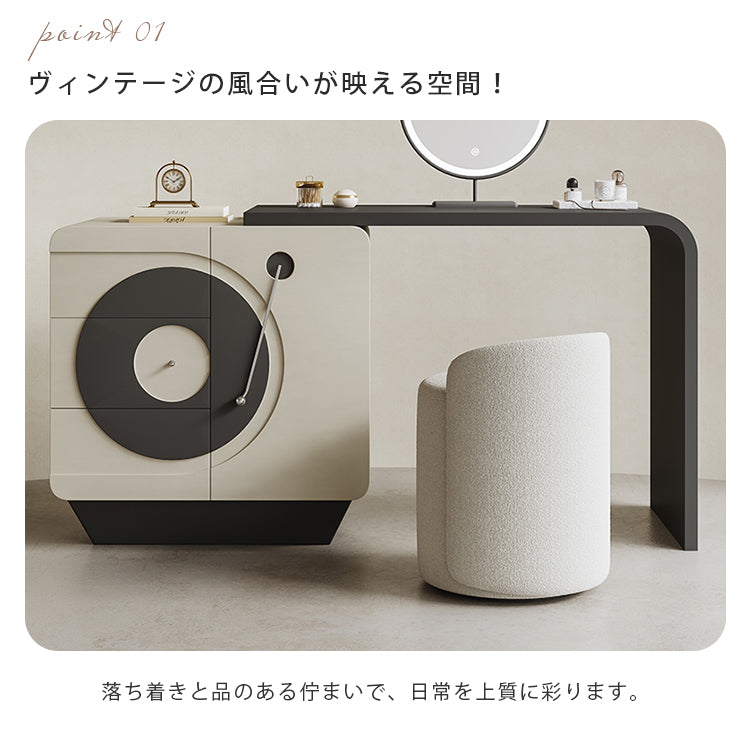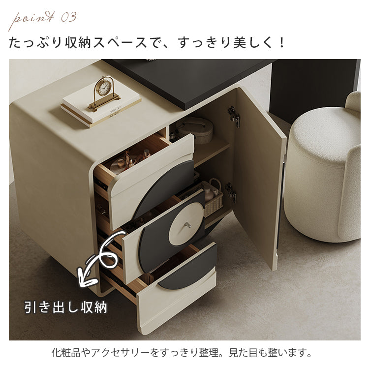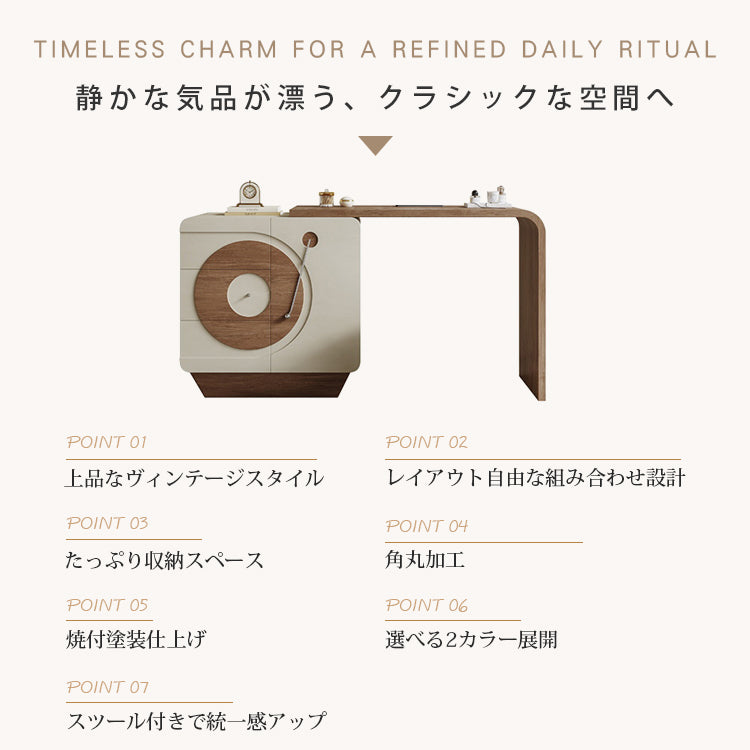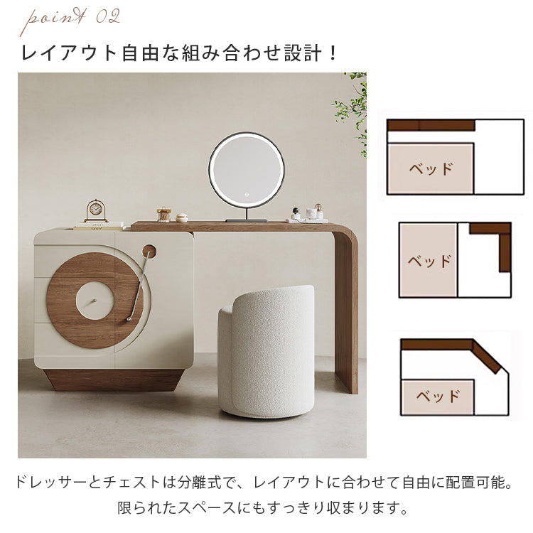 フレンチヴィンテージ無垢材ドレッサー一体型小型収納チェスト化粧台ミニマルデザイン hjl-5676
