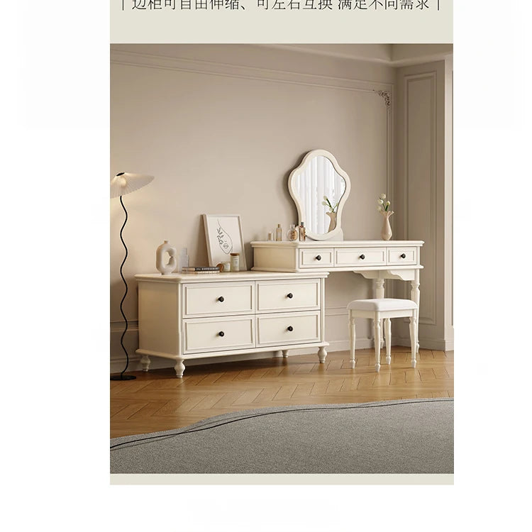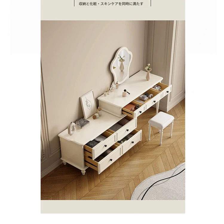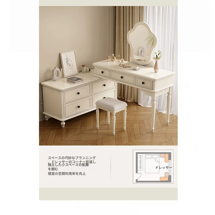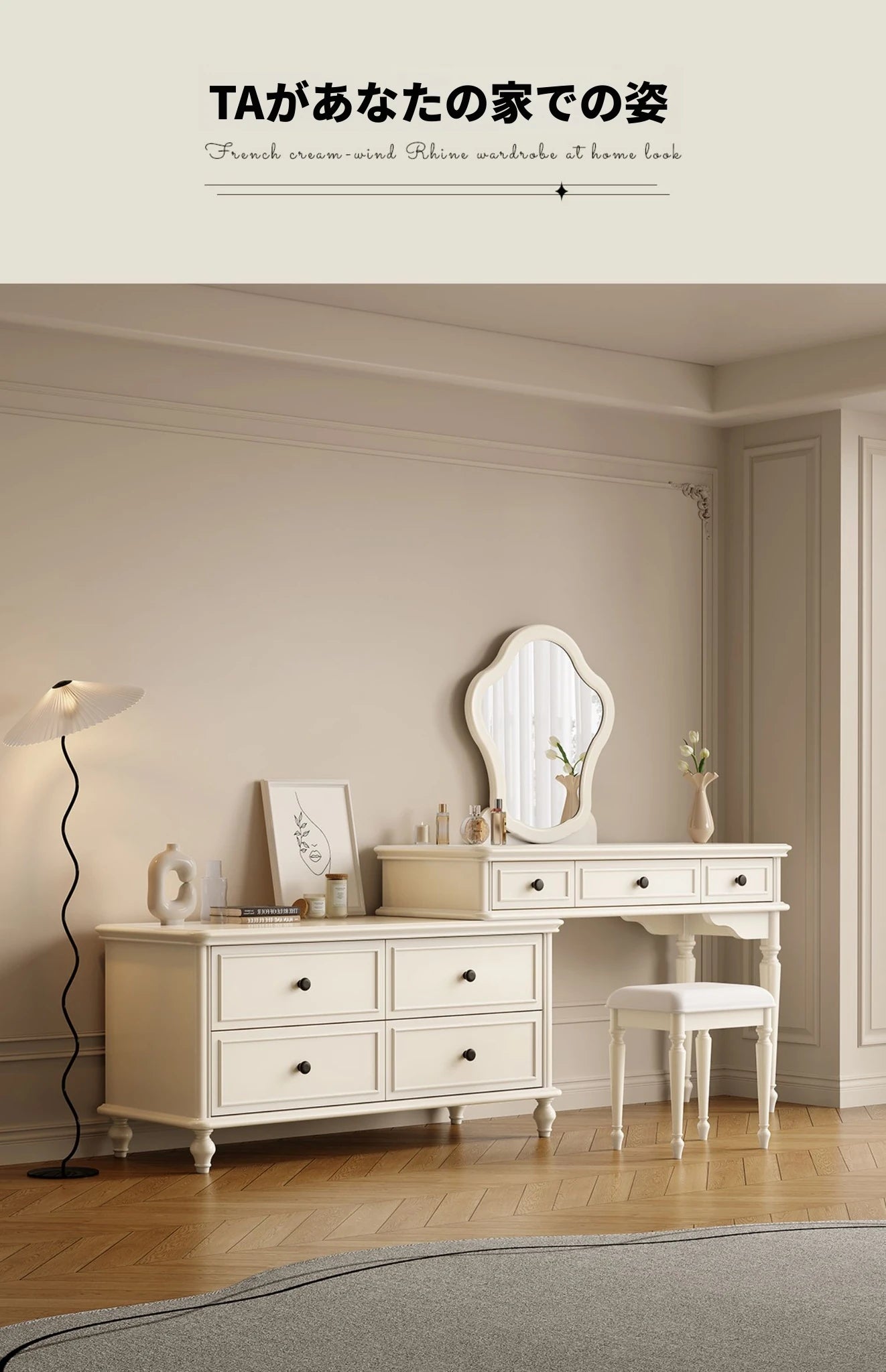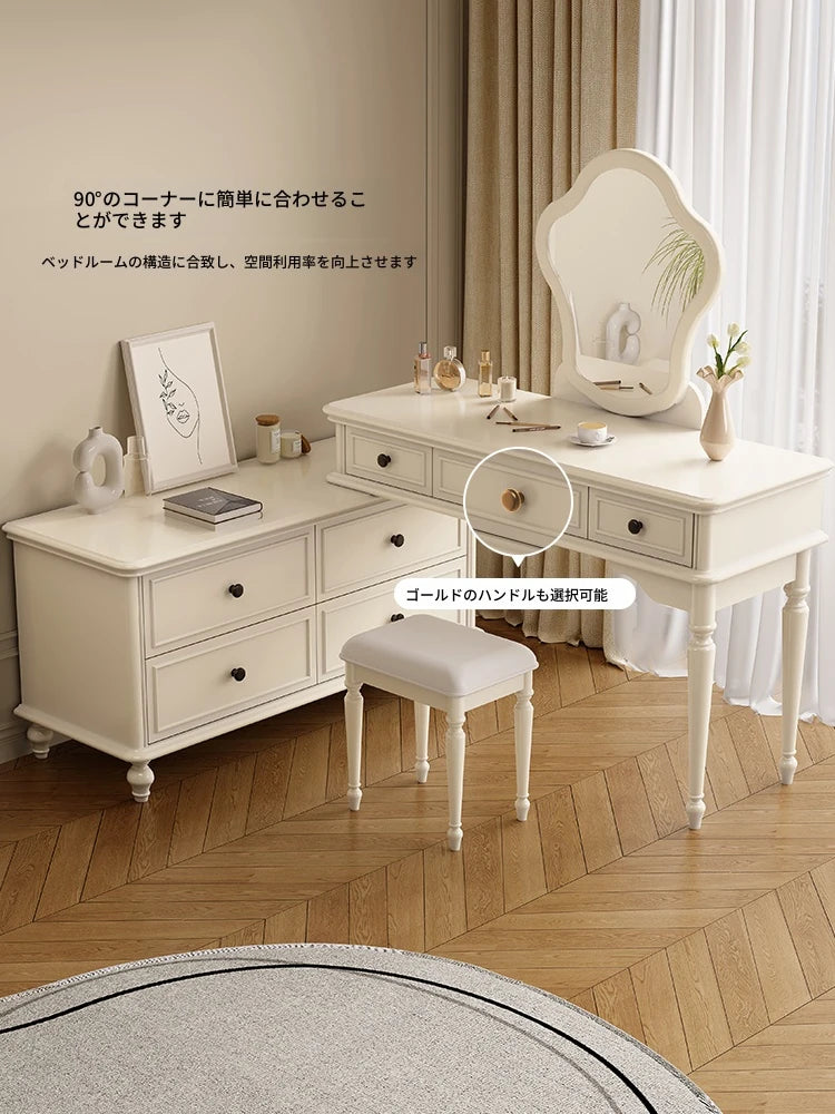 チェリー材とパインを使用した洗練された化粧台セット | シンプルでおしゃれなデザイン, 鏡付き, 収納力抜群 hl-4886