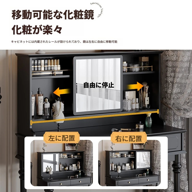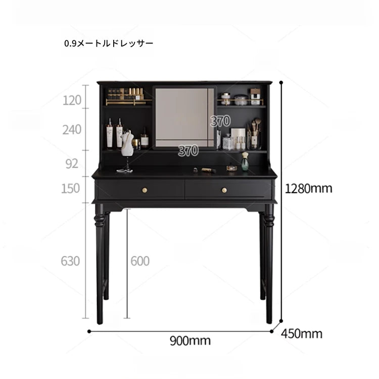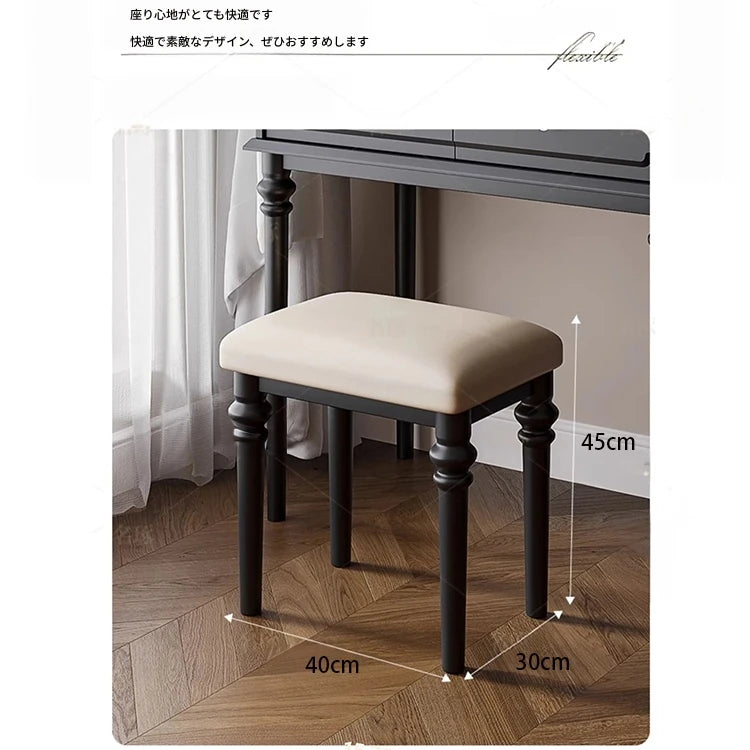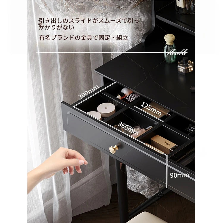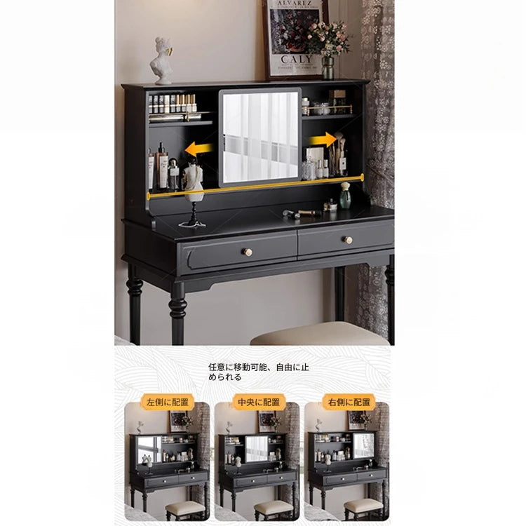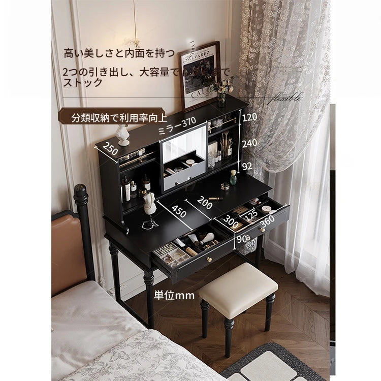 高品質な素材を使用したこの化粧台は、耐久性があり、長くご愛用いただけます。あなたの個性を引き立てる理想的なアイテムです。