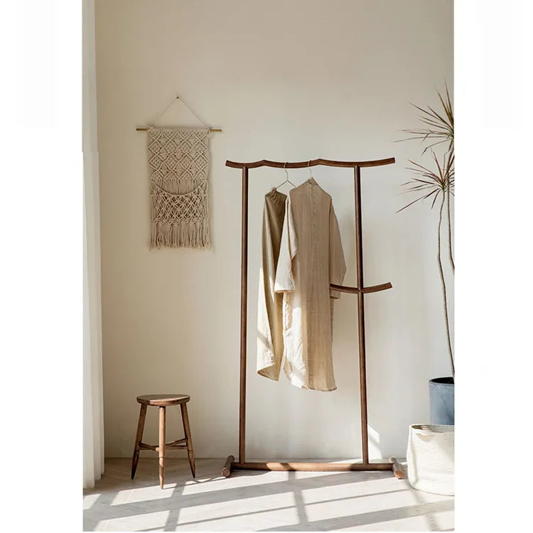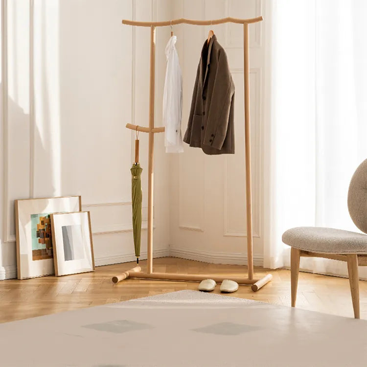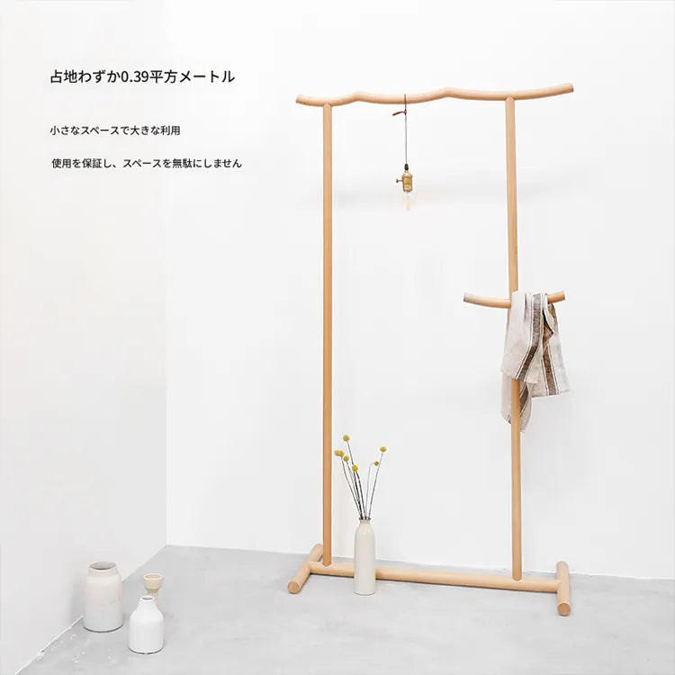 実木製フロアハンガーラック寝室リビング用衣類収納スタンド fzy-3329