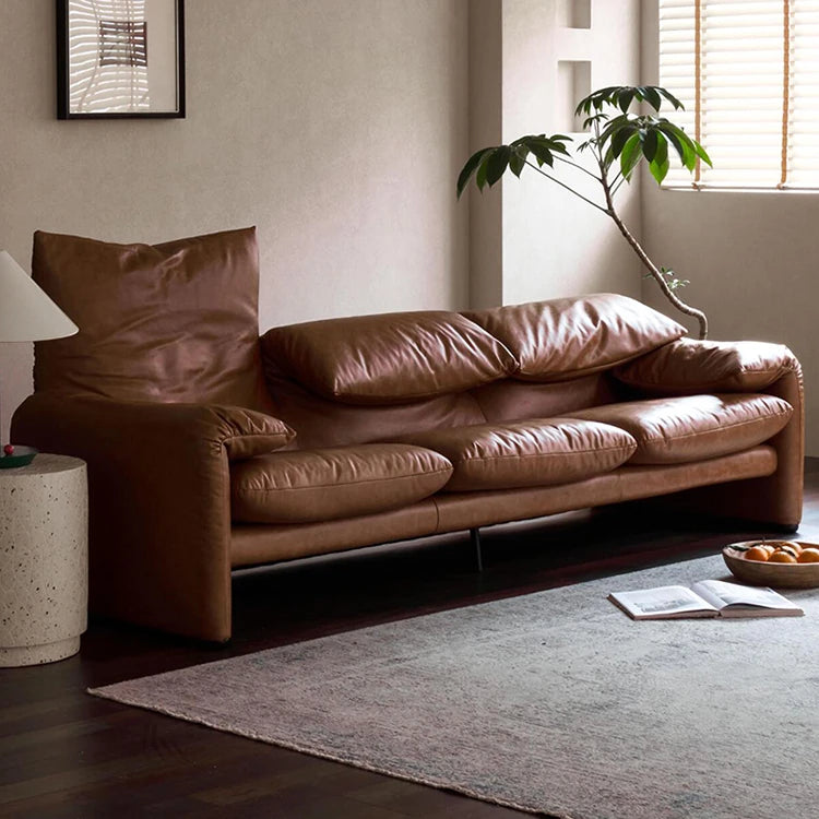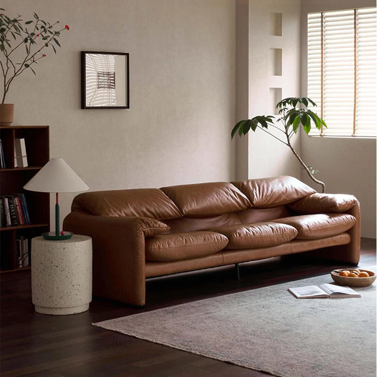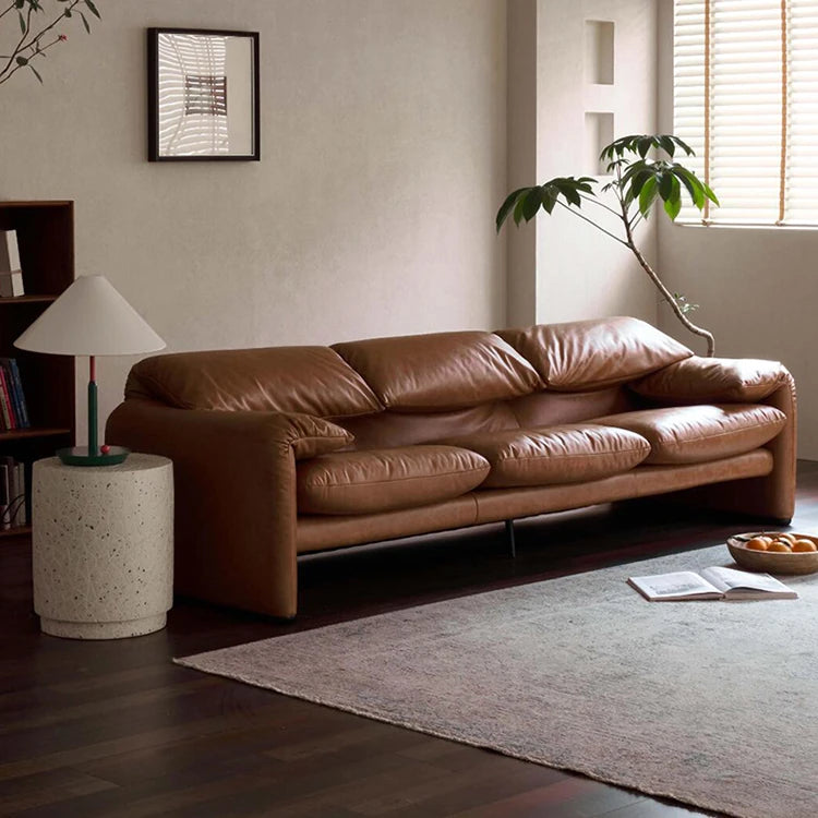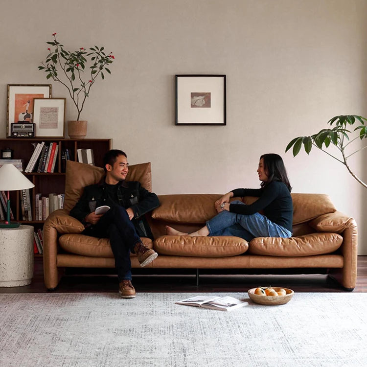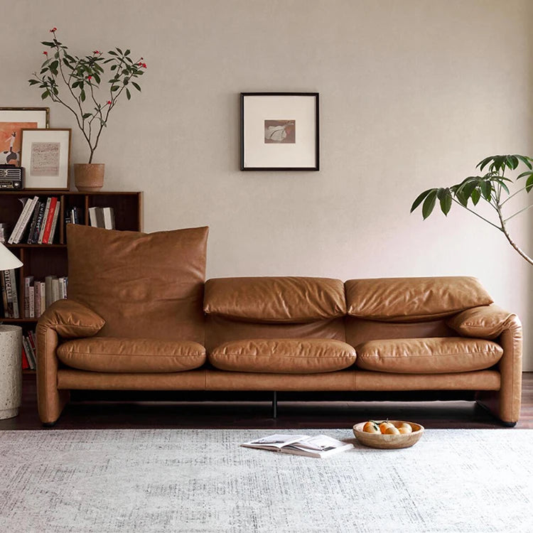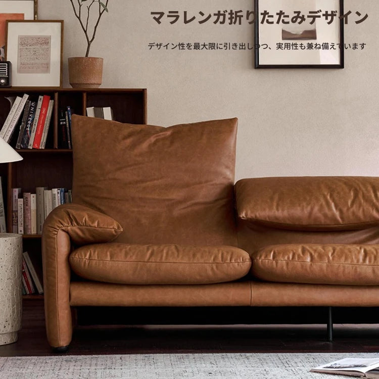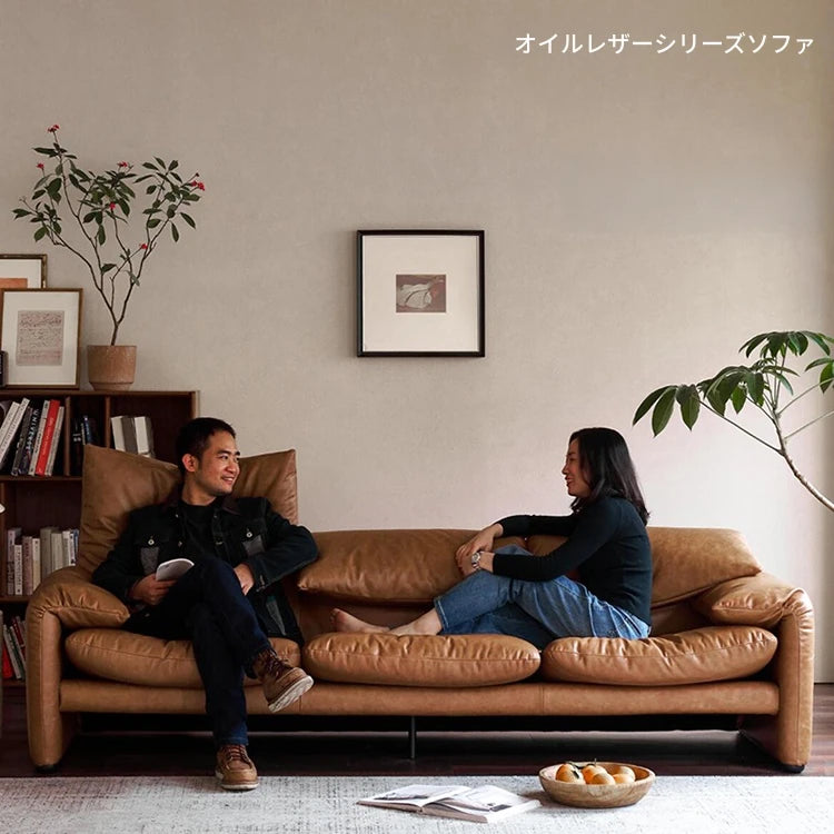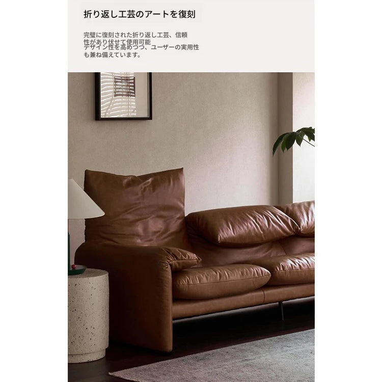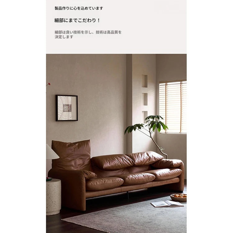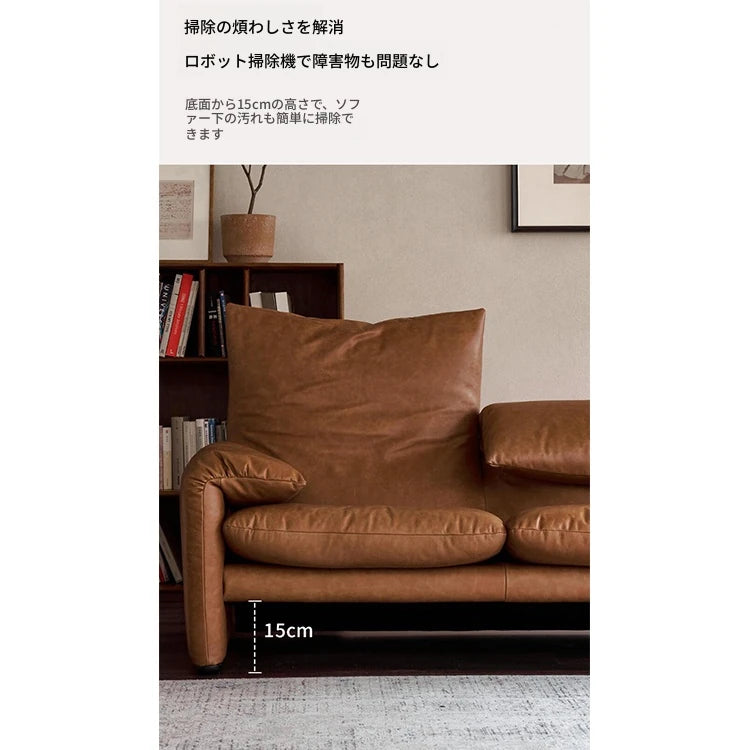 ソファーのクッション部分にはダウンを使用し、ふんわりした感触が魅力。リビングルームや書斎でのくつろぎタイムを特別なものにします。