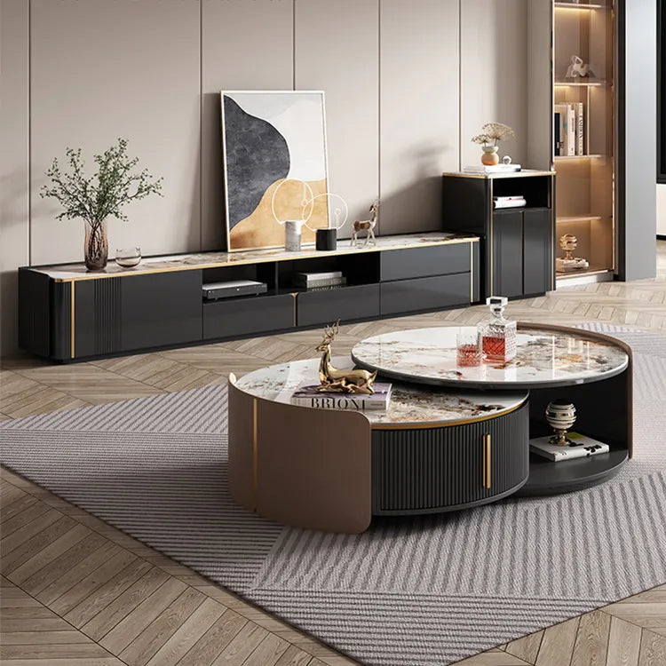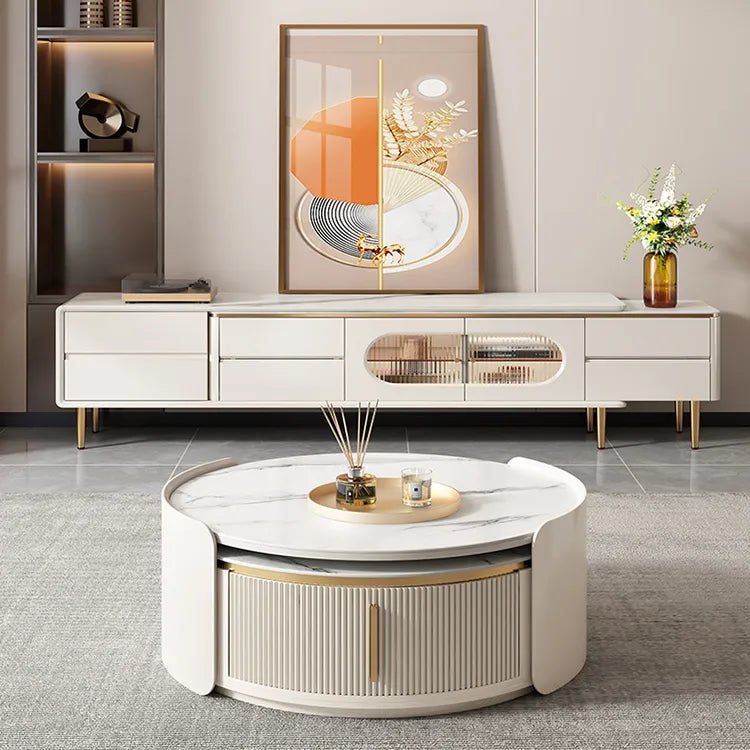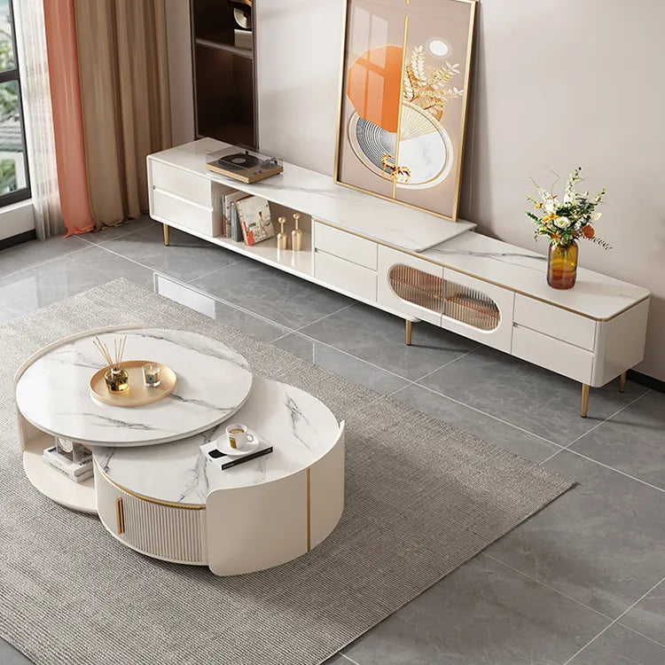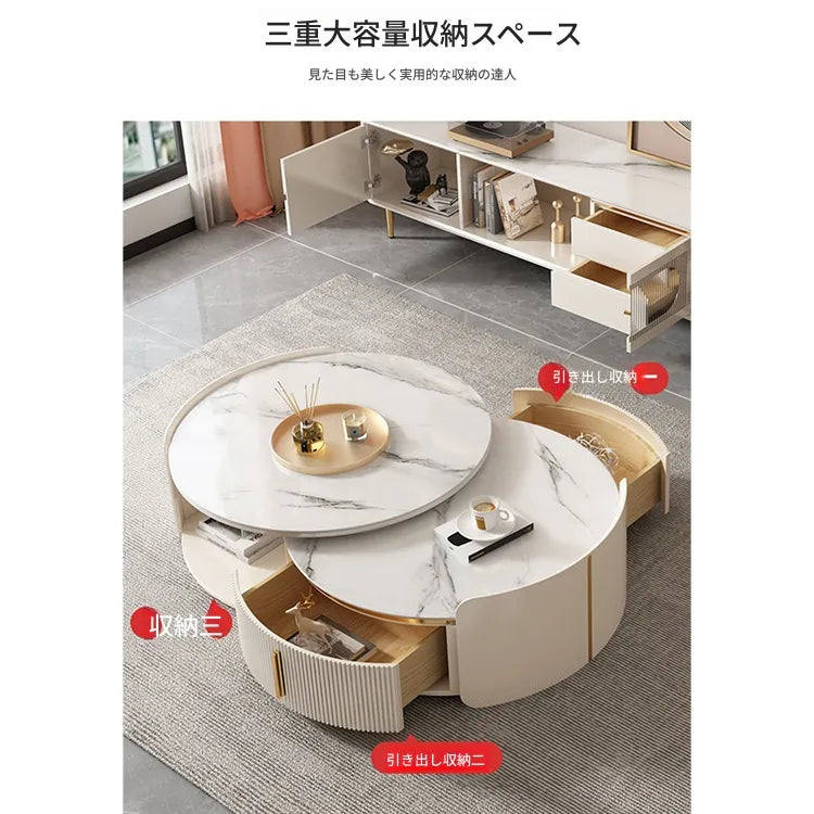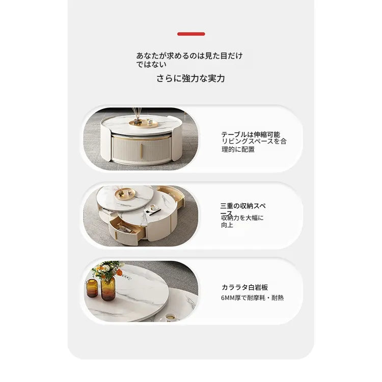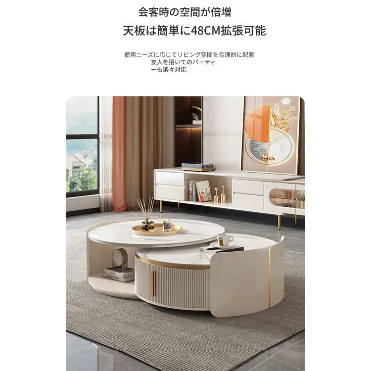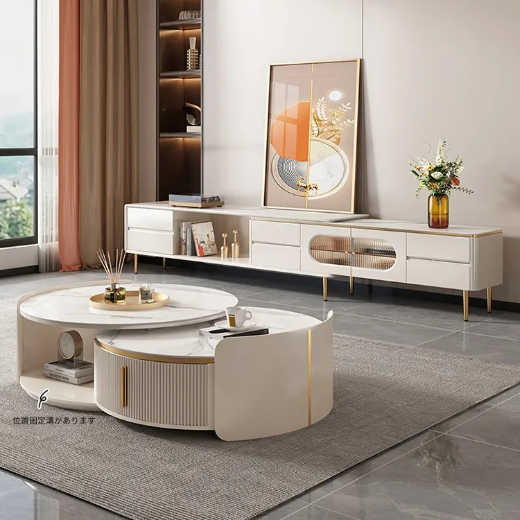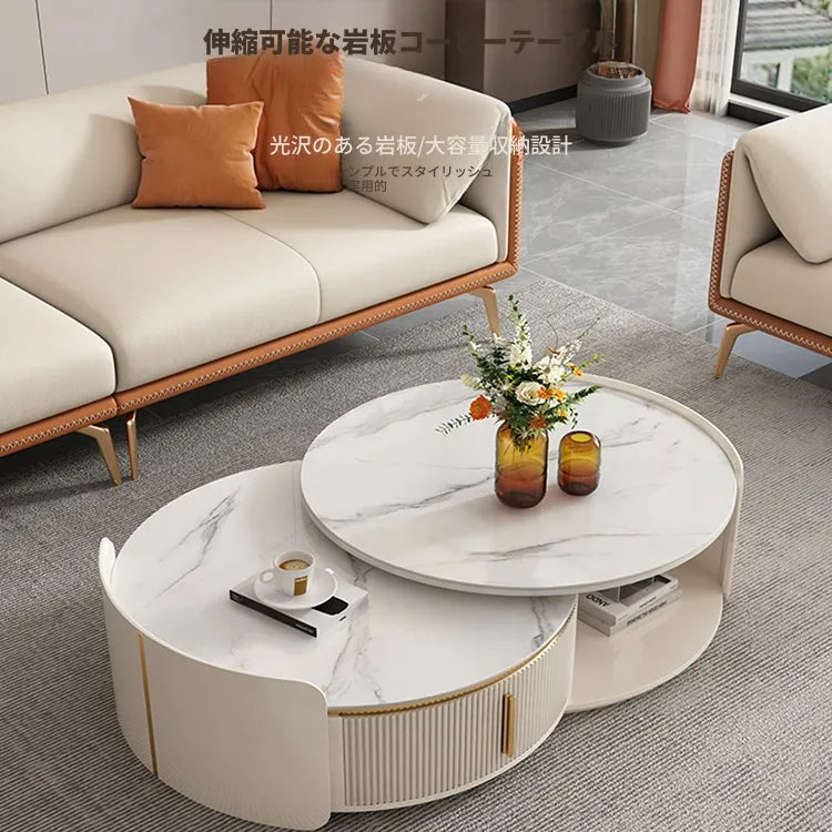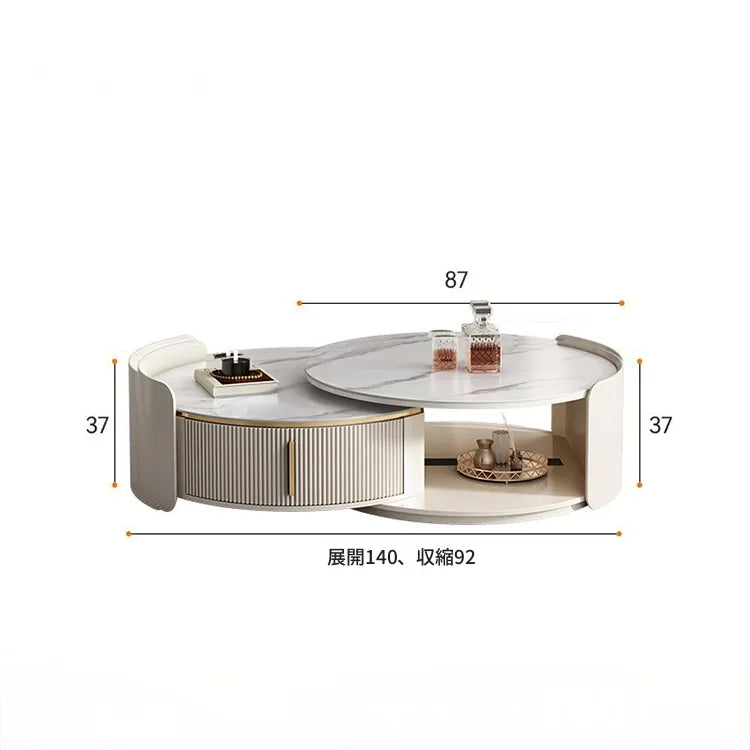 セラミック天板伸縮式リビングテーブルセット モダンミニマルデザイン hqm-3237