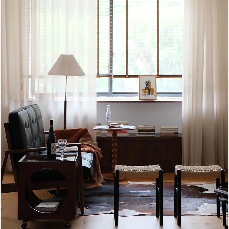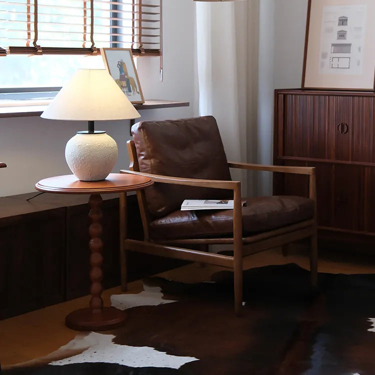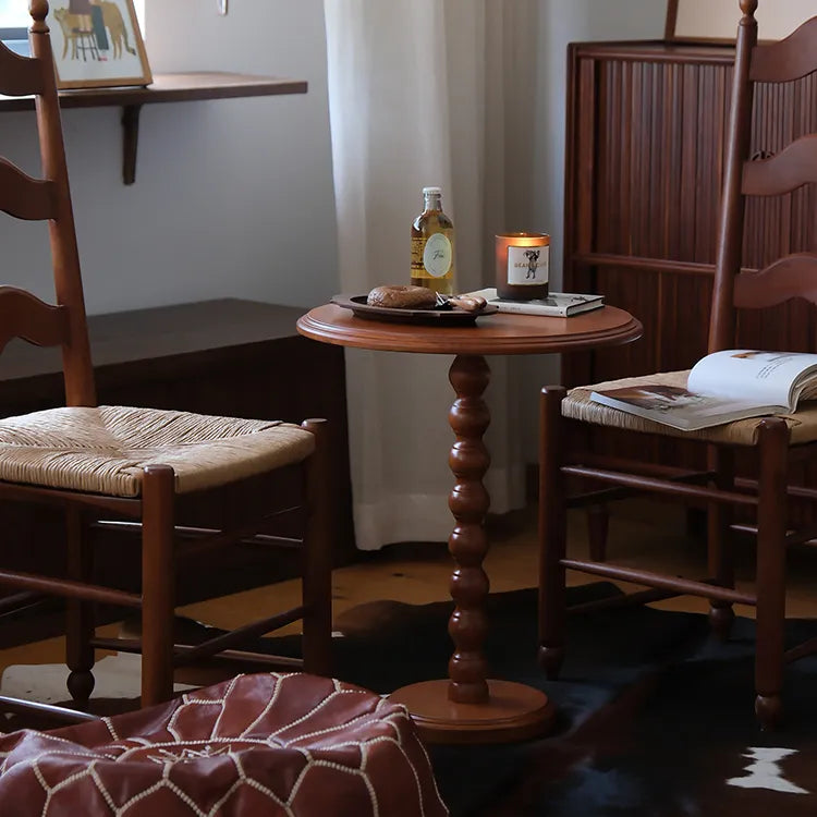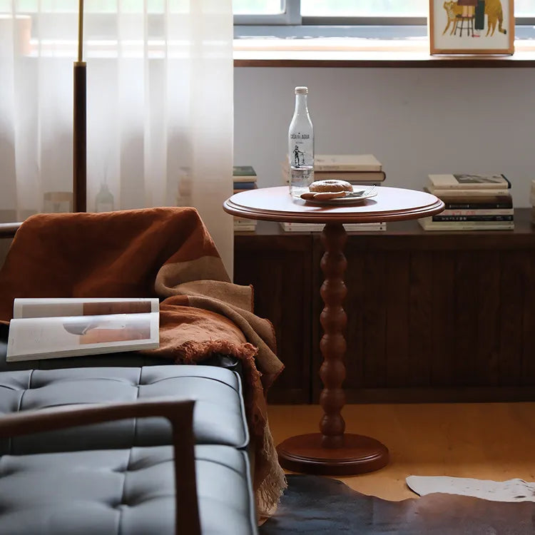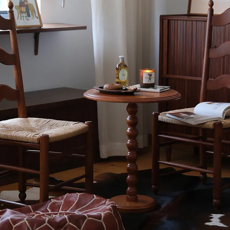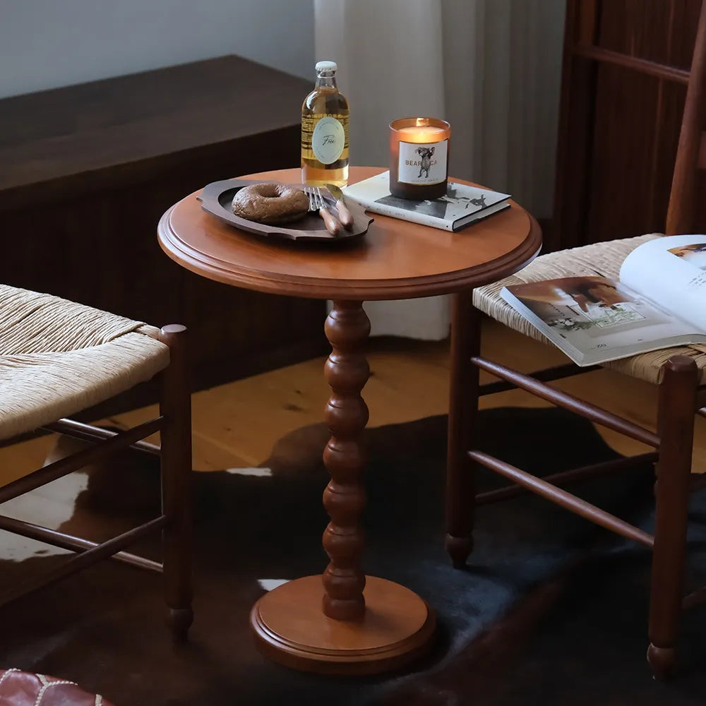 ブラウン実木ラウンドサイドテーブルリビング用フレンチスタイルひょうたん脚デザイン htysd-3175