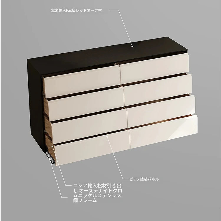 商品特徴 | スタイリッシュなデザインのキャビネットで、リビングや寝室にぴったりです。シンプルなラインが魅力を引き立て、どんなインテリアにも調和します。 集成材、ステンレス、パインを使用したキャビネットは、耐久性と安定性を兼ね備えており、長くお使いいただけます。安心してお部屋をおしゃれに演出してください。 収納力抜群のこのキャビネットは、8つの広々とした引き出しを備えており、書類や衣類、小物をすっきり整理できます。使い勝手の良さも魅力です。 シンプルながらもエレガントな印象を与えるデザイン。オフィスやクローゼットにも最適で、多様なシーンで使用できるので、どんなライフスタイルにもフィットします。 ステンレス脚は、キャビネットに現代的なタッチを加え、安定感を提供します。高級感のある仕上げは、上質な空間を演出します。 お手入れも簡単で、忙しい日常の中でも使いやすい!日々の生活を豊かにするキャビネットをぜひお試しください。 |