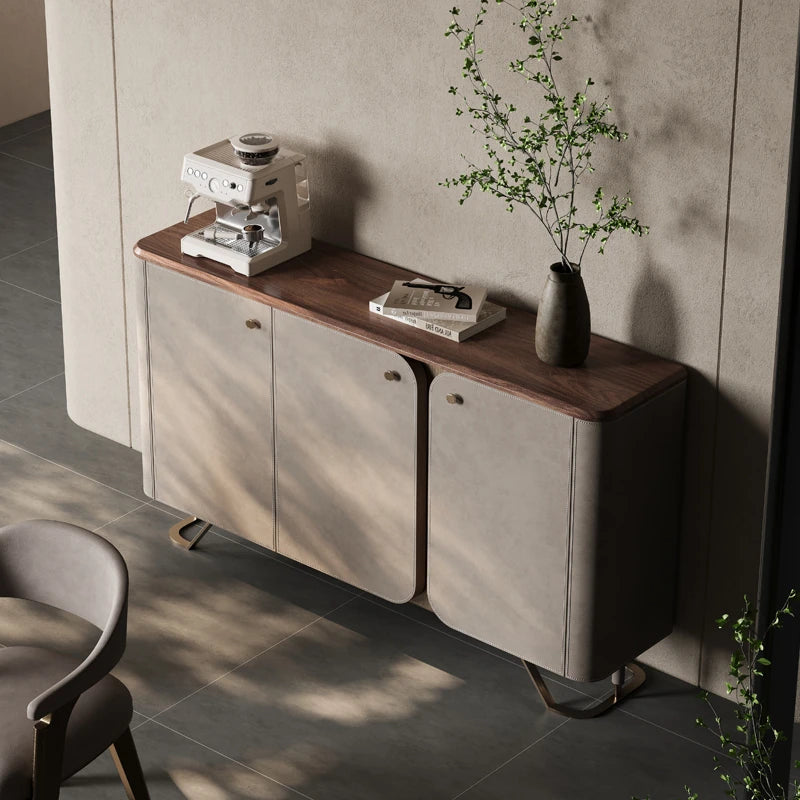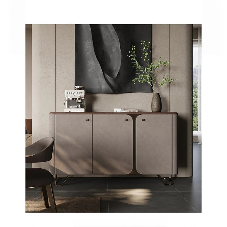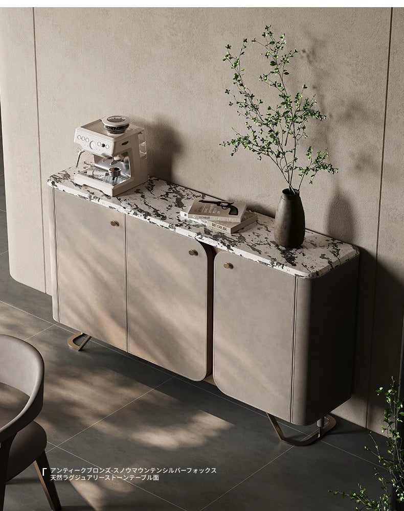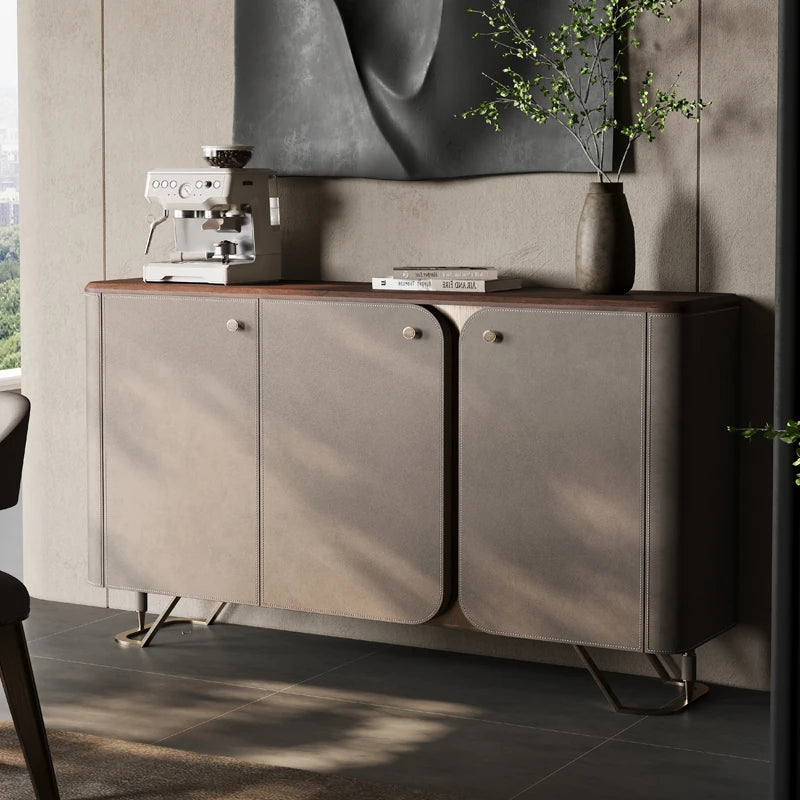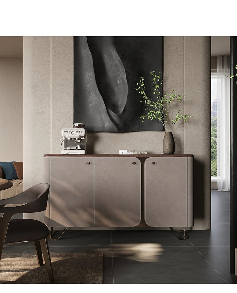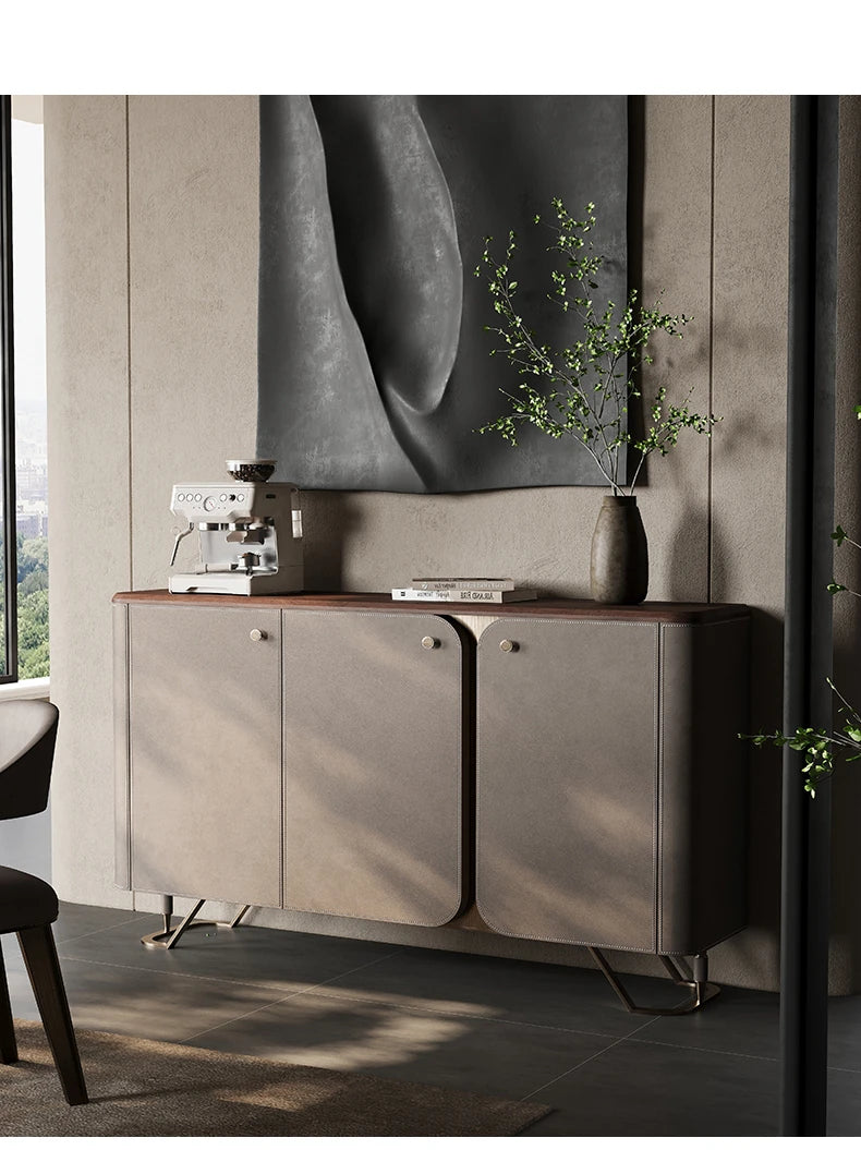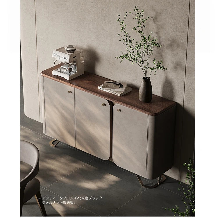 洗練されたPUレザーキャビネット|ウォールナット多層板使用|スタイリッシュなインテリア収納家具 fsu-5239