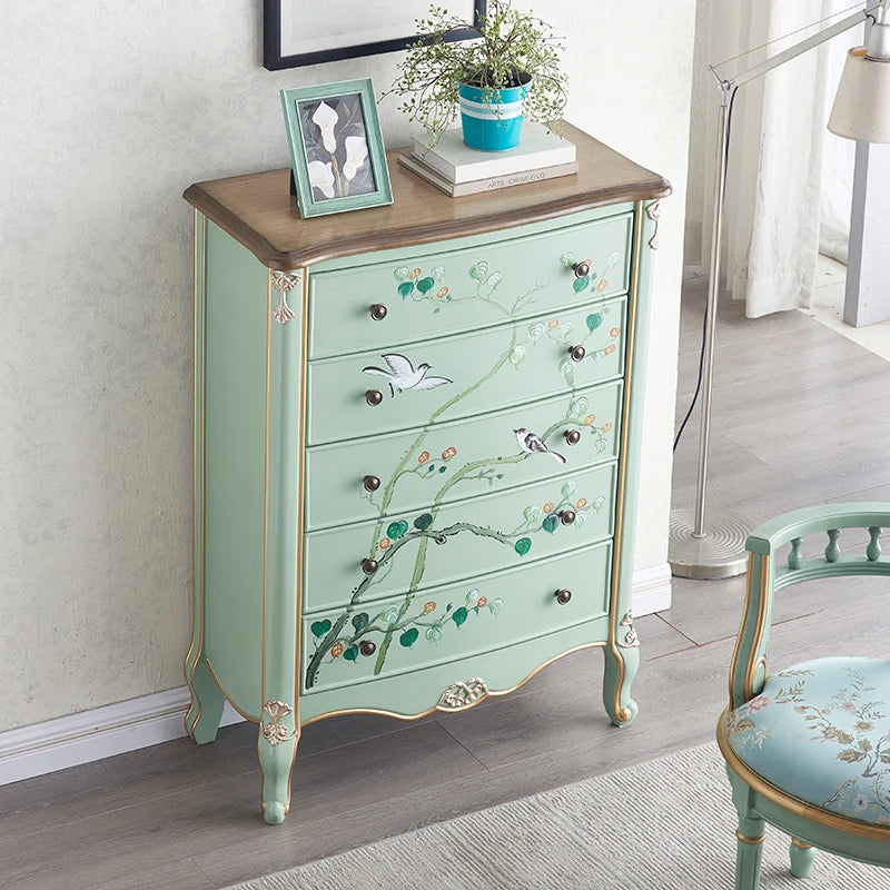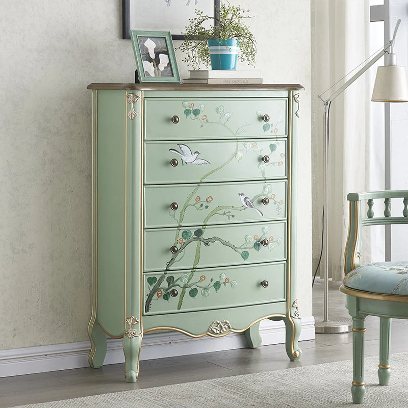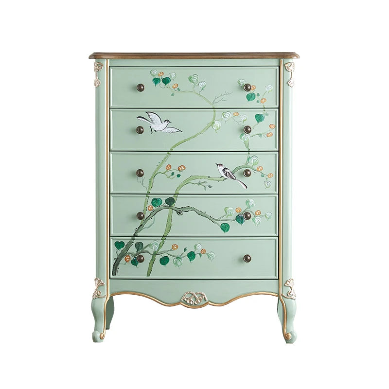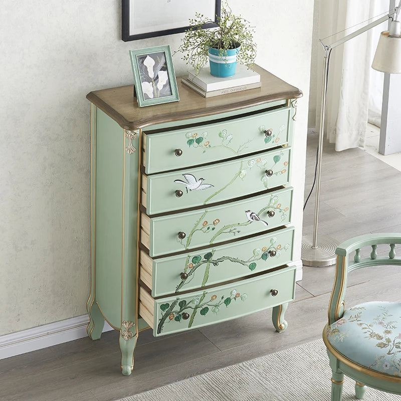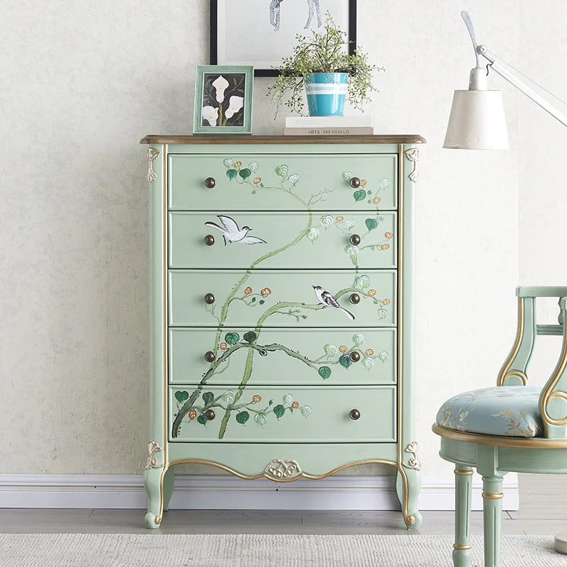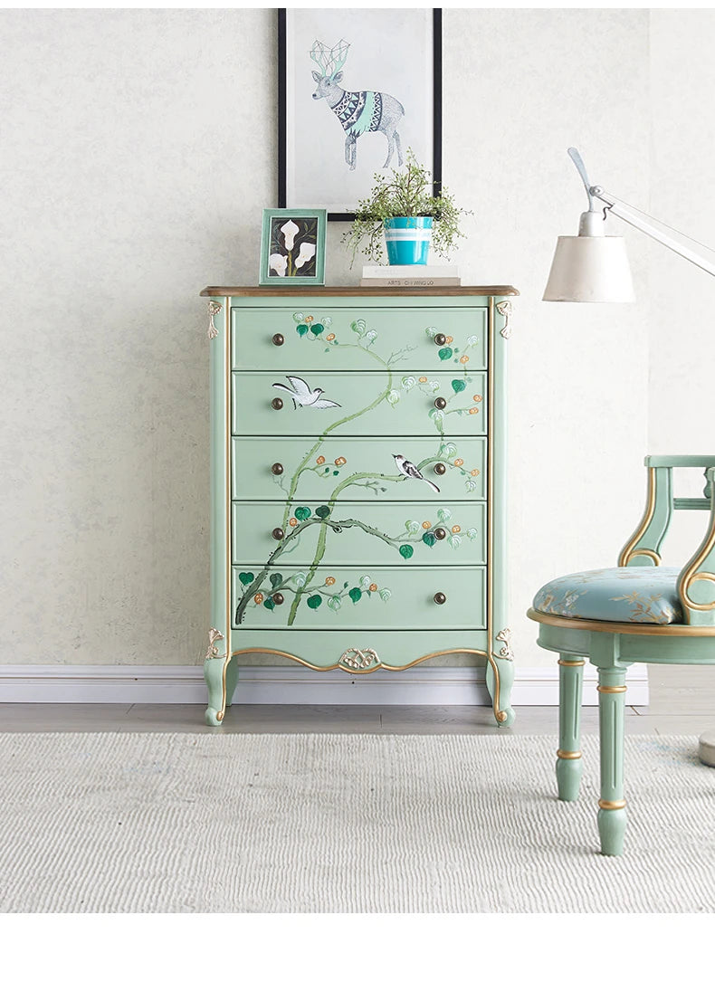 手描きの植物モチーフが施されたこのキャビネットは、ナチュラルな雰囲気を演出し、特別な空間を作り出します。