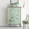 おしゃれなグリーンのペイント仕上げが魅力的なこのキャビネットは、モダンなインテリアにもクラシックなスタイルにもぴったりです。
