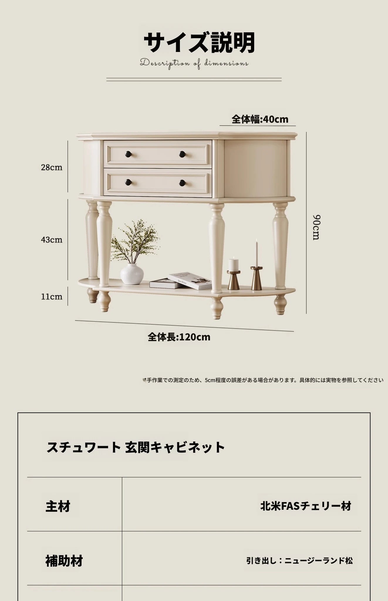 商品特徴 | このキャビネットは、高品質のチェリー材とパイン材を使用し、耐久性と美しさを兼ね備えています。どんなインテリアにも自然に溶け込みます。 モダンなデザインとクラシックなスタイルを融合したキャビネットは、リビングルームやエントランスにぴったり。収納力も抜群で、整理整頓が簡単です。 お手入れが簡単で、長持ち。金属のハンドルがアクセントになっており、毎日の使用に最適です。 アレルギーの心配がなく、無臭の家具であるため、心地よい住環境を提供します。家族全員が安心して使えるアイテムです。 シンプルながらもスタイリッシュなデザインで、アクセサリーや本を飾るのに最適。あなたの生活空間に個性をプラスします。 サイズもコンパクトで、狭いスペースにもフィット。どんな部屋にも調和するデザインで、インテリアの主役になります。 |