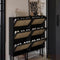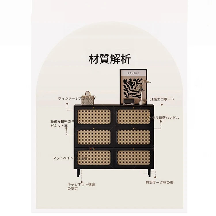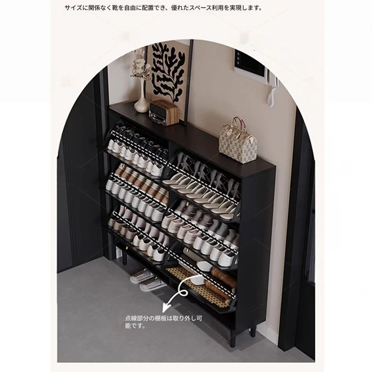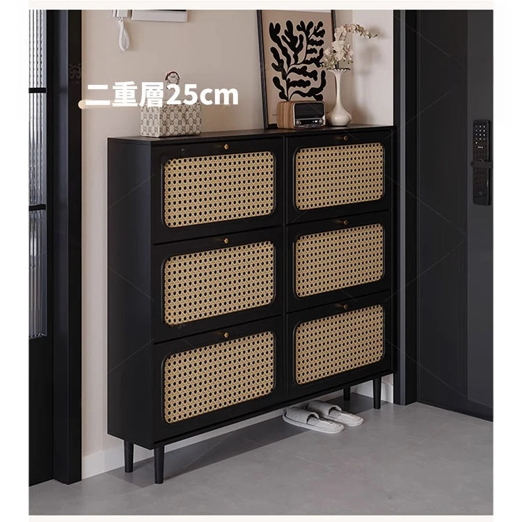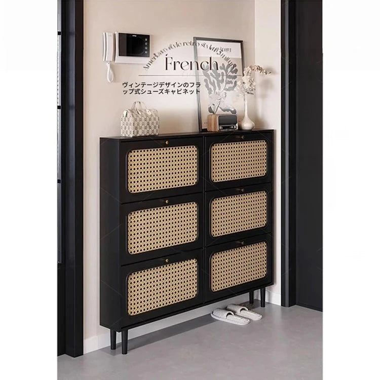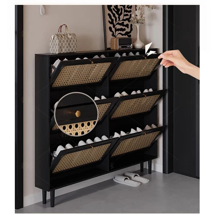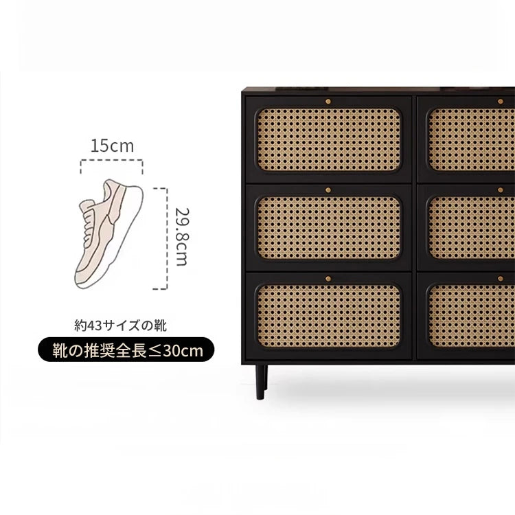おしゃれなシューズキャビネット|収納力抜群のデザイン|玄関に最適なブラックとラタン風仕上げ hmz-4948