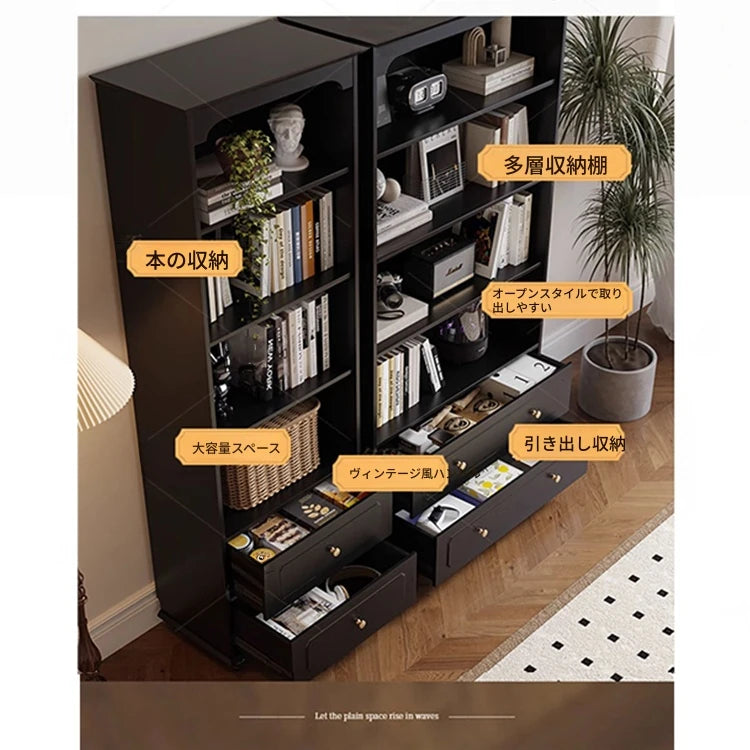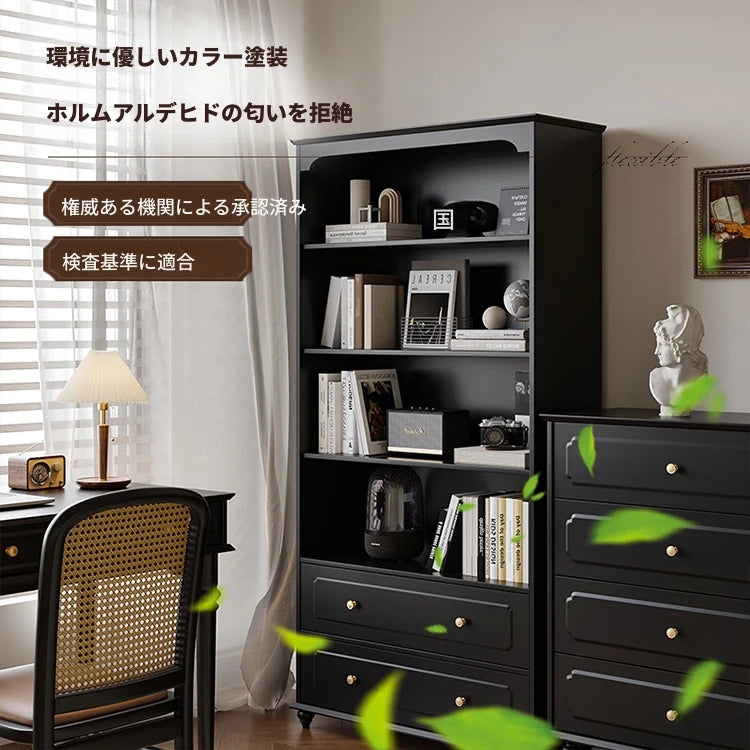 整理整頓に最適な集成材製のキャビネット。オープンシェルフと引き出しを組み合わせたデザインで、書籍や小物をしっかり収納できます。使うほどに愛着が湧く一品です。
