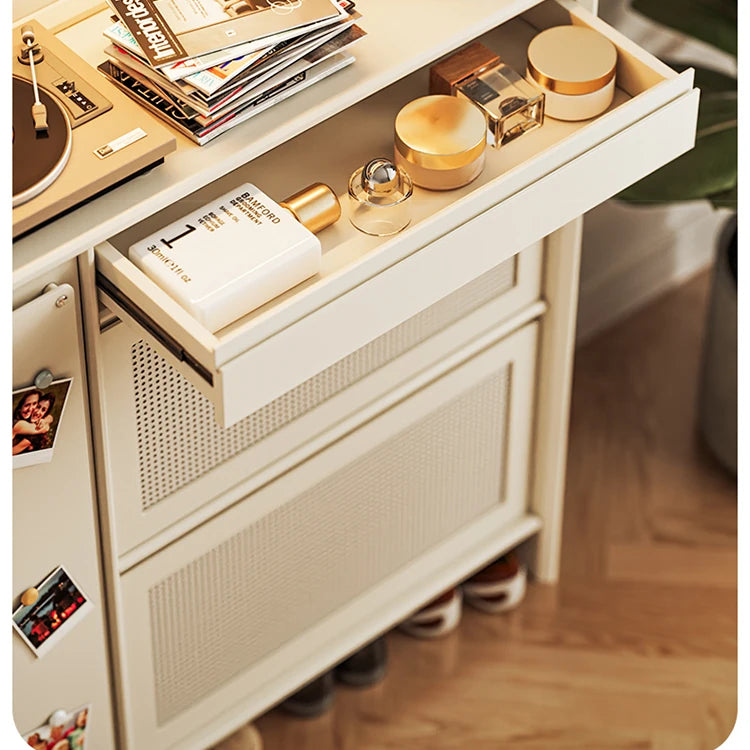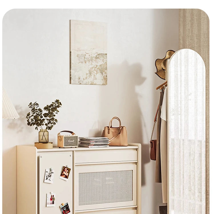 デザイン性と機能性を両立したこのキャビネットは、リビングや寝室など、多彩なシーンで活躍します。インテリアのスタイルを引き立てるアイテムです。