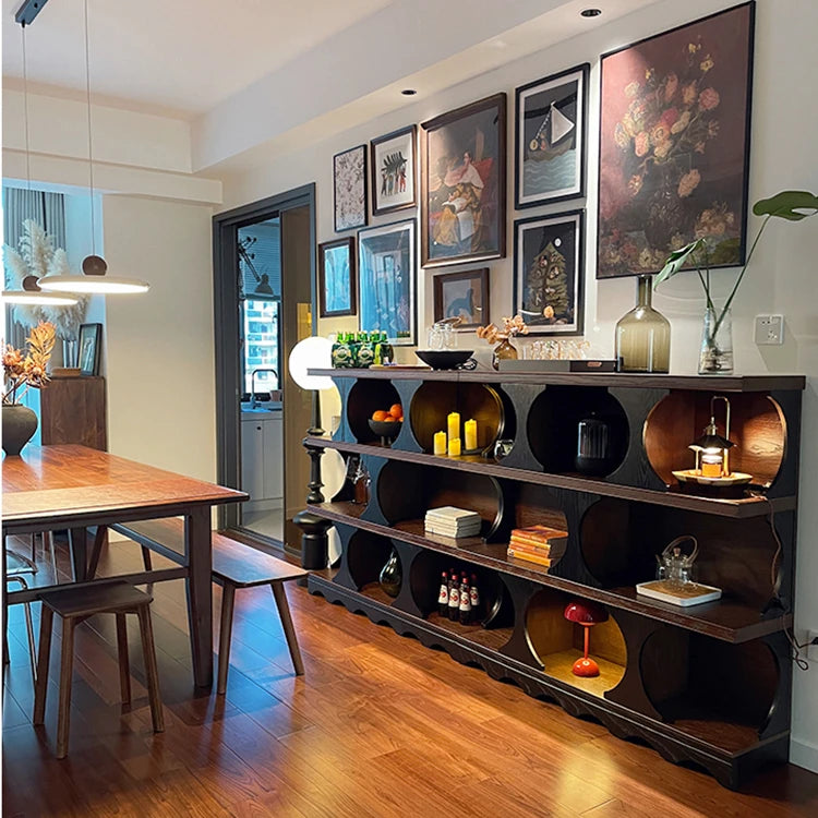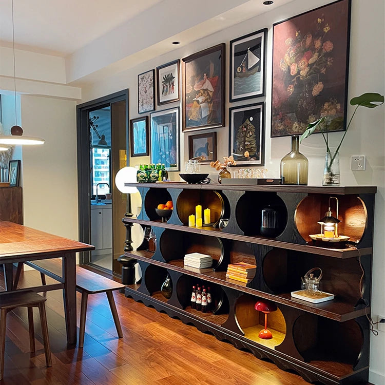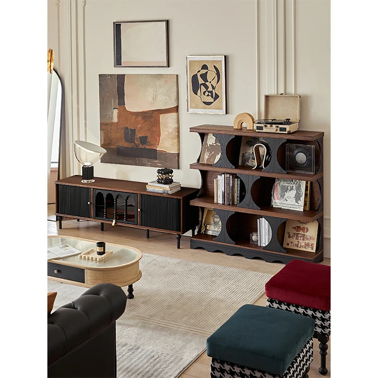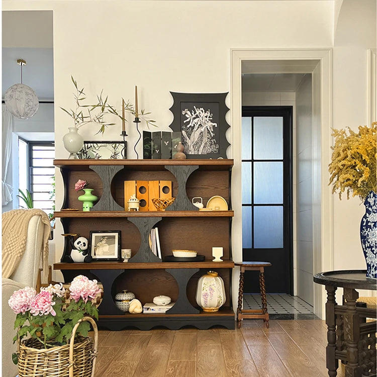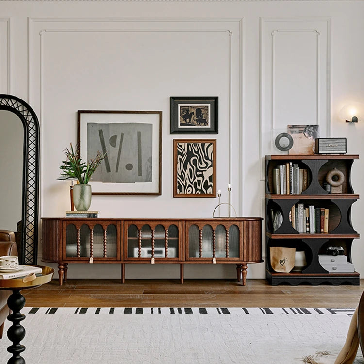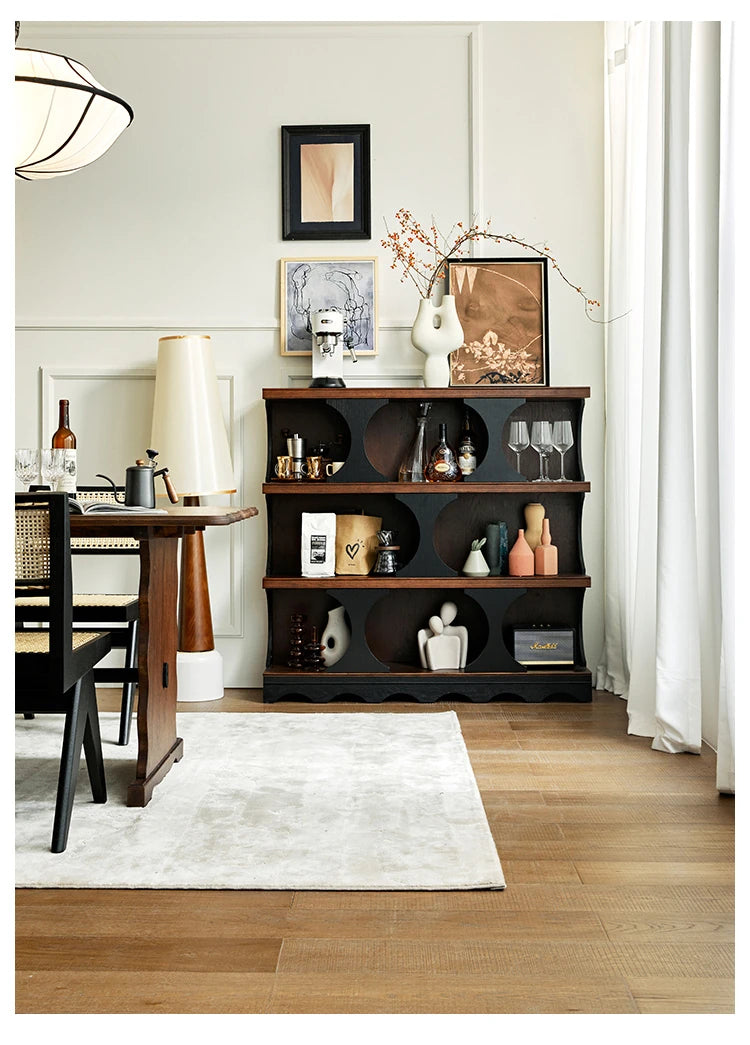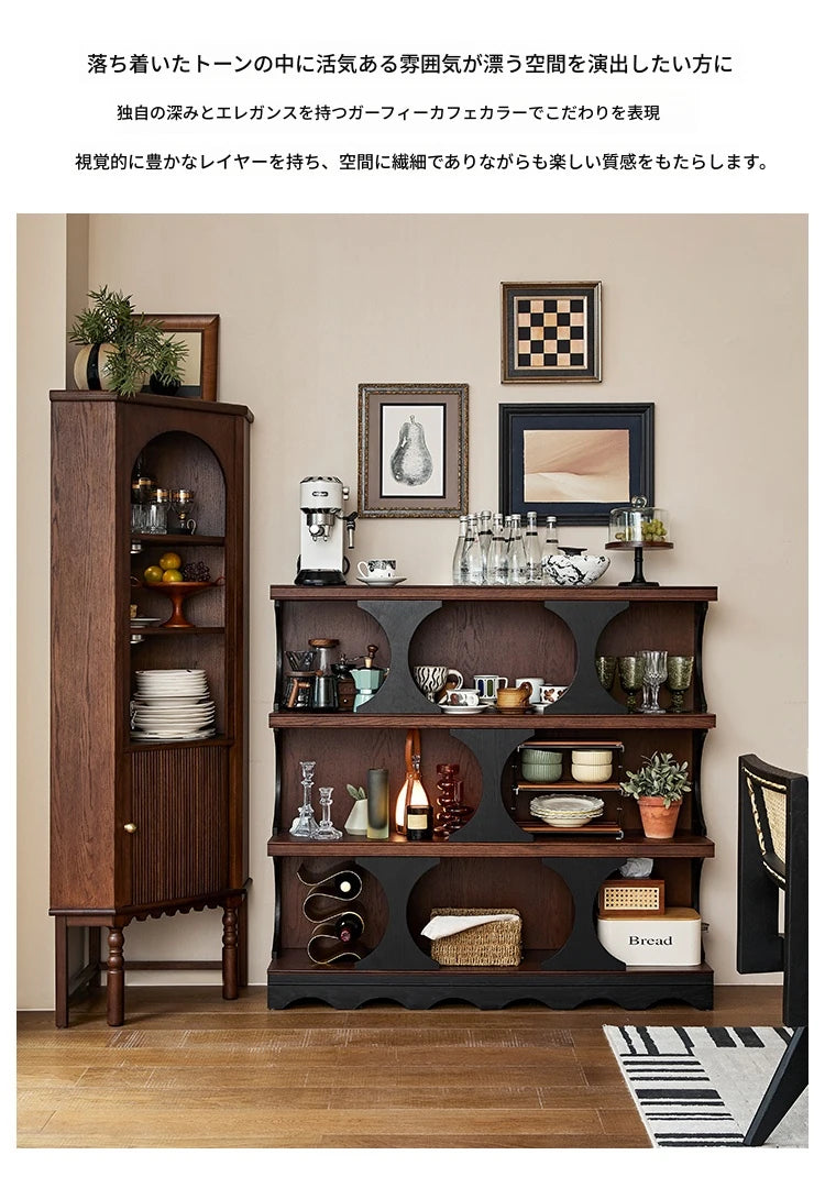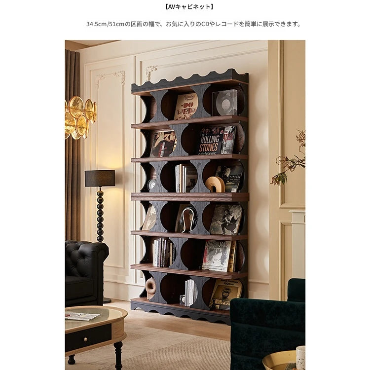 独特の曲線デザインが特徴的なこのキャビネットは、あなたの好きなアイテムをスタイリッシュにディスプレイできる場所を提供します。アート作品や本を魅力的に演出します。