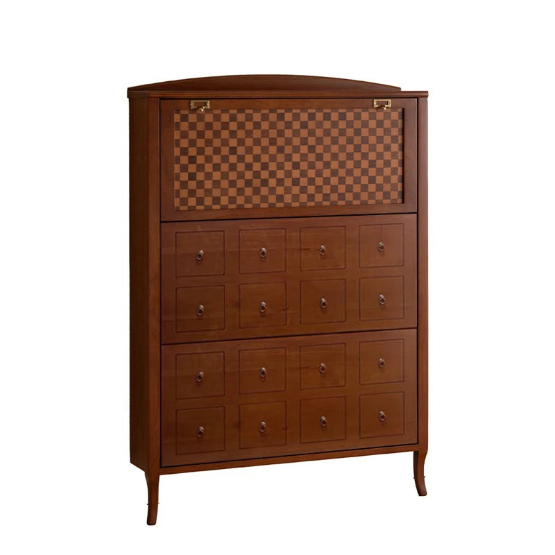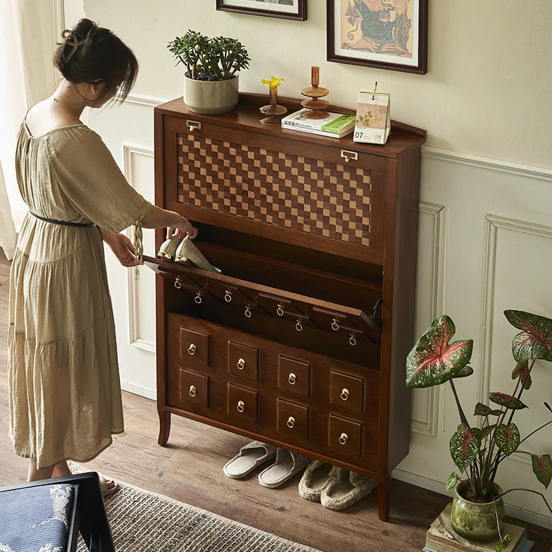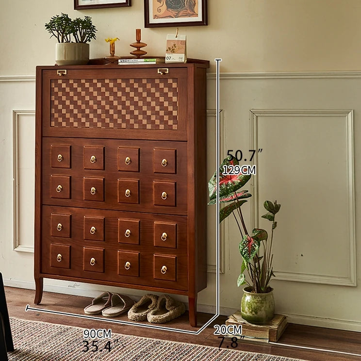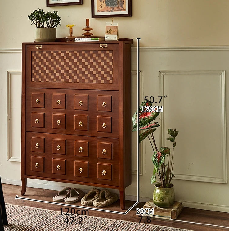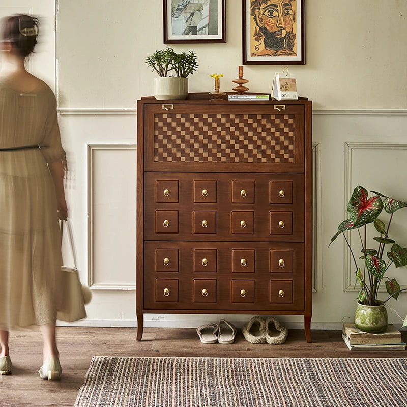 アッシュ材製モダンキャビネット|チェックパターン扉付き収納家具|スタイリッシュなインテリアに最適 hsysg-4992