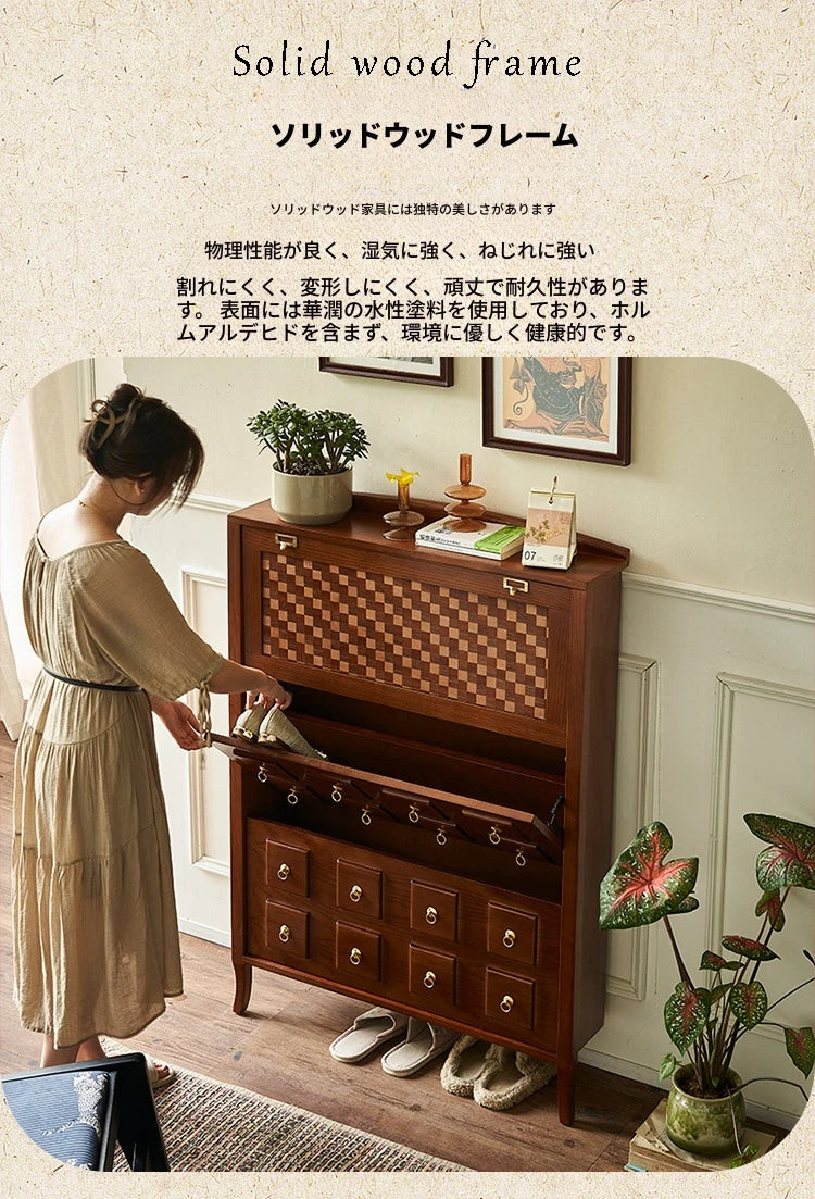 商品特徴 | この美しいキャビネットは、アッシュ材と多層板を使用し、耐久性とエレガンスを兼ね備えています。どんなインテリアにもぴったりフィットします。 チェス模様のフロントデザインが特徴のキャビネット。個性的なスタイルで、リビングやエントランスを華やかに演出します。あなたの空間を一変させるアイテムです。 多機能のこのキャビネットは、たっぷりの収納スペースを提供します。靴や小物を整理整頓し、使いやすさを追求したデザインです。 金属製のハードウェアが施されたこのキャビネットは、モダンな印象を与えつつ、クラシックな魅力も持ち合わせています。訪れた人の目を引くことでしょう。 スタイリッシュなアッシュ材のキャビネットは、耐久性に優れ、長くご使用いただけます。インテリアの質感を高める要素として最適です。 おしゃれな収納ソリューションをお探しの方に最適なキャビネット。デザイン性と機能性を兼ね備えたこのアイテムは、あなたの生活をより豊かにします。 |