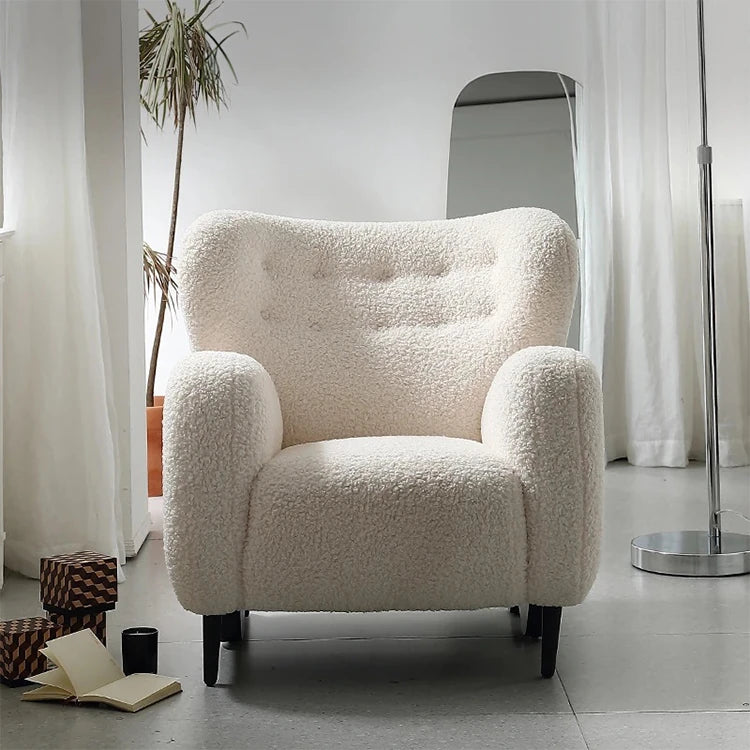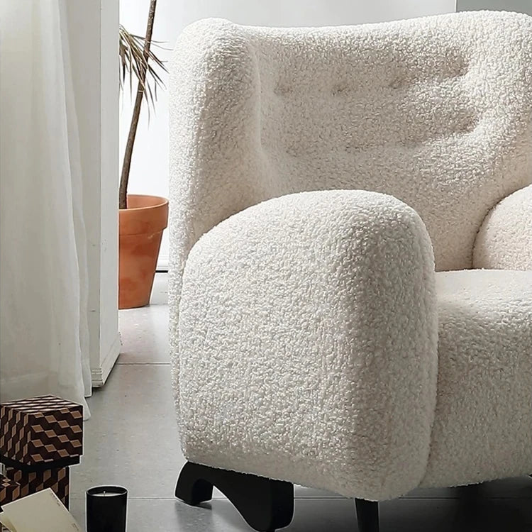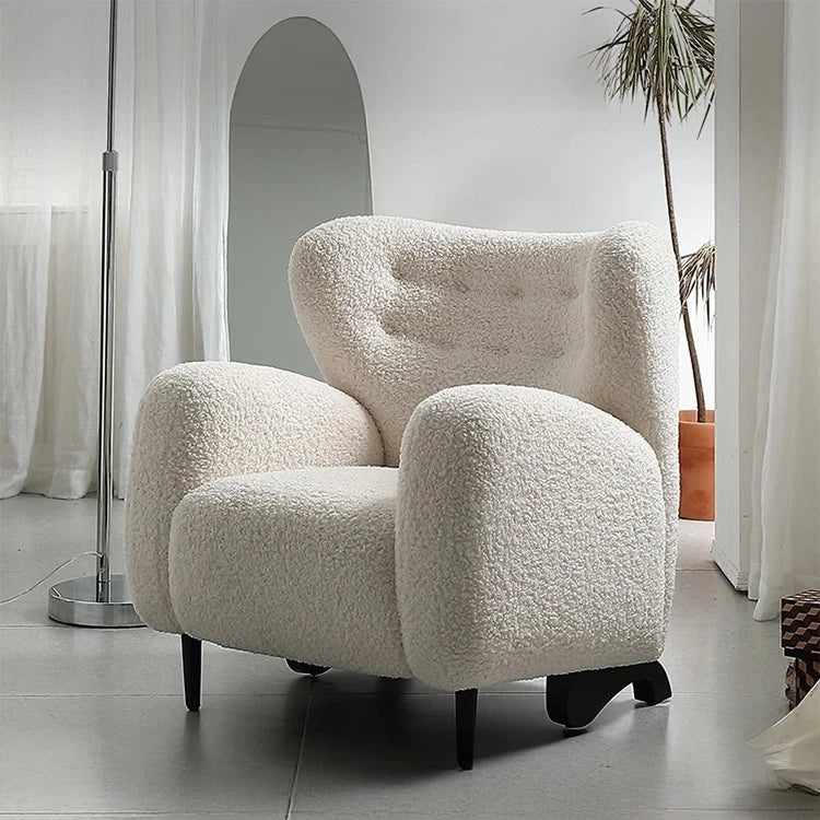 商品特徴 | このチェアはシープボア素材で、柔らかさと心地よさを兼ね備えています。リビングルームや書斎にぴったりのアイテムです。 ステンレス脚を採用したこのチェアは、耐久性が高く、スタイリッシュな印象を与えます。長年愛用できる逸品です。 ウレタンフォームのクッションが体をしっかりサポートし、リラックスした座り心地を実現。お好きな本を読みながら、ゆったりと過ごせます。 ラバーウッドのフレームは、環境にも配慮したエコフレンドリーな選択肢です。インテリアに自然の温もりをプラスします。 このチェアは独特のデザインで、どんな部屋にも調和する美しい存在感を放ちます。一目で心をつかむ、魅力的なアイテムです。 お手入れも簡単なシープボア素材を使用しているため、日常的に使用するにも最適です。スタイリッシュでありながら実用的な選択です。 |