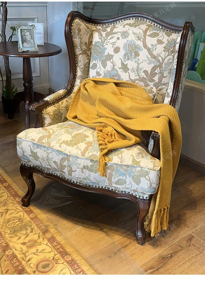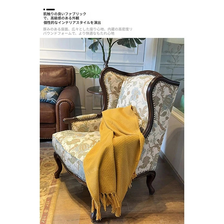 クラシックなデザインのチェアは、リビングや読書空間にぴったり。スタイルにアクセントを加え、訪れる人々を魅了します。