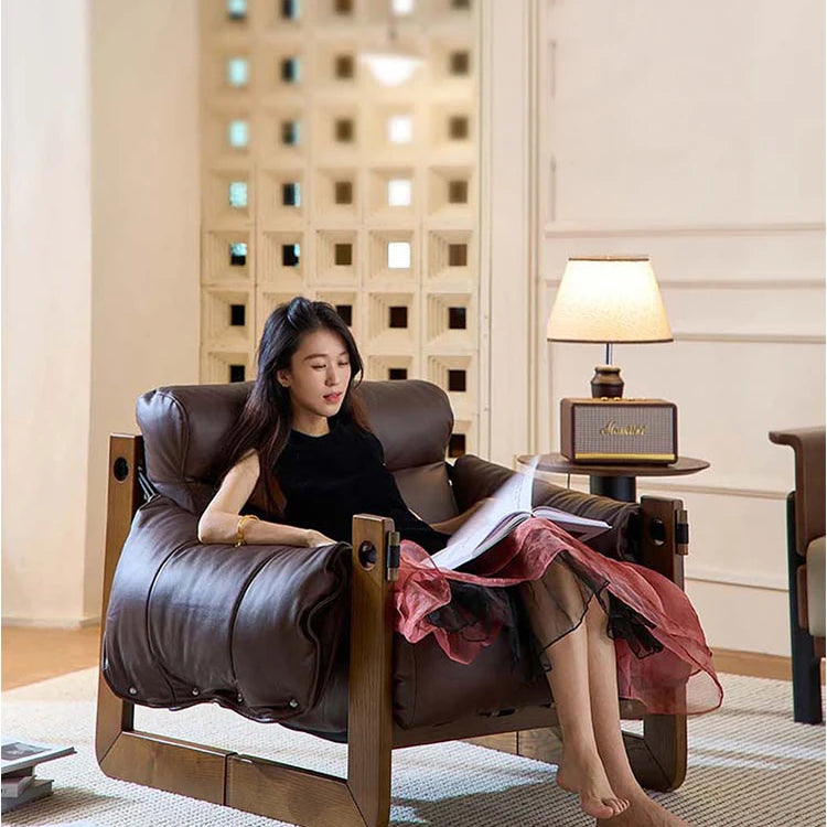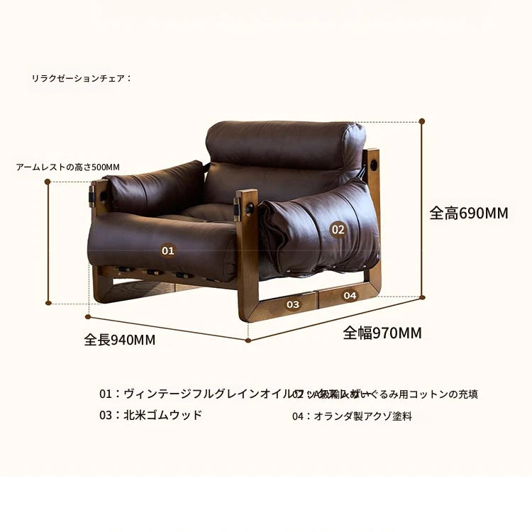 シリコンフィル本革製リラクゼーションチェア - リッチな座り心地とスタイリッシュなデザインでくつろぎの時間を演出 fme-3130