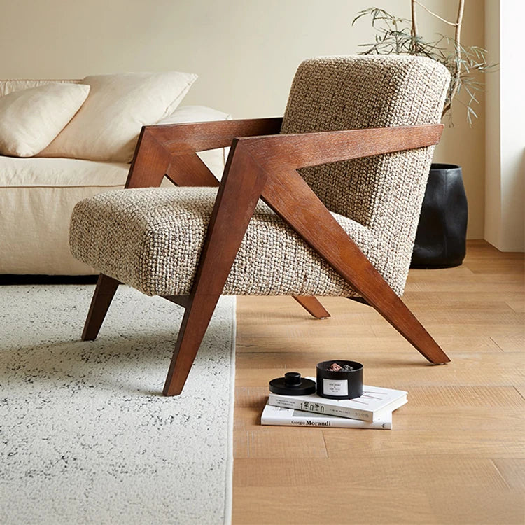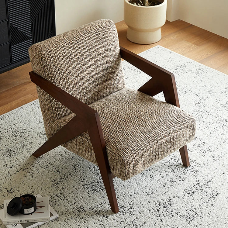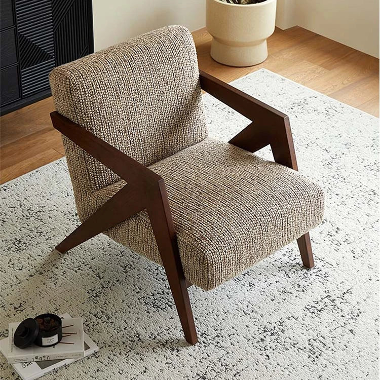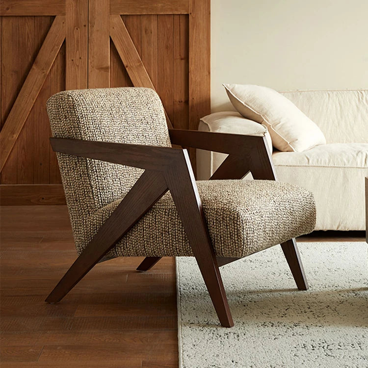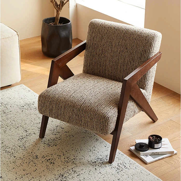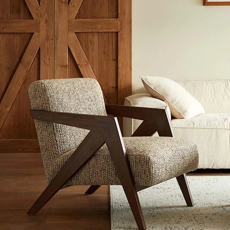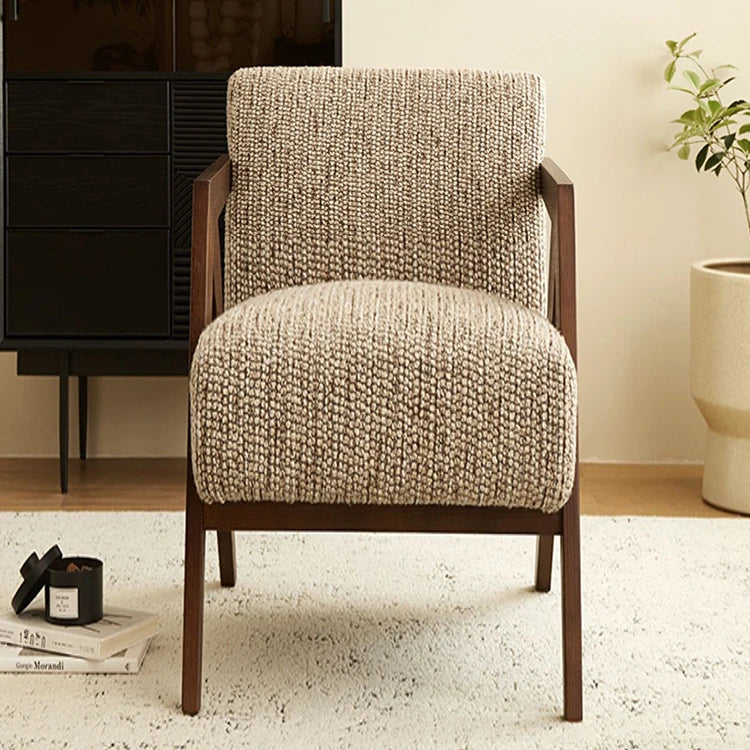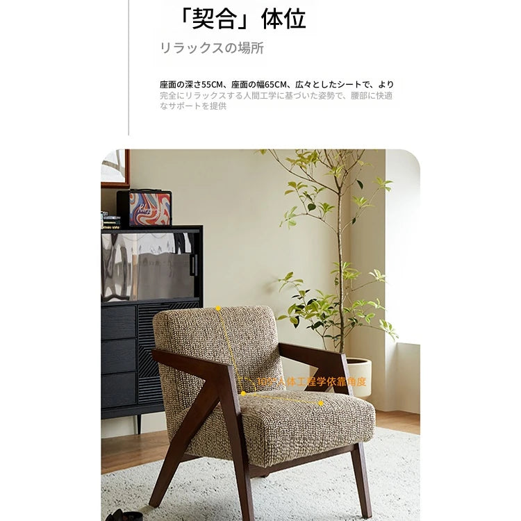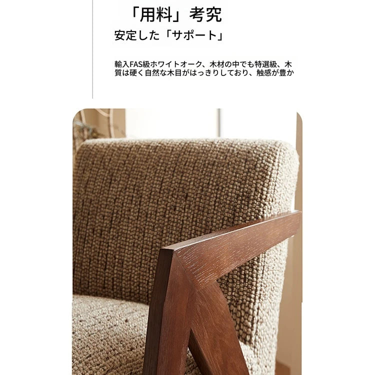 スタイリッシュな綿麻チェア|ナチュラルウッドフレームのリビング家具|快適な座り心地と洗練されたデザイン fme-3132