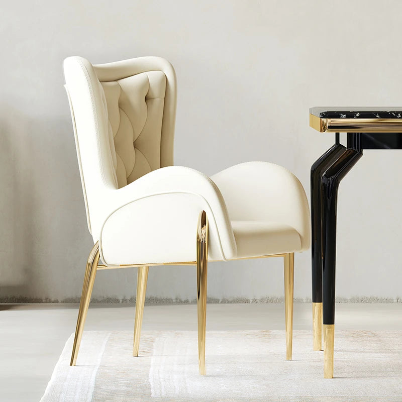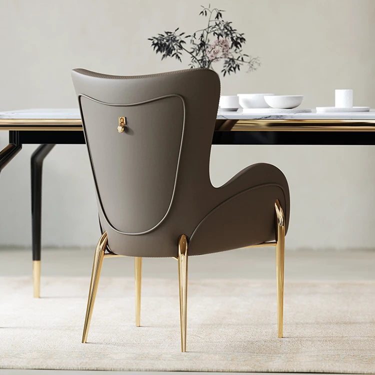 高級感あふれる無垢材・ステンレス製PUレザー チェア | おしゃれなインテリアに最適なリビングルーム用椅子 fmfd-5052