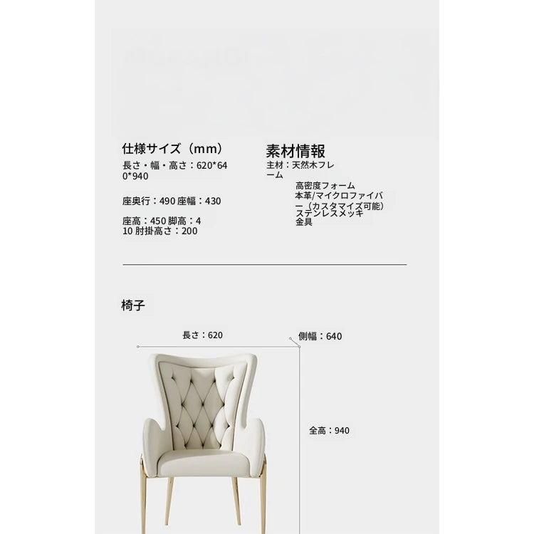 商品特徴 | このチェアは、無垢材とステンレスを使用した高品質なデザインで、モダンなインテリアに最適です。優雅なフォルムが空間を引き立てます。 PUレザーとウレタンのクッションが、快適な座り心地を提供。長時間の使用にも疲れづらく、リラックスしたひとときを楽しめます。 スタイリッシュなホワイトデザインは、どんなお部屋にもマッチ。シンプルながらも存在感のあるチェアで、あなたのインテリアをより一層引き立てます。 このチェアは、耐久性と美しさを兼ね備えています。無垢木材とステンレスの組み合わせにより、長持ちする商品をお求めの方にぴったりです。 手触りの良いPUレザーが高級感を演出。インテリアコーディネートのアクセントとして、またゲストを迎える際にも自信を持って使えるデザインです。 チェアの背もたれは心地よいアーチ形状で、身体をしっかりサポート。デザイン性と機能性を兼ね備えた一品です。 |
