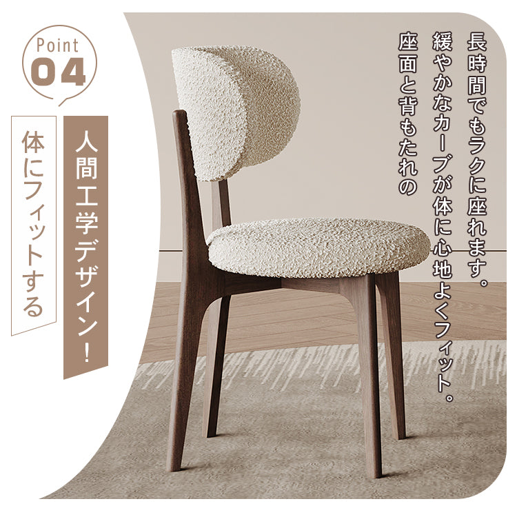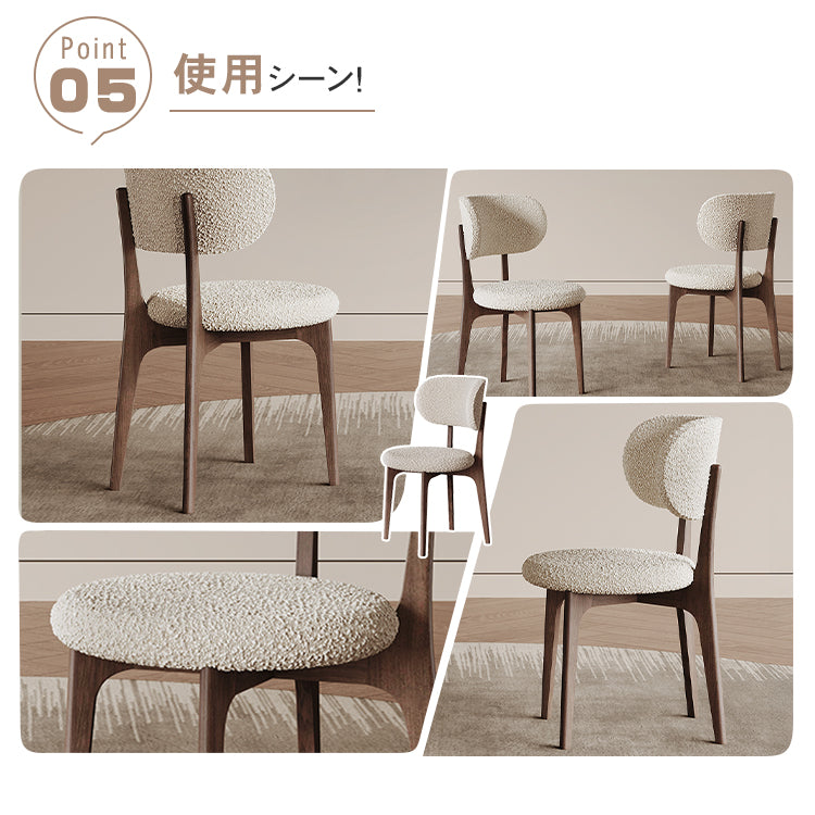 エコフレンドリーなオーク材を使用した、持続可能なデザインのチェア。シープボアのカバーはお手入れも簡単で、常に清潔感を保ちます。家族全員が安心して使える商品です。