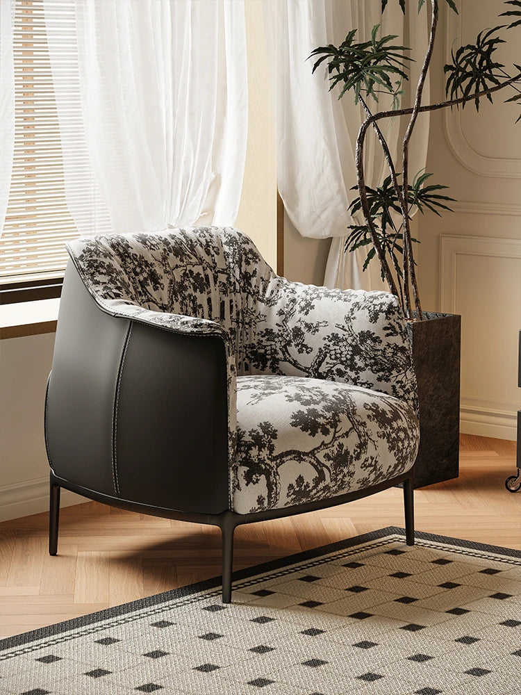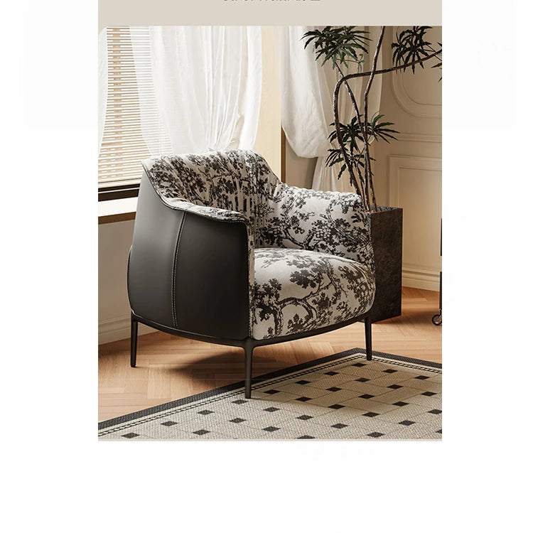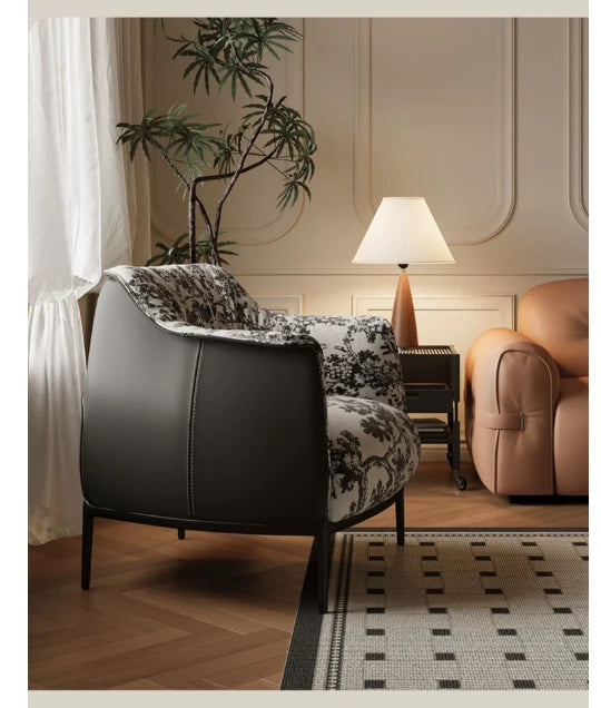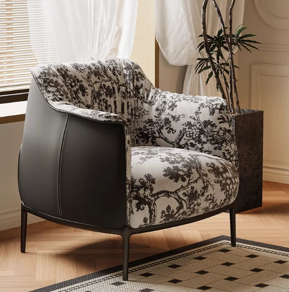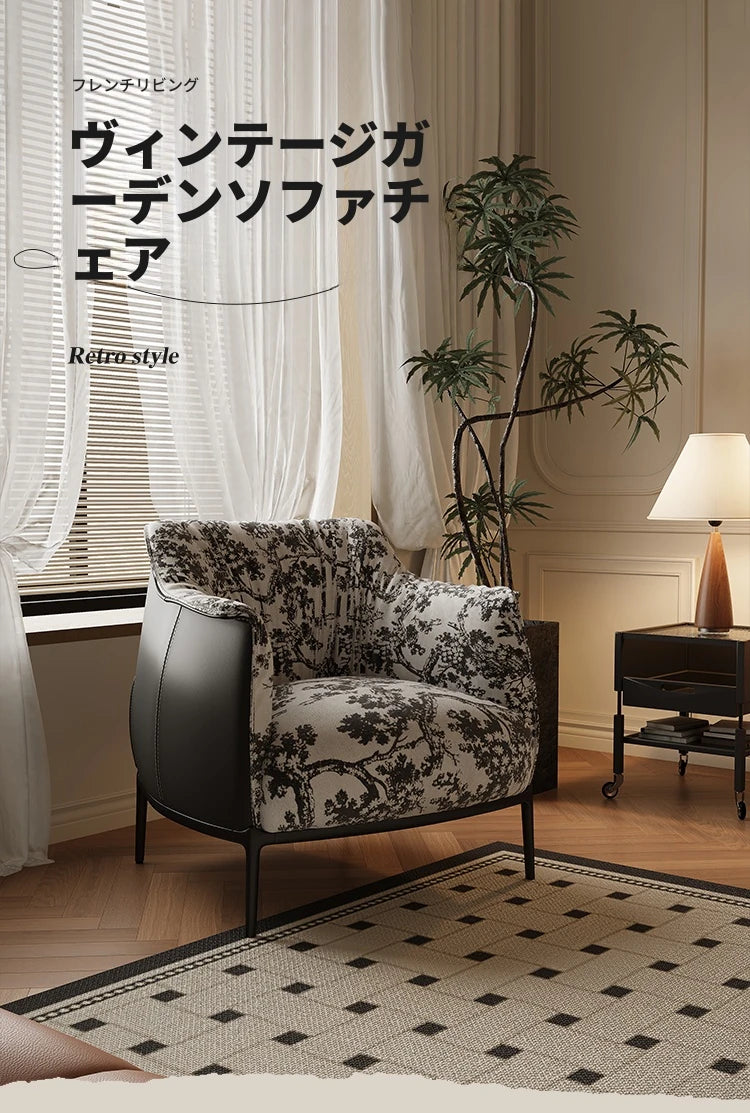エレガントなパイン素材のフラワーパターンチェア | エアレザー&綿麻製のモダンデザイン hsms-4930