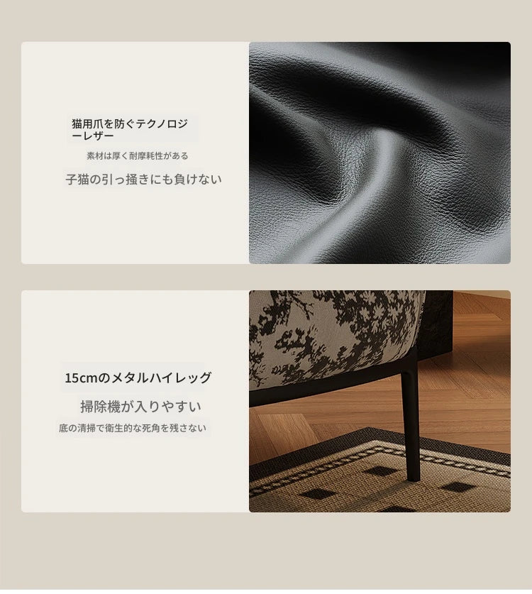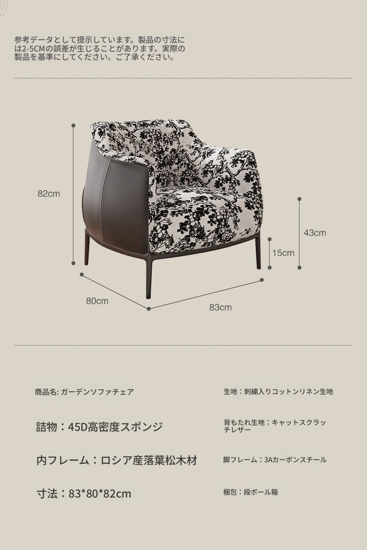商品特徴 | このスタイリッシュなチェアは、パイン材のフレームと炭素鋼の脚を使用しており、耐久性と安定性を兼ね備えたデザインです。お部屋のアクセントとして最適です。 ウレタンフォームで作られたクッションは、柔らかさと快適性を提供し、長時間座っていても疲れにくいので、リラックスタイムにぴったり。 エアレザーと綿麻のファブリックが組み合わさった表面は、見た目の美しさと使い心地を両立。お手入れも簡単で、日常使いにも安心です。 コンパクトなサイズ感で、限られたスペースにもぴったりフィット。リビングや書斎、寝室など、多用途に使える優秀なチェアです。 モダンなデザインがどんなインテリアにもマッチ。自宅の雰囲気を一新し、友人や家族を招待したくなる空間を演出します。 |
