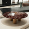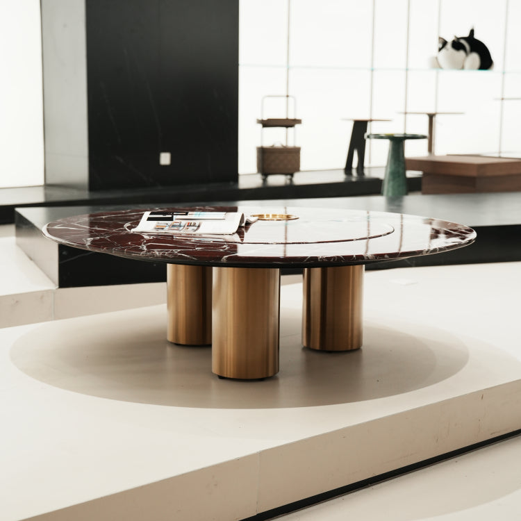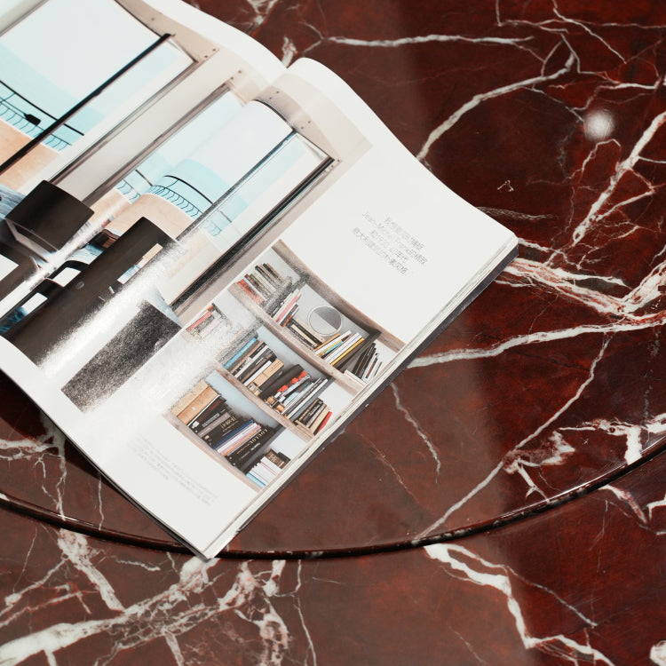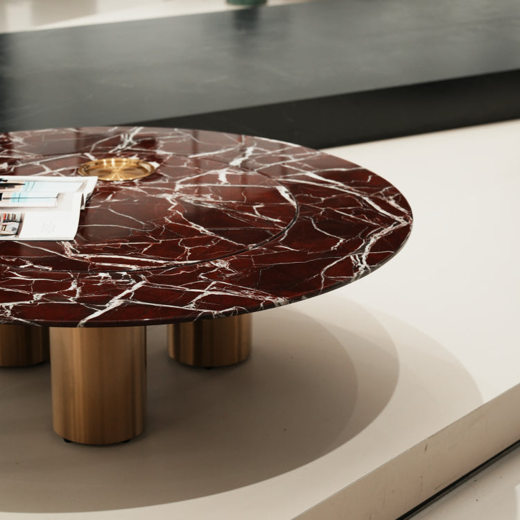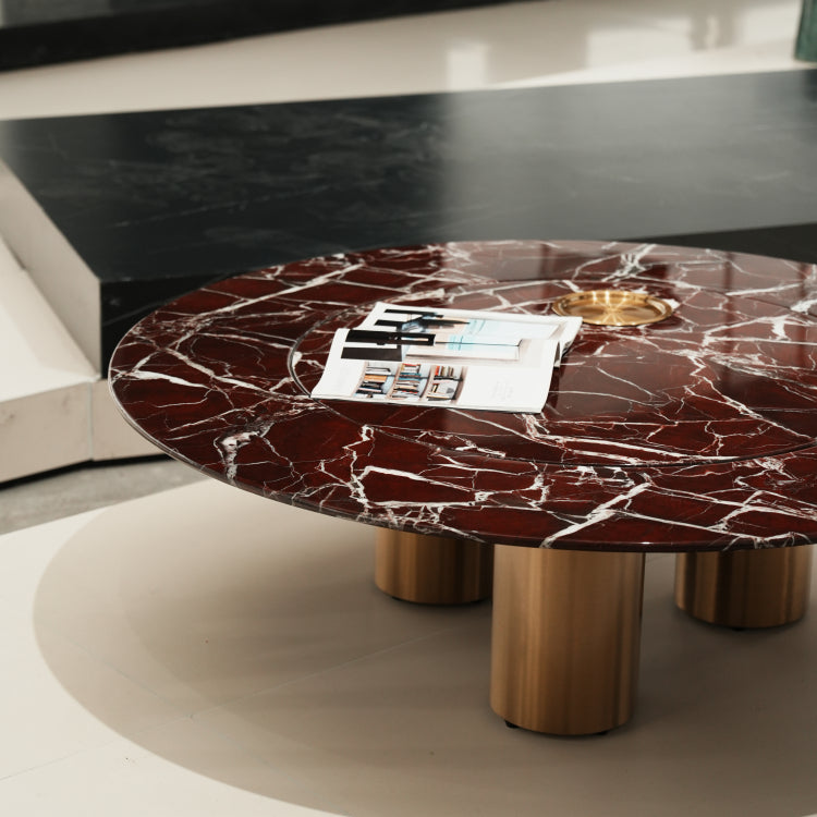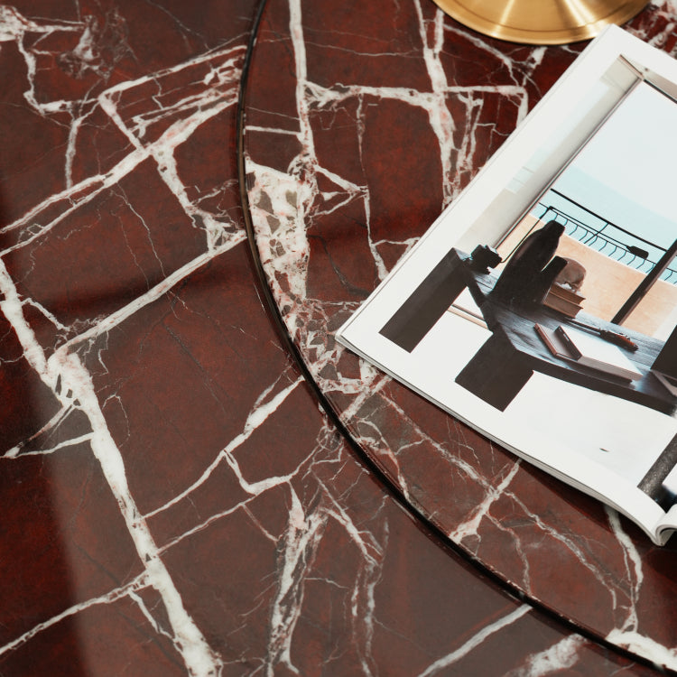 デザイナーズ 大理石センターテーブル 深紅マーブル×金属脚 ラグジュアリーモダン 丸ローテーブル120cm jrjj-8617