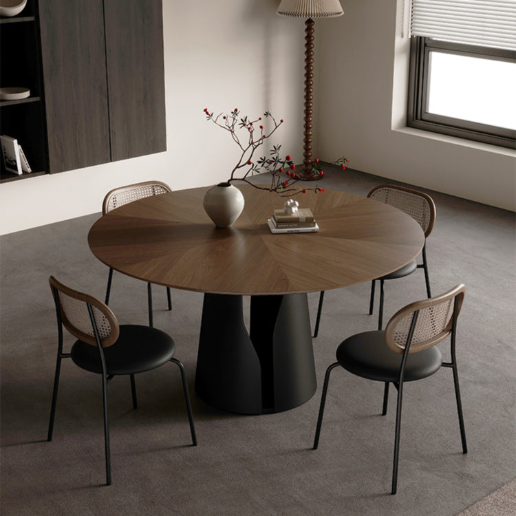 ウォールナット無垢材円形ダイニングテーブル 回転盤付き小型ダイニング向け hjl-2554