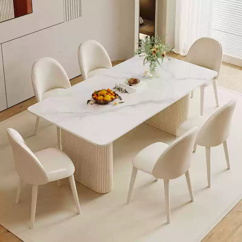 アイボリー調セラミック天板ダイニングテーブル 小型住宅向け ミニマルモダン 長方形 htt-3542