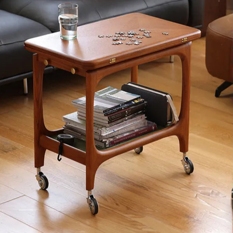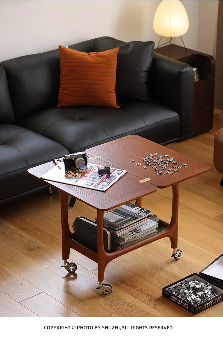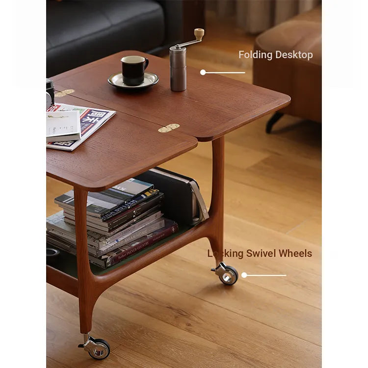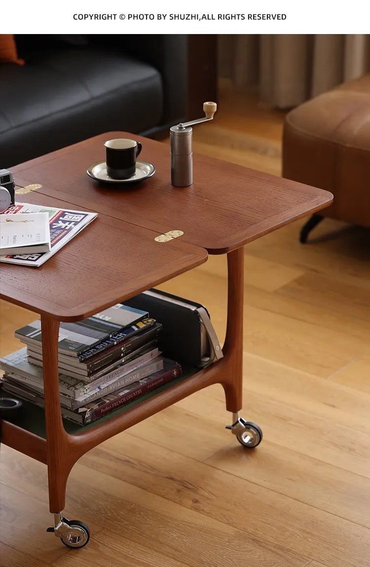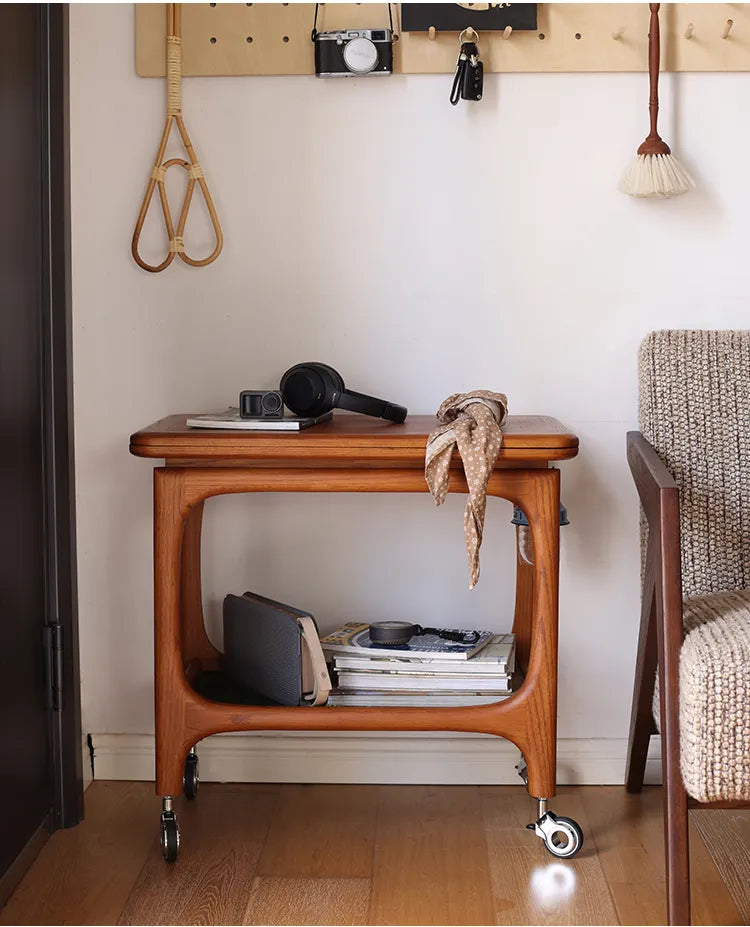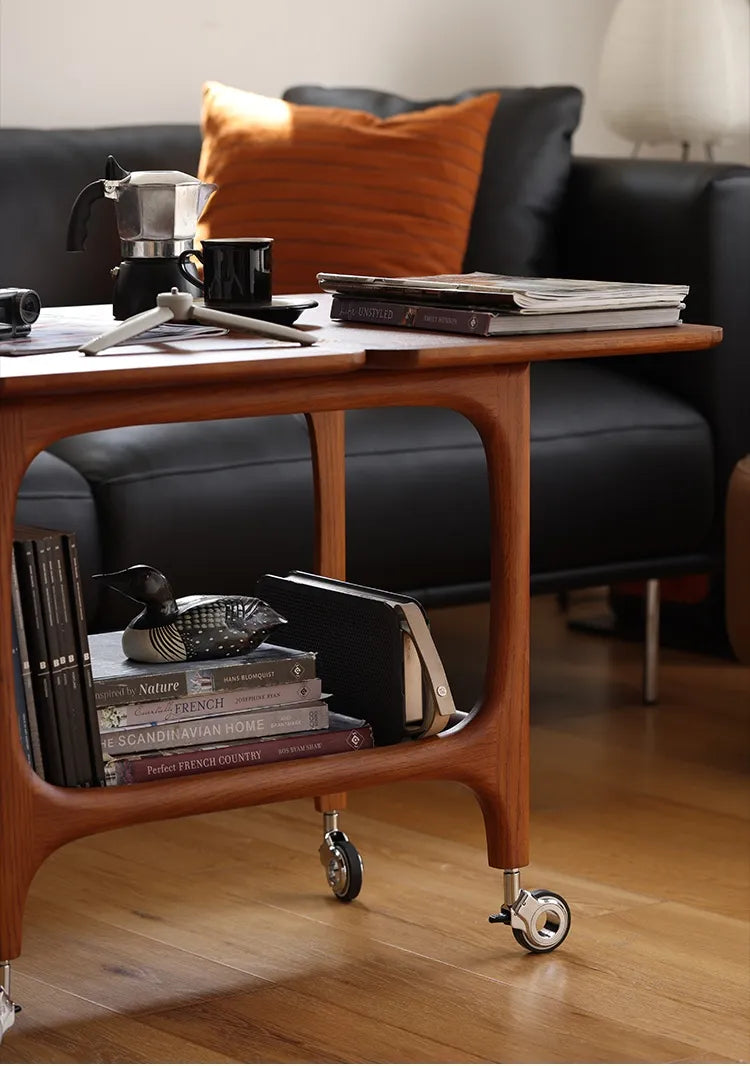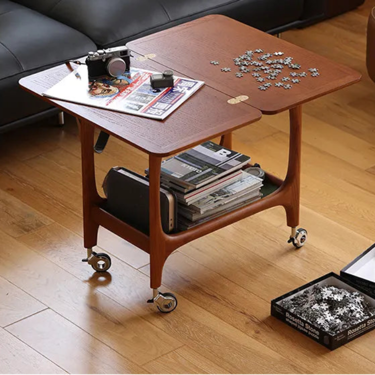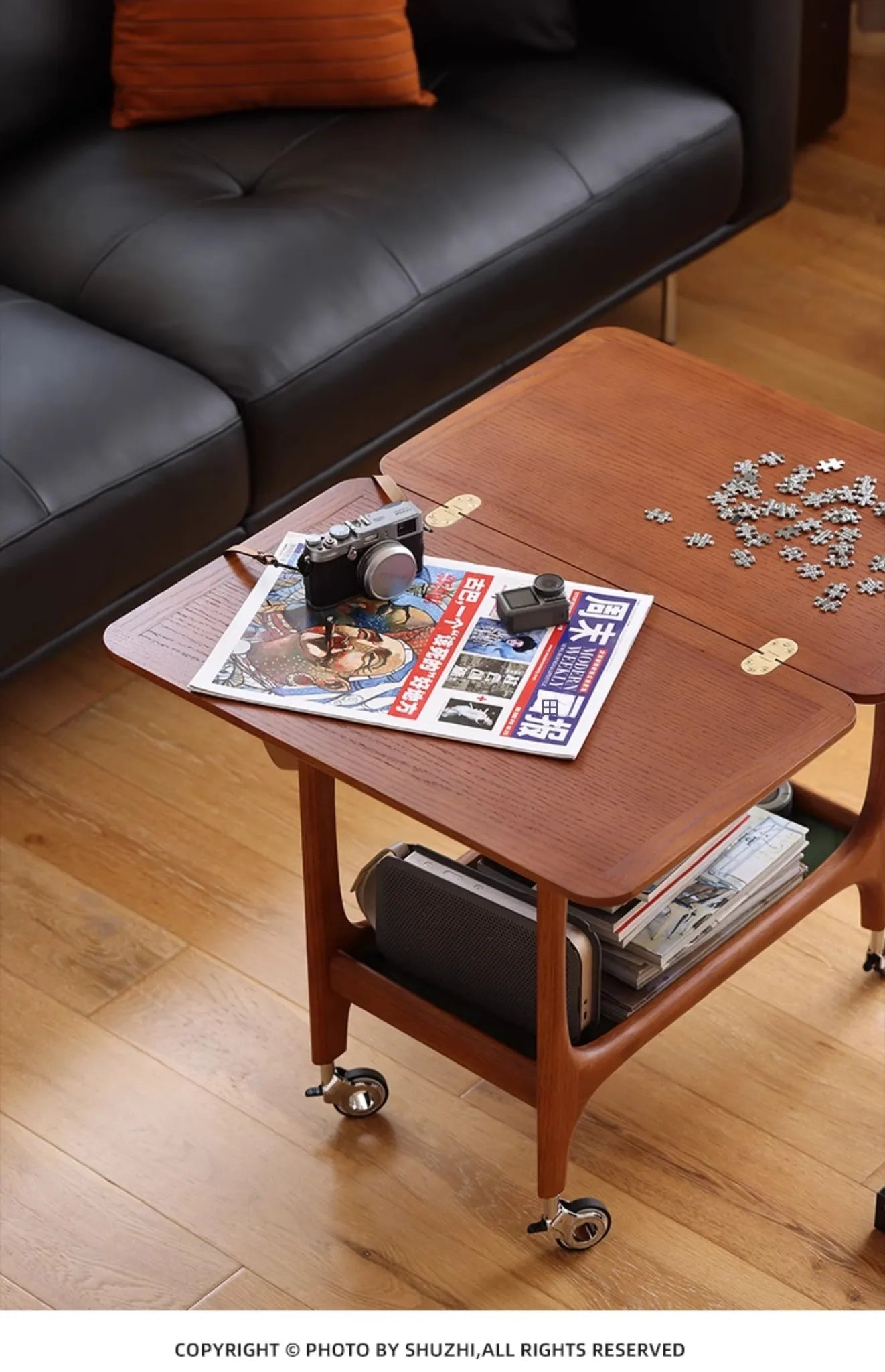 無垢オーク材多機能リビング折りたたみ天板キャスター付きサイドテーブル fsz-3303