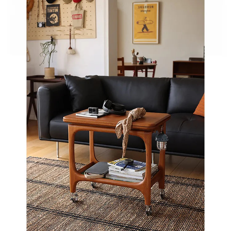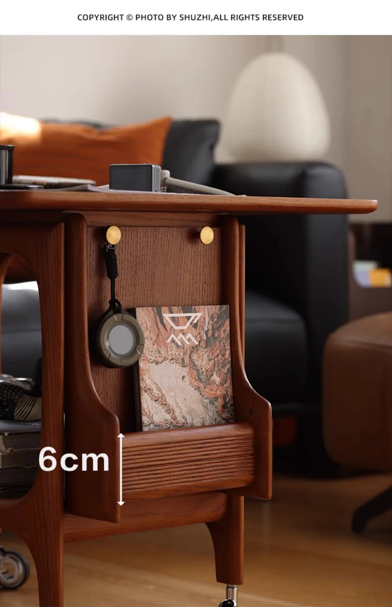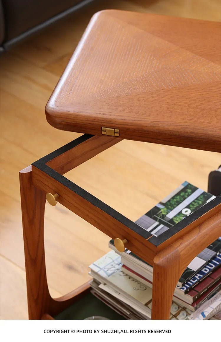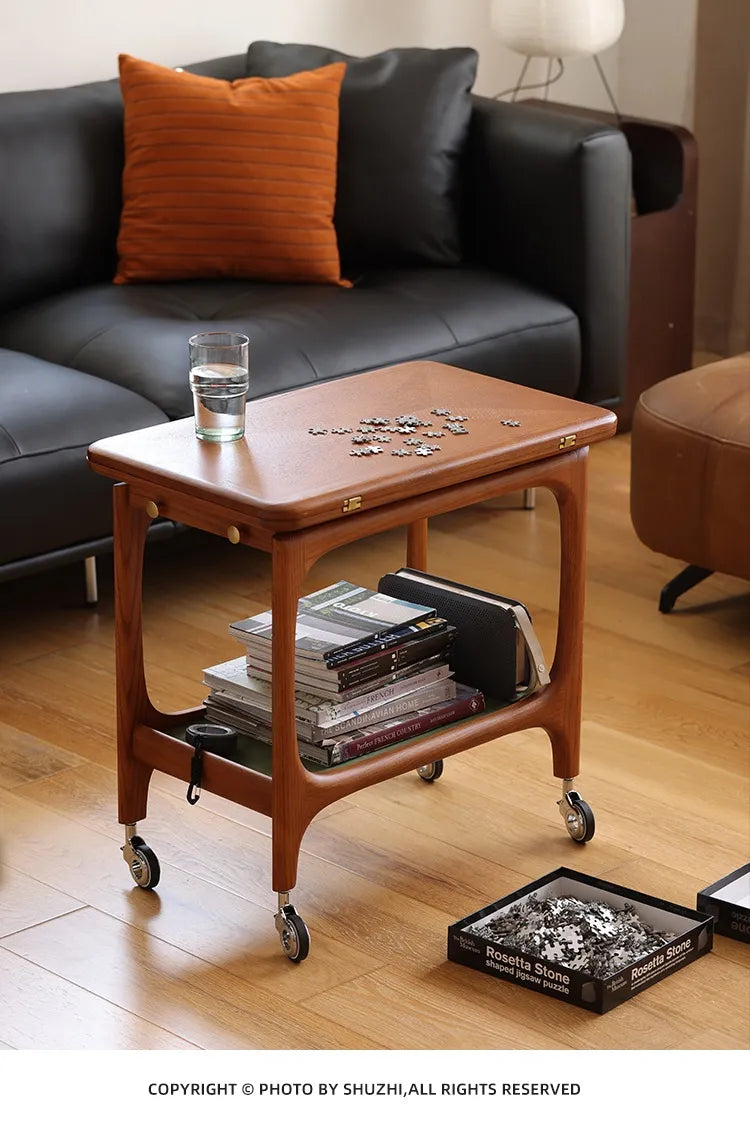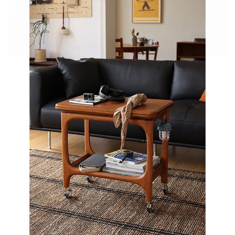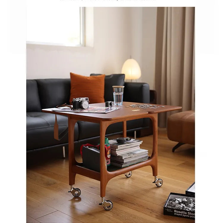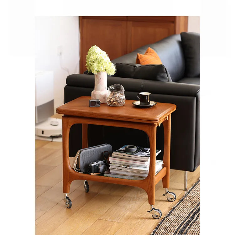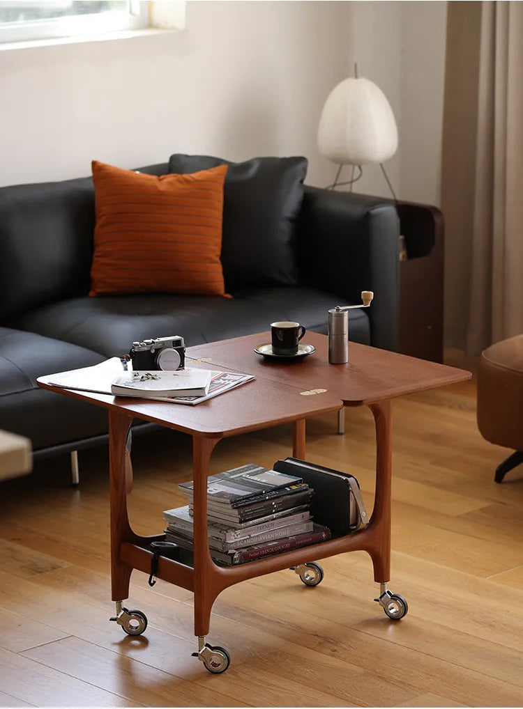 無垢オーク材多機能リビング折りたたみ天板キャスター付きサイドテーブル fsz-3303