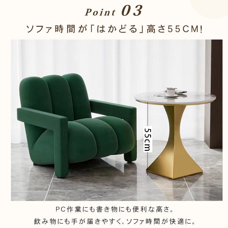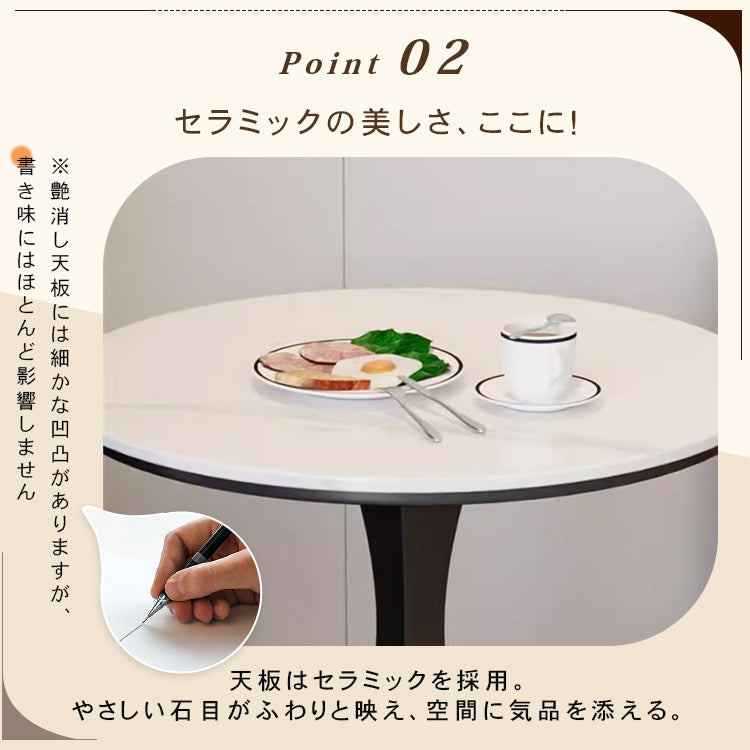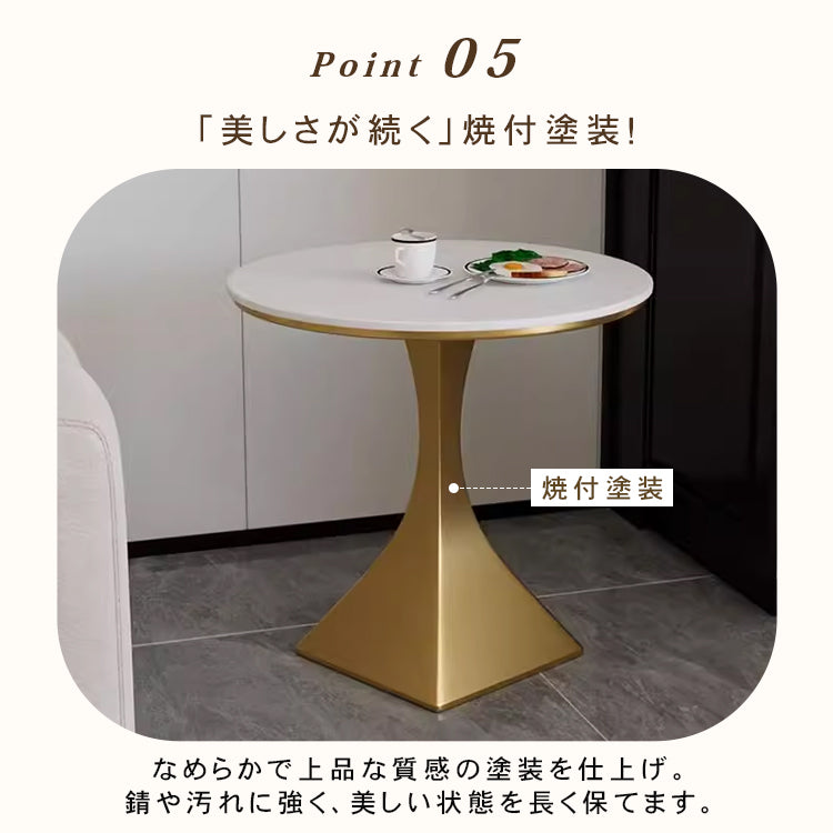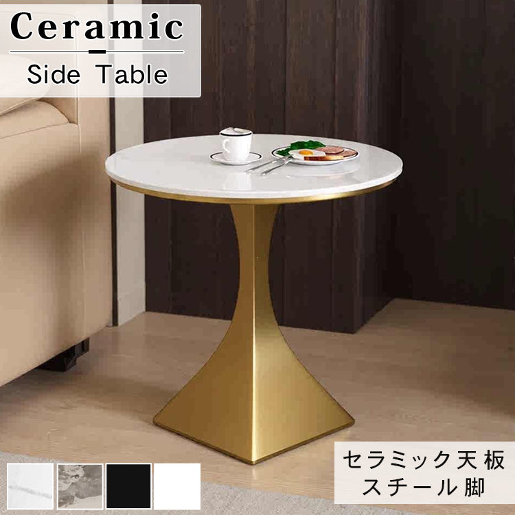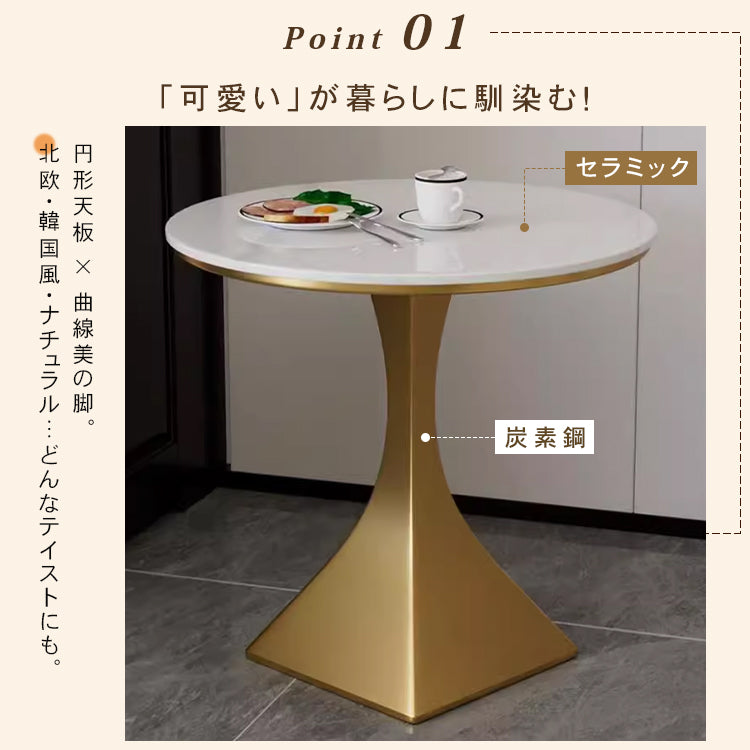 ライトラグジュアリー セラミック天板 2人掛け サイドテーブル 小型ラウンドテーブル モダン&ミニマルデザイン ソファ横 バルコニー用にも htt-3850