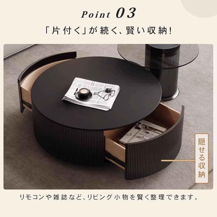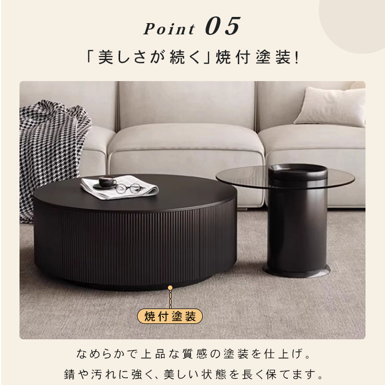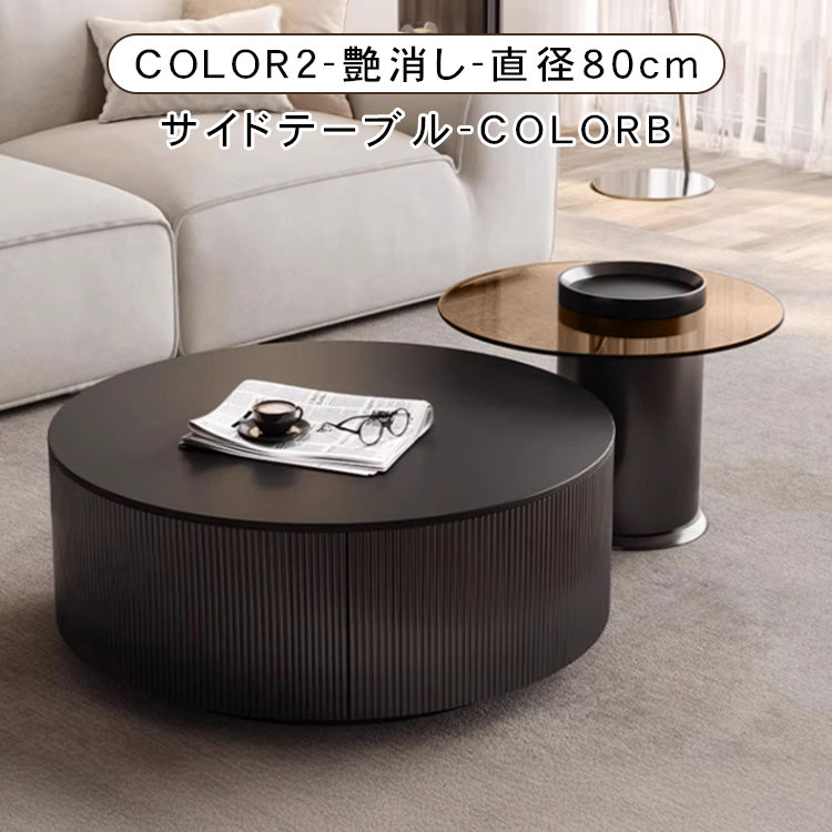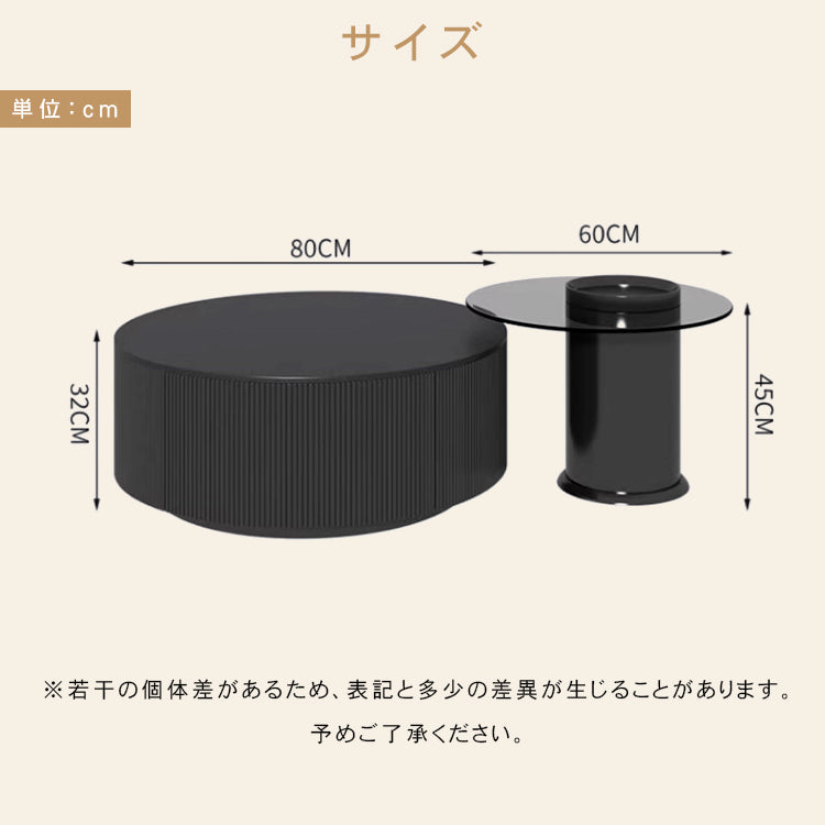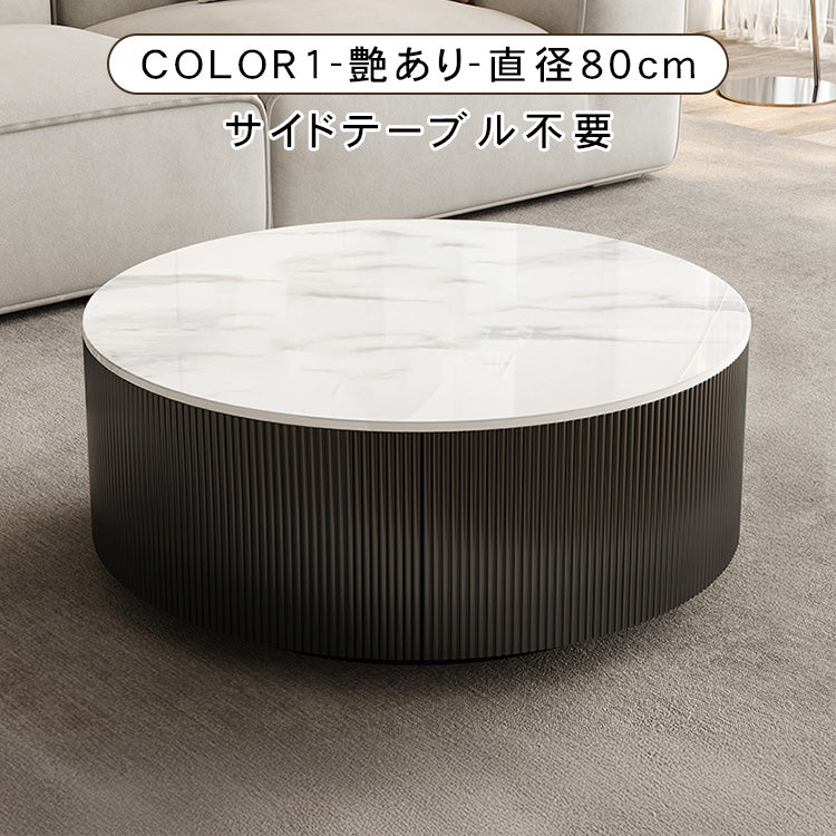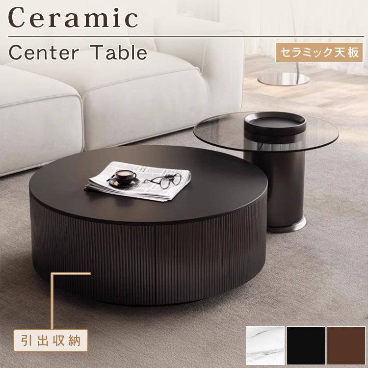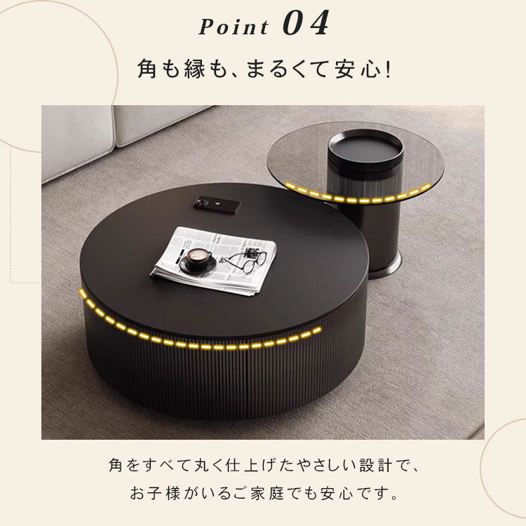 デザイナーズ リビングローテーブル セラミック風丸型×ガラス天板サイドテーブル モダンインテリア ブラック htyjj-6612