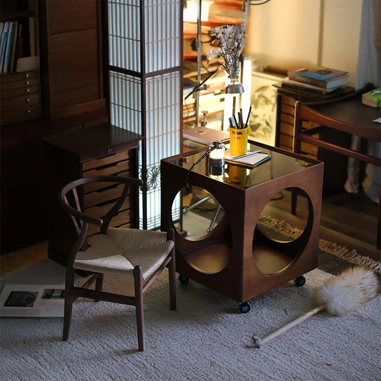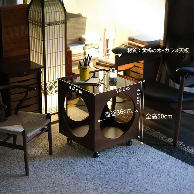 無垢材スクエアサイドテーブル北欧リビング用モダンヴィンテージキャスター付き htysd-3185