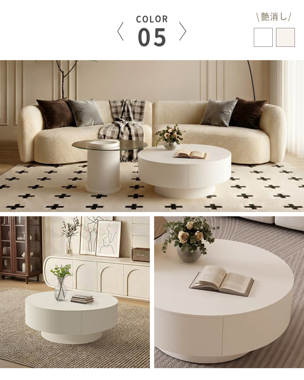 - COLOR5-ホワイト / 直径70cm+50cm-木製キャビネット