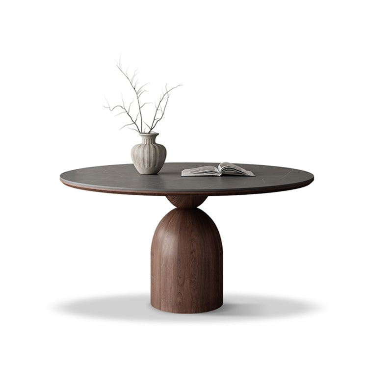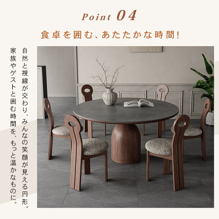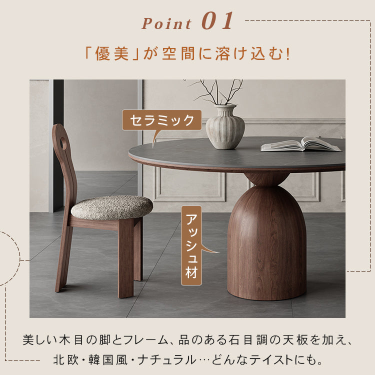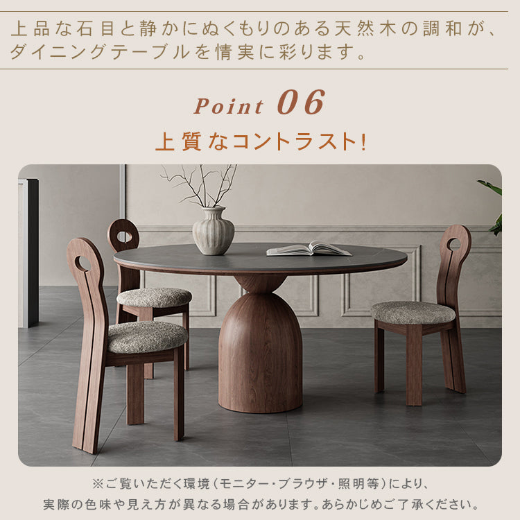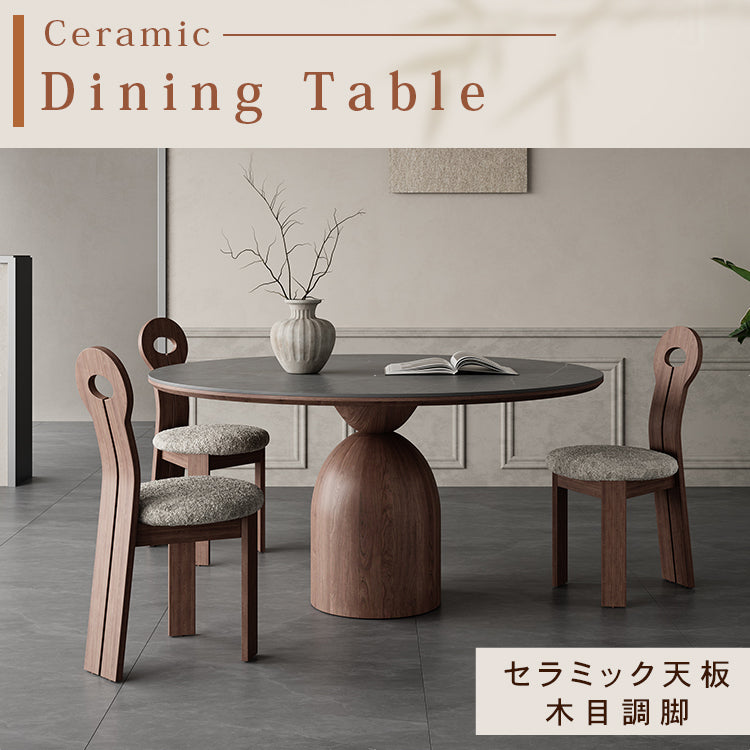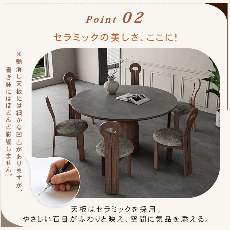 フレンチヴィンテージ実木ダイニングテーブル ウォールナット色 ラウンド型 セラミック天板円形テーブルhagst-1823