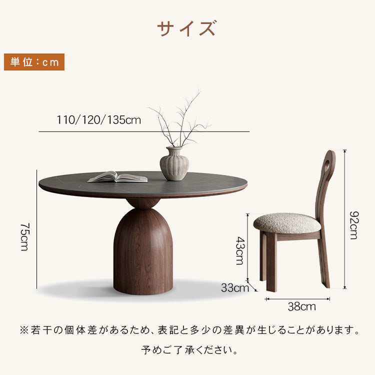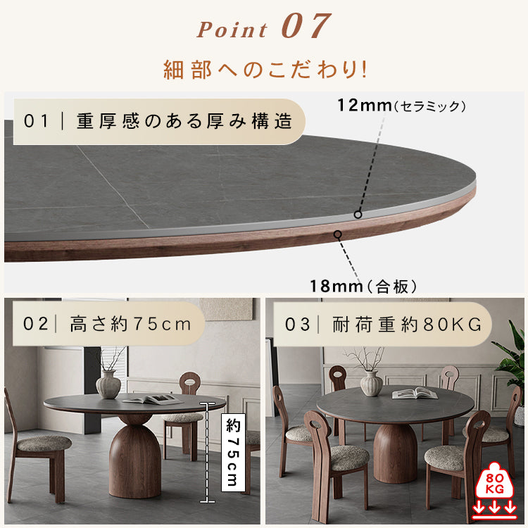 フレンチヴィンテージ実木ダイニングテーブル ウォールナット色 ラウンド型 セラミック天板円形テーブル hagst-1823
