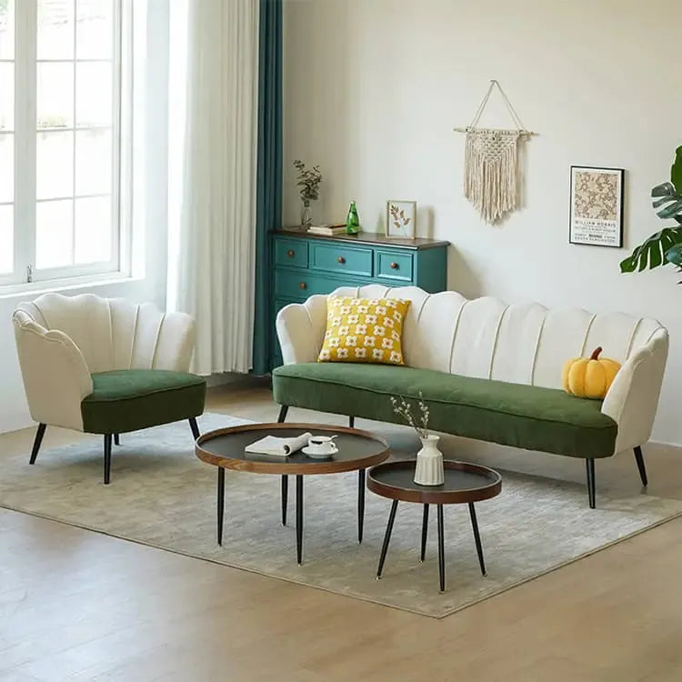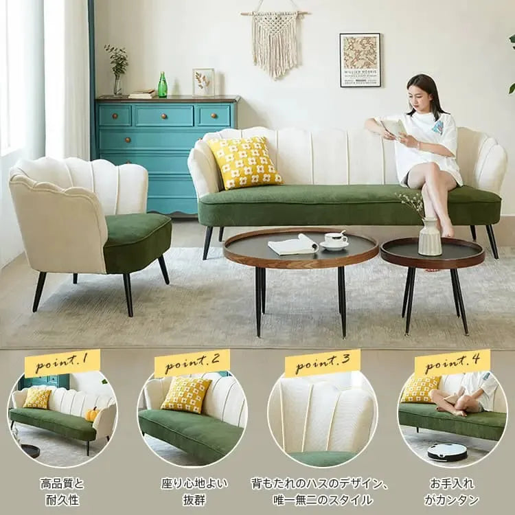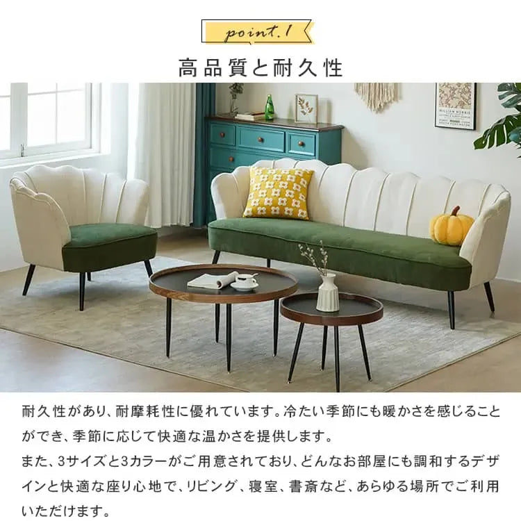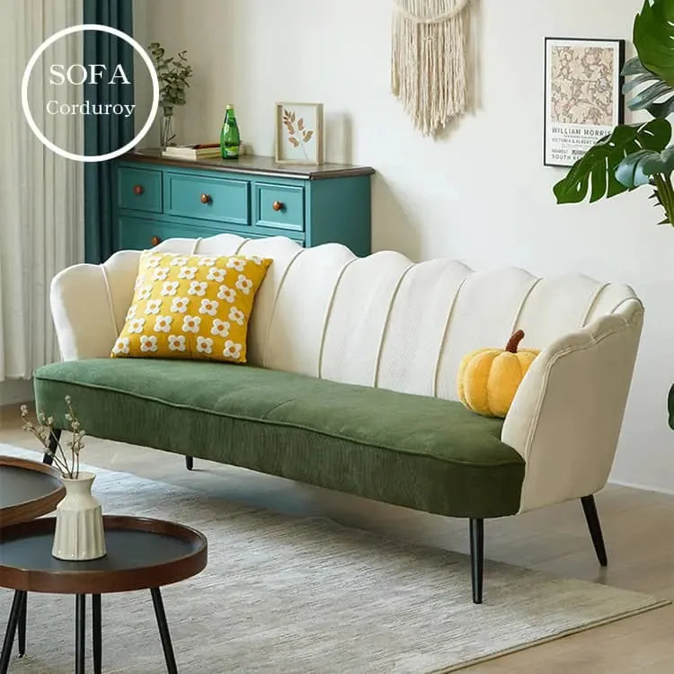 ソファー ベージュ+ダークグリーン ベージュ ダークグリーン コーデュロイ スチール シリコンフィル 天然木 dlo-030