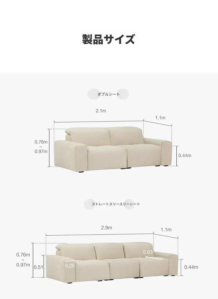 • ホワイト / 幅290cm ライトカウチ