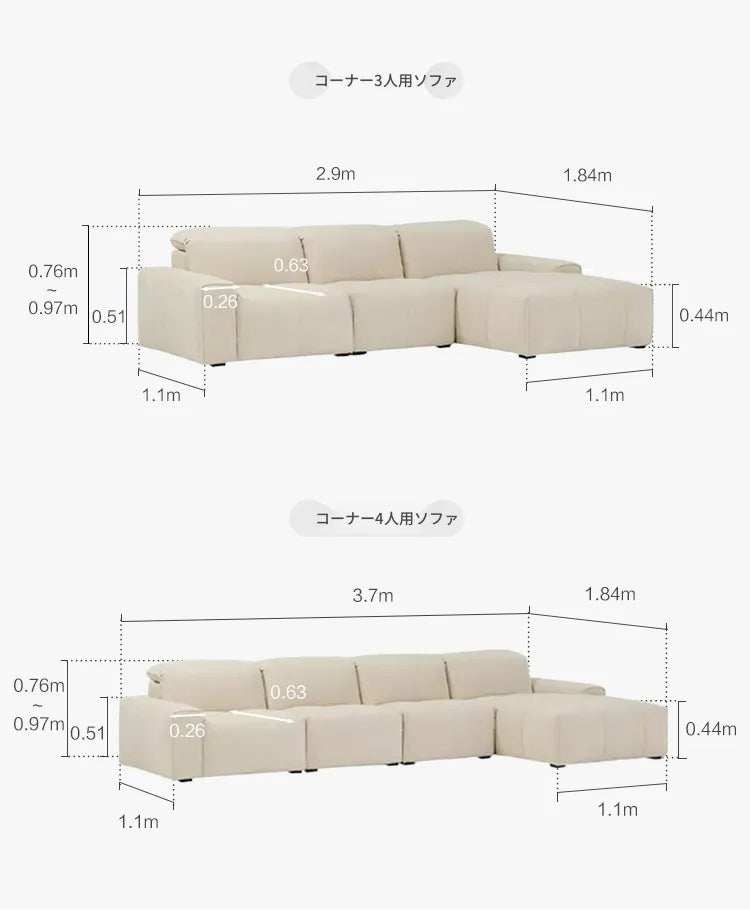 • ホワイト / 幅370cm レフトカウチ