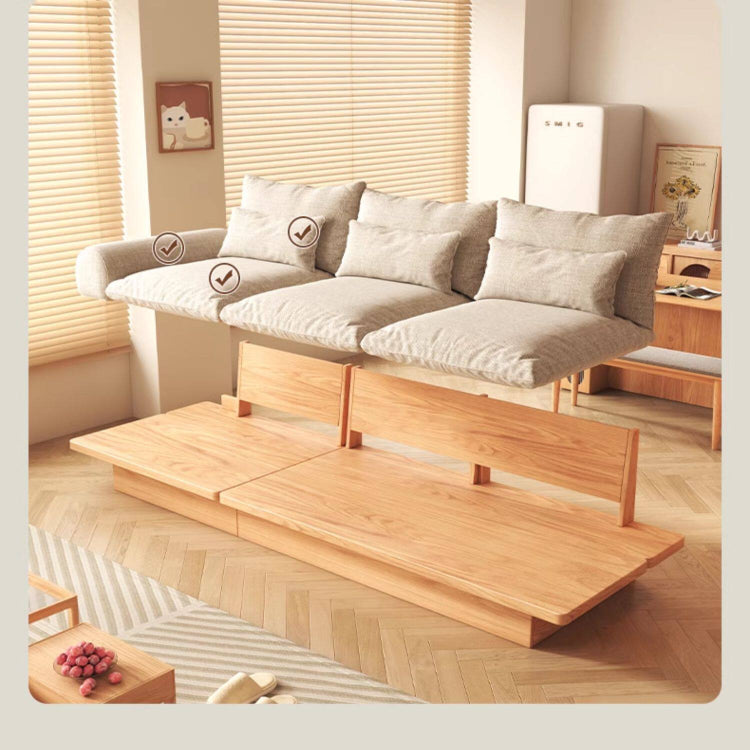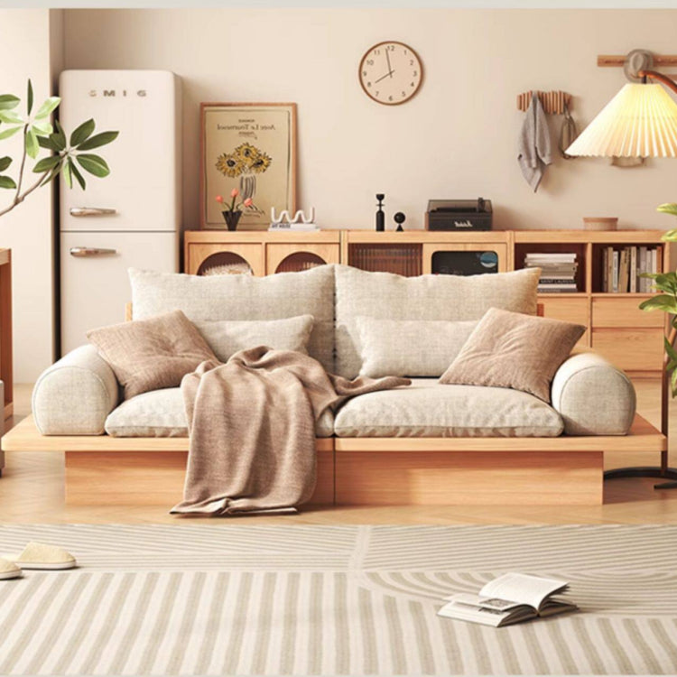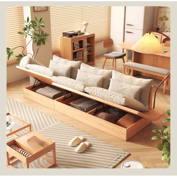 実木フレーム 布張り ローソファ 収納付き 175cm 北欧風 ナチュラル リビングソファ 床置きタイプ hns-1171