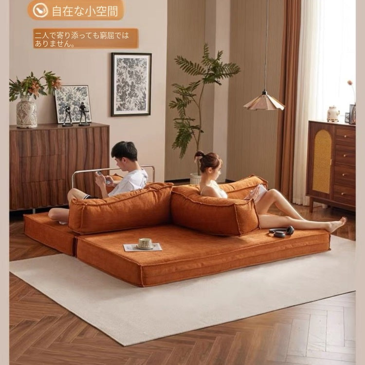 ヴィンテージ風 ファブリックソファーベッド|モジュール式 圧縮タイプ 直線型 2〜3人掛け カバー洗濯可 折りたたみ リビング用 qsjj-0203-22