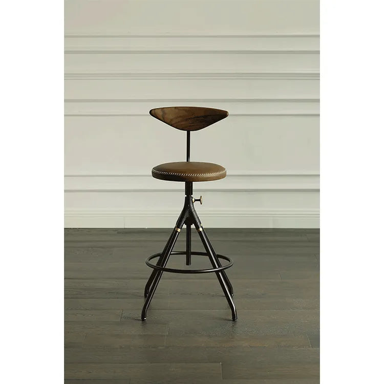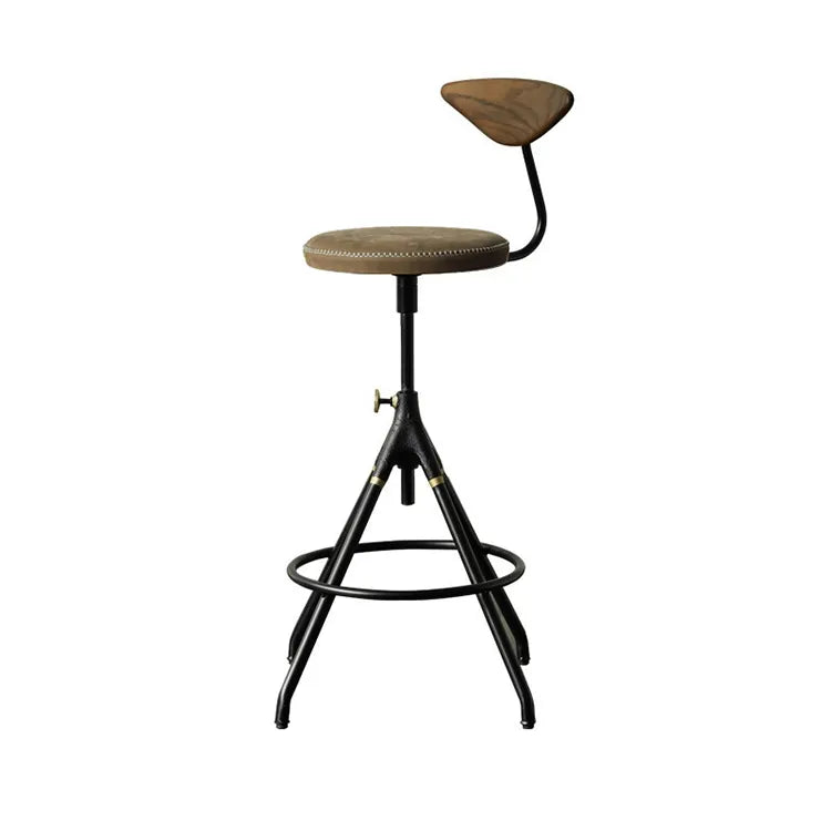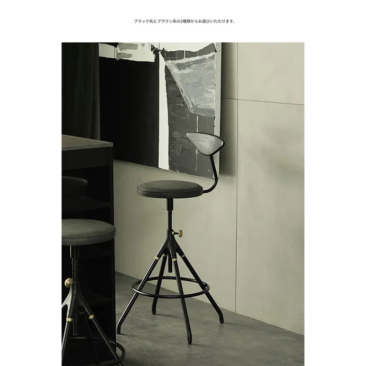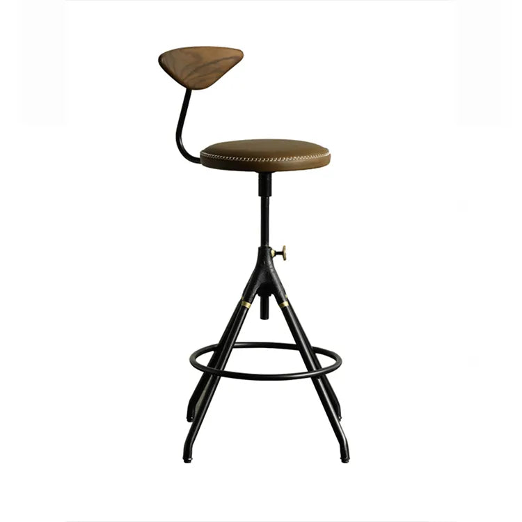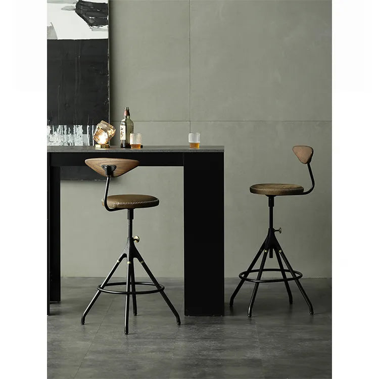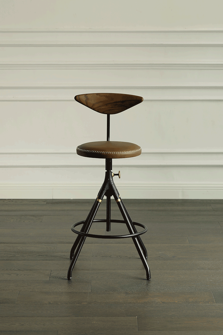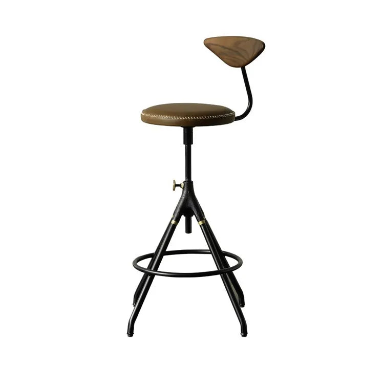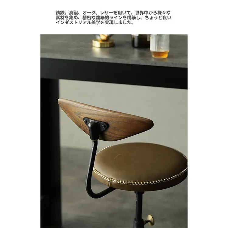 インダストリアル調オーク材背もたれ付き真鍮昇降バースツールアイアン脚PUレザー fsz-3312
