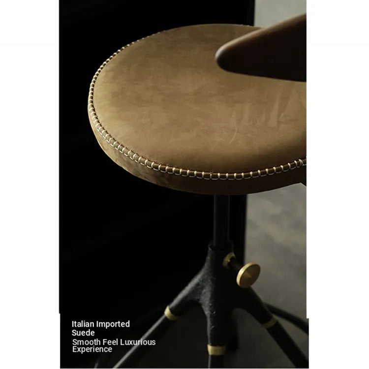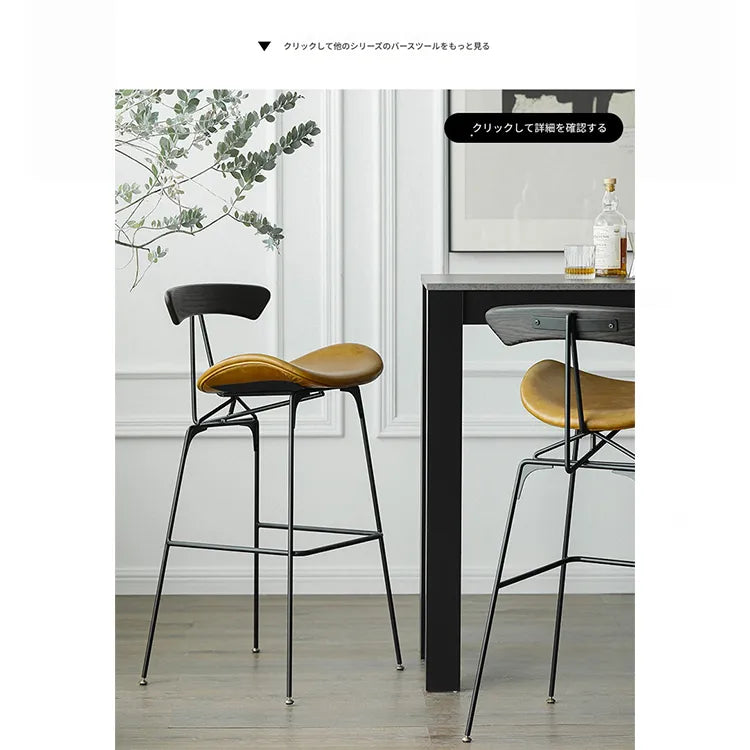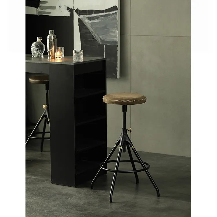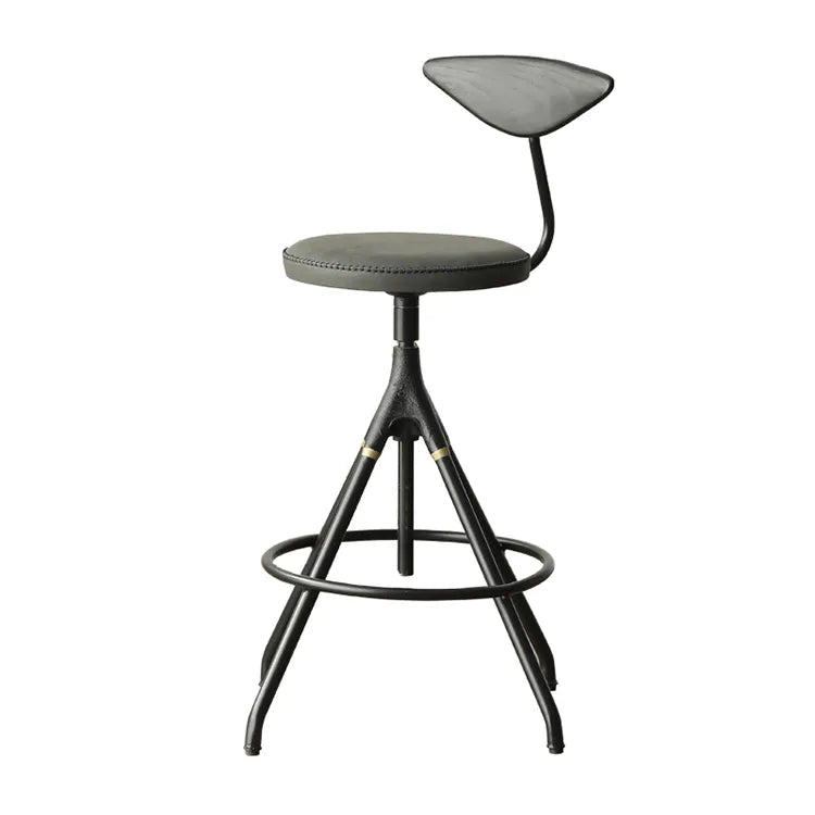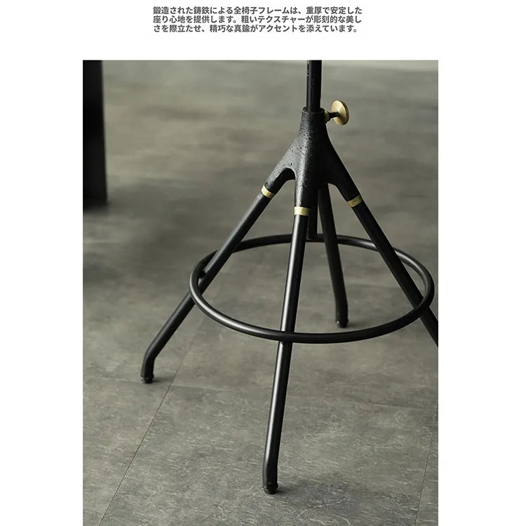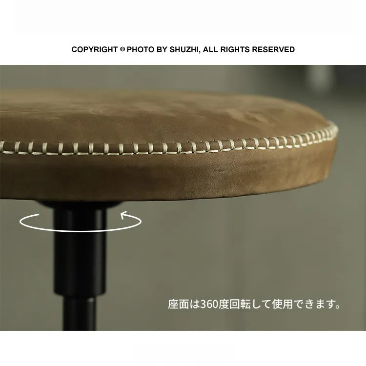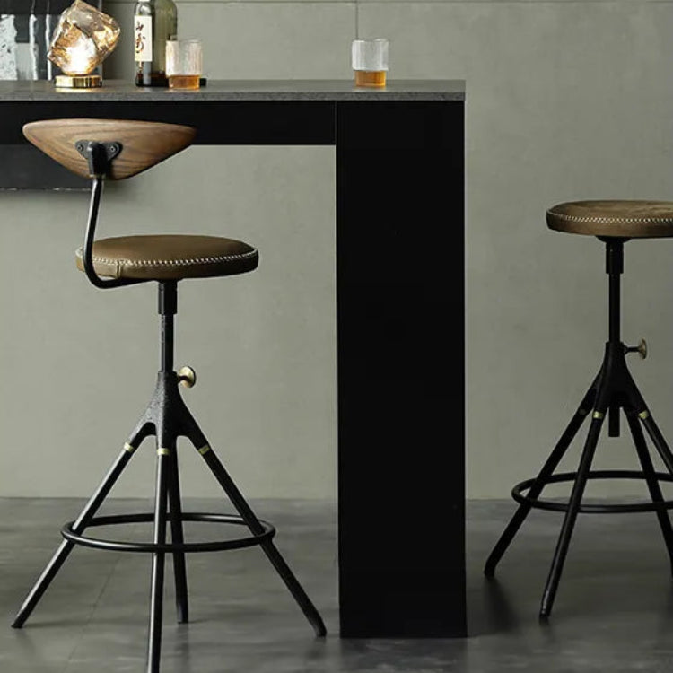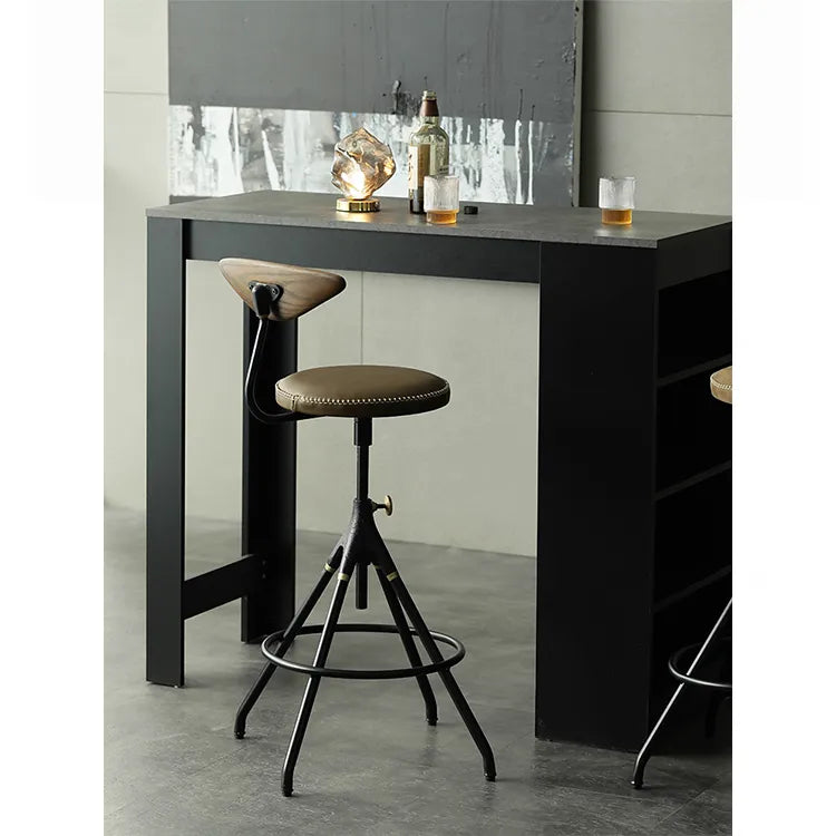 インダストリアル調オーク材背もたれ付き真鍮昇降バースツールアイアン脚PUレザー fsz-3312