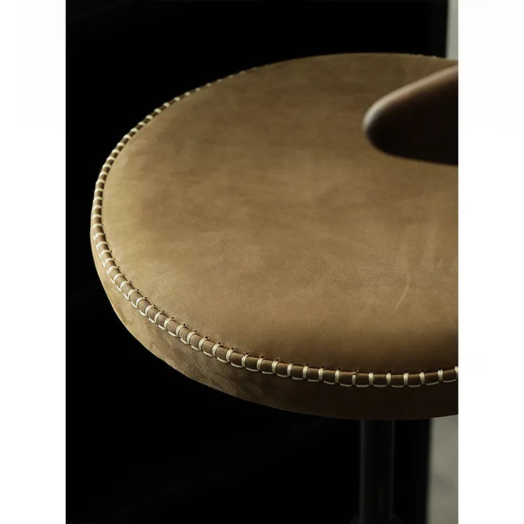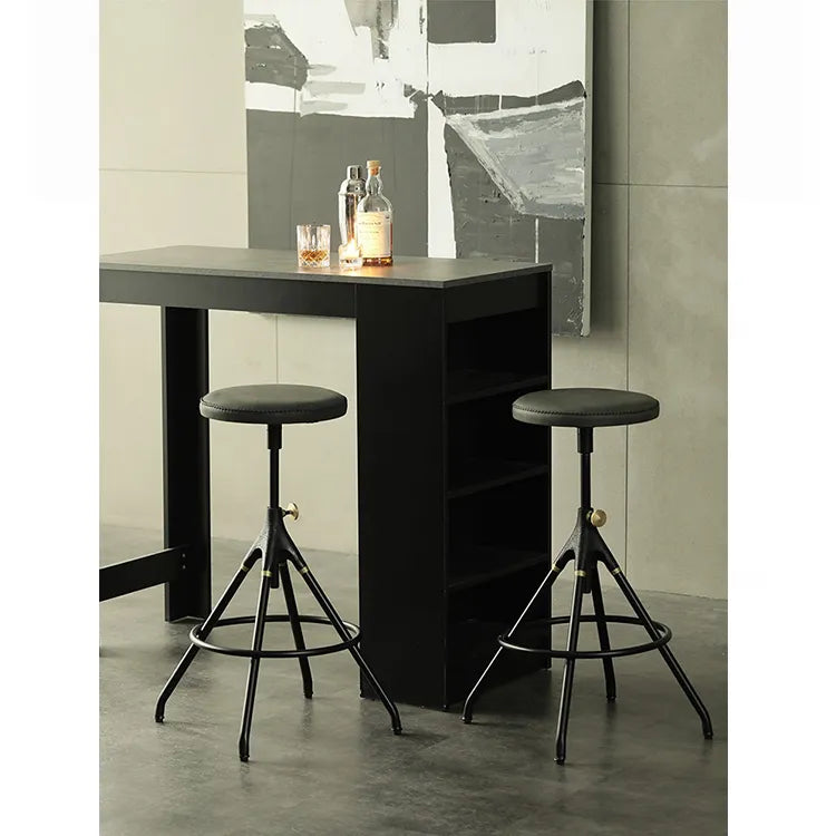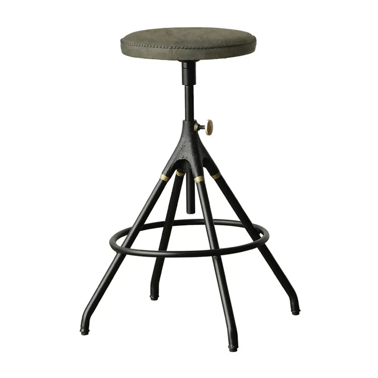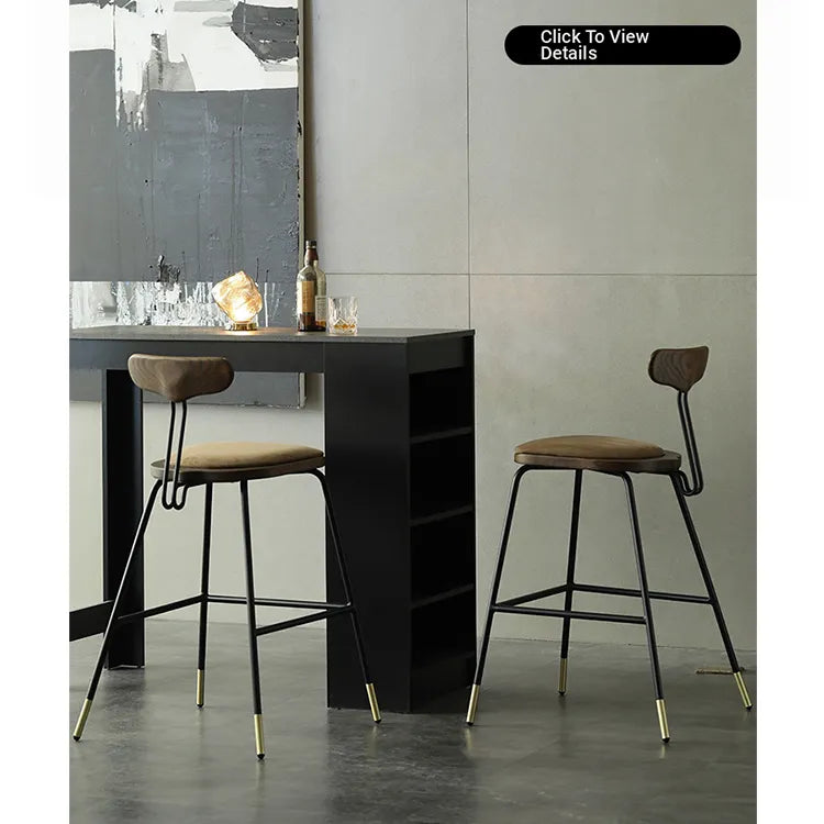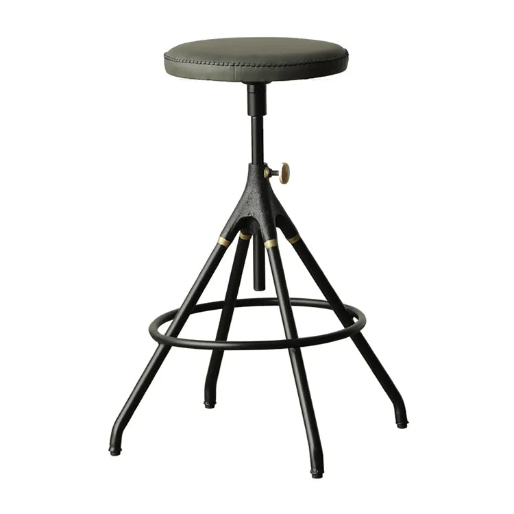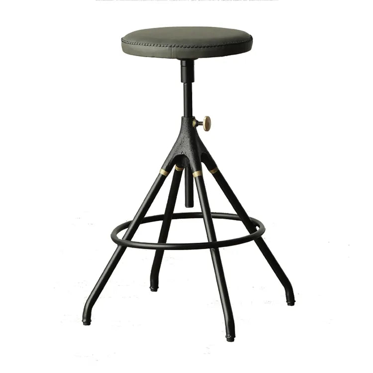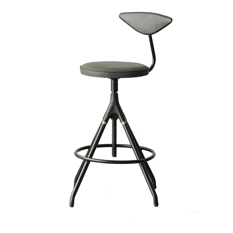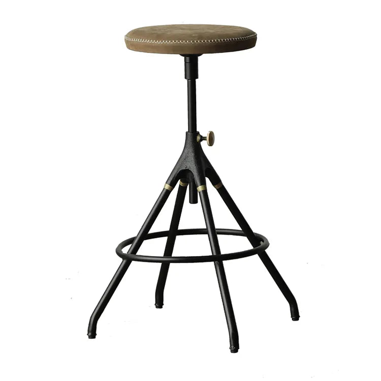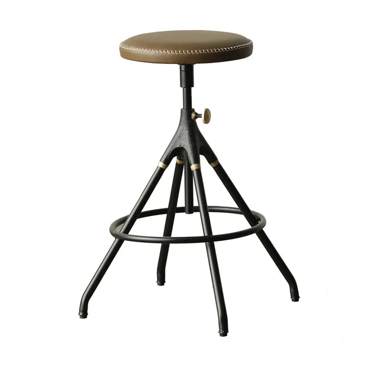 インダストリアル調オーク材背もたれ付き真鍮昇降バースツールアイアン脚PUレザー fsz-3312