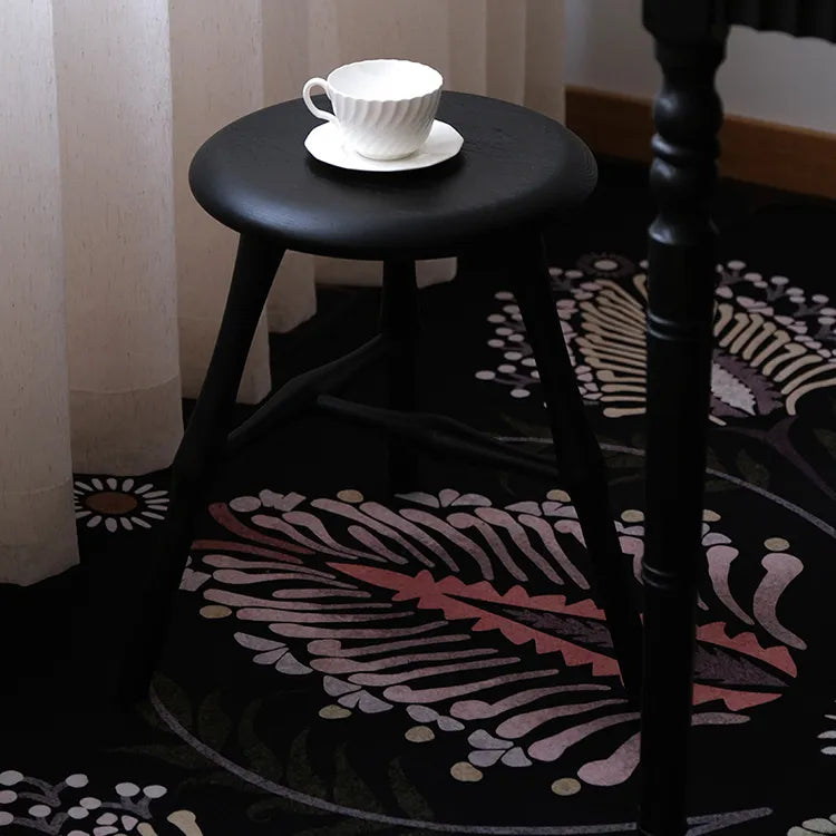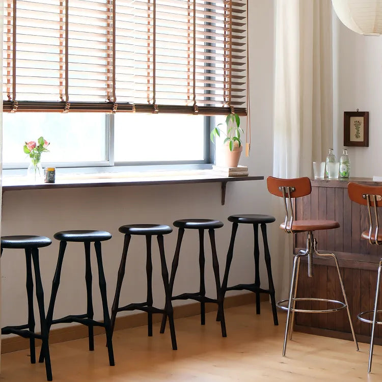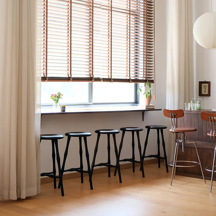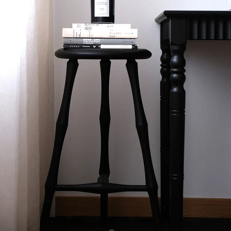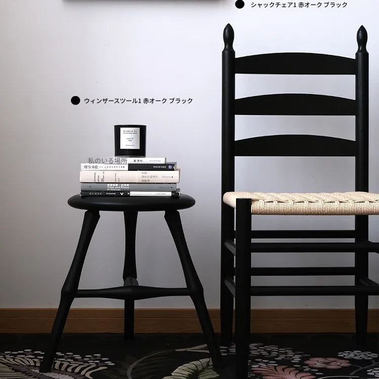 フレンチスタイル無垢材マットブラックダイニングスツール htysd-3180
